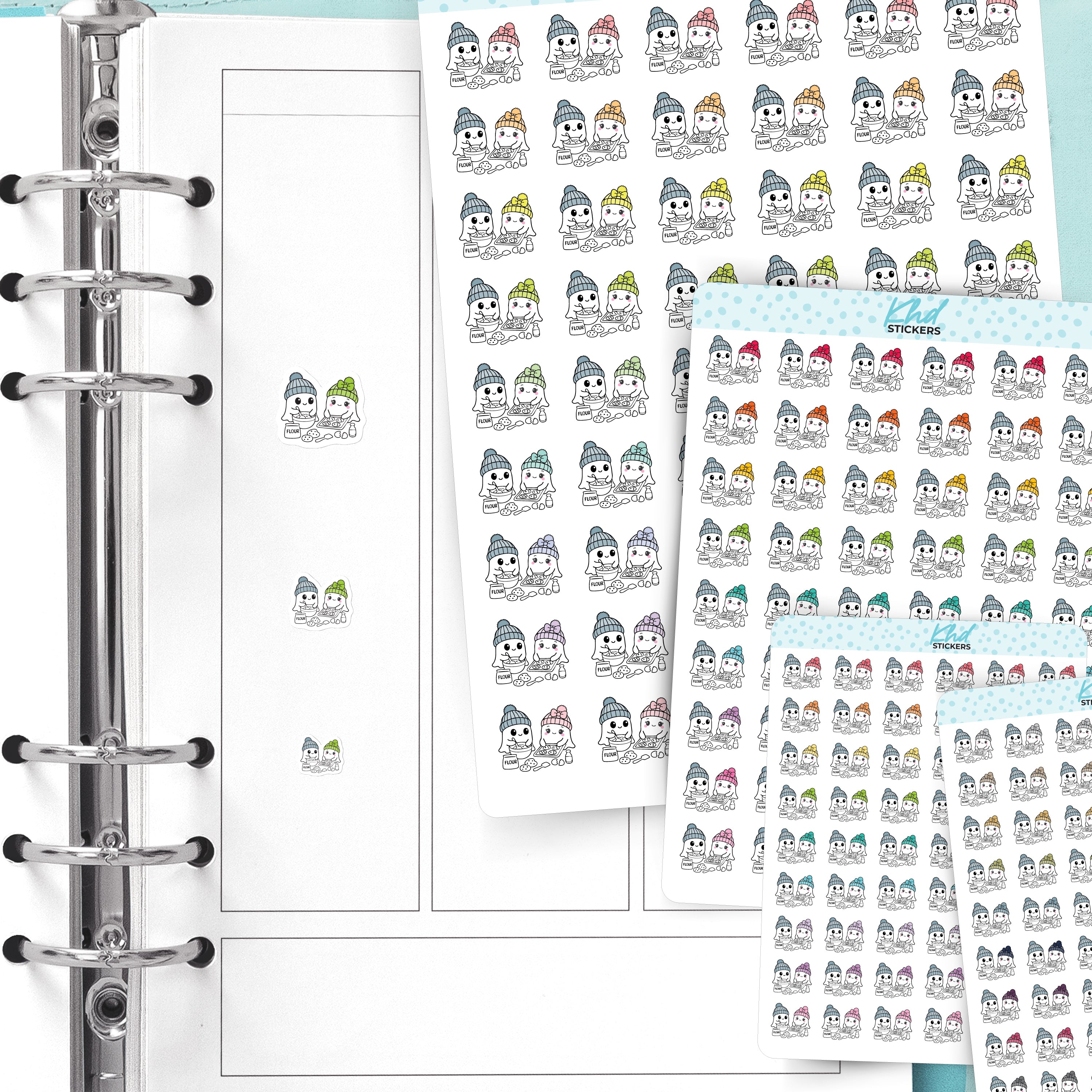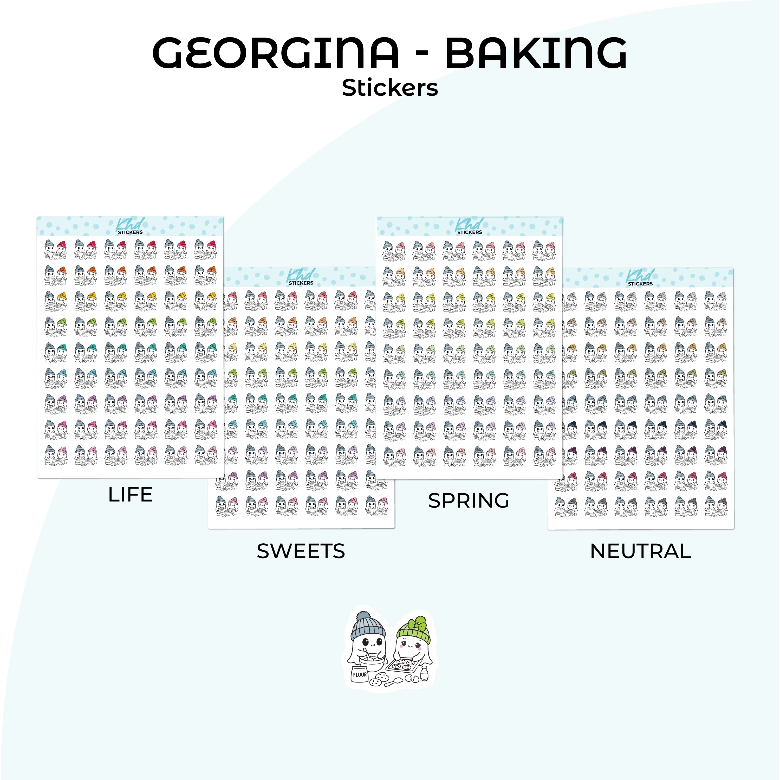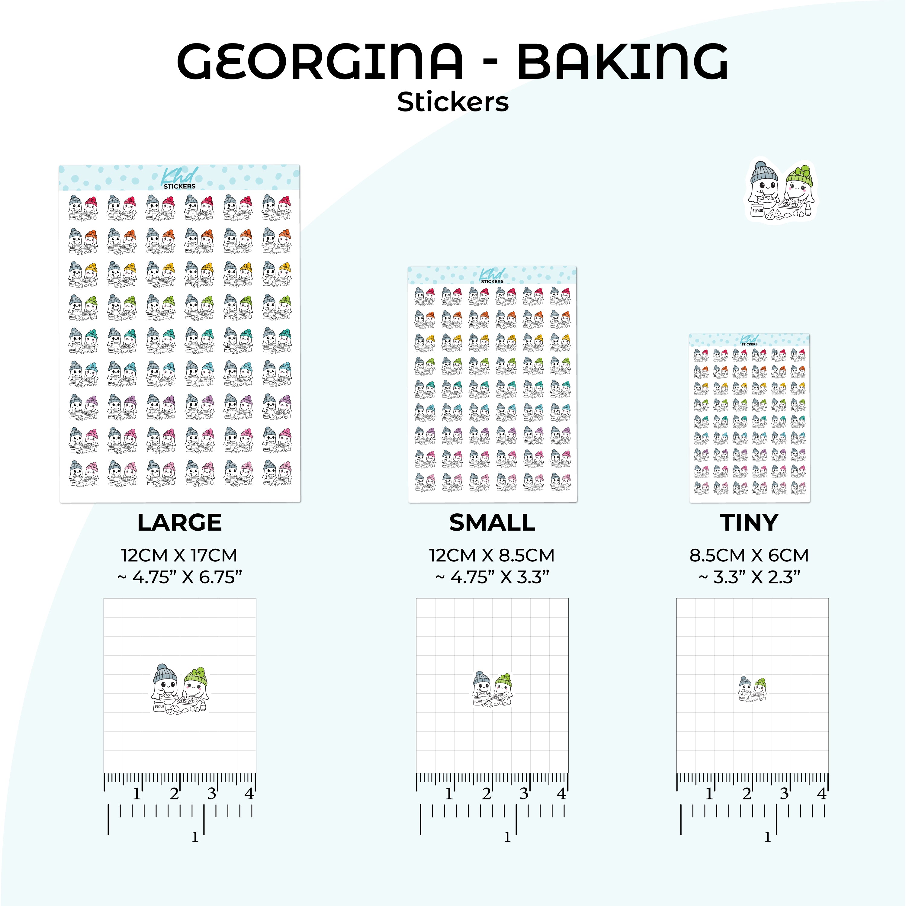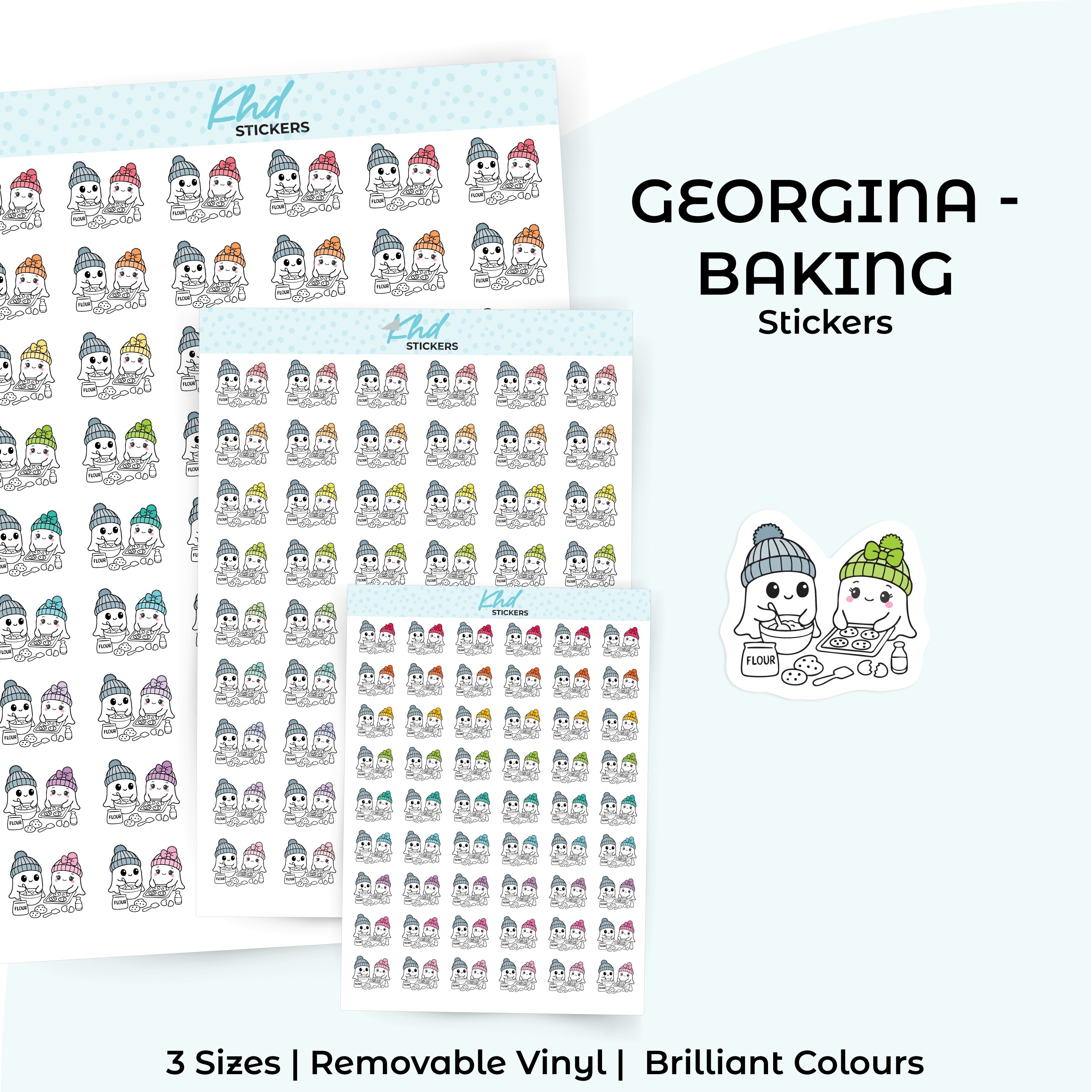Georgina baking day stickers for recipe testing, bake days and kitchen time in your planner or diary.  She's seen here with her partner George.