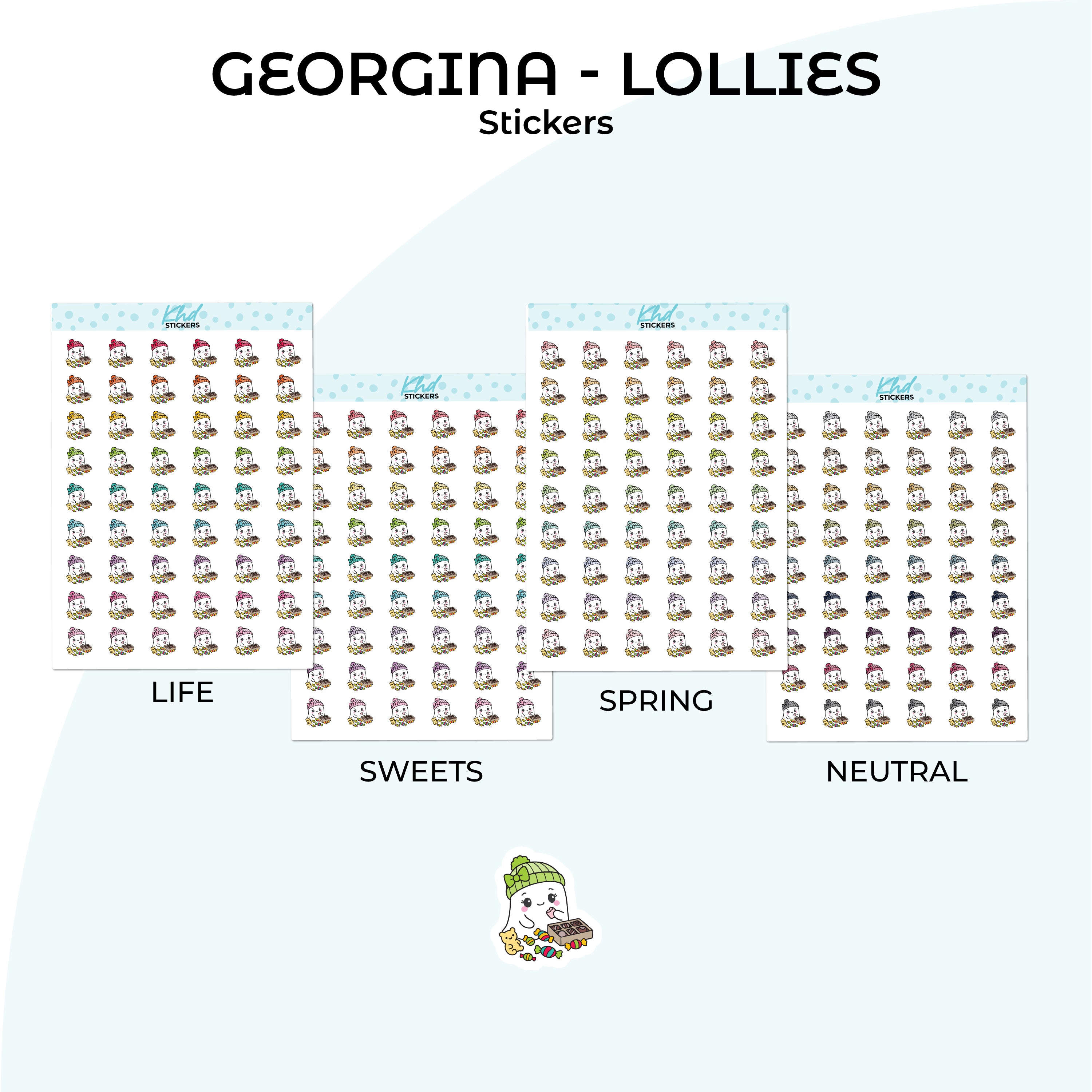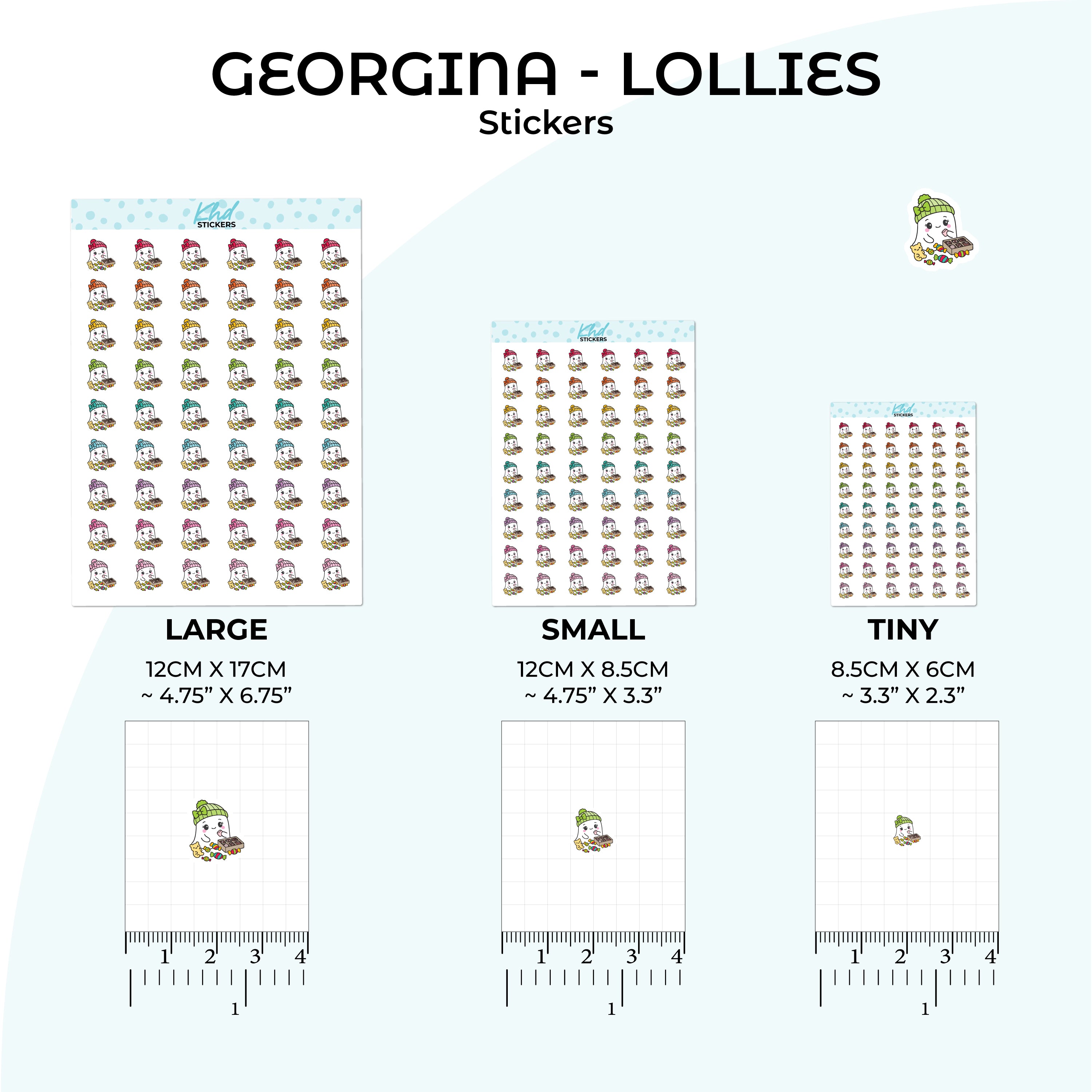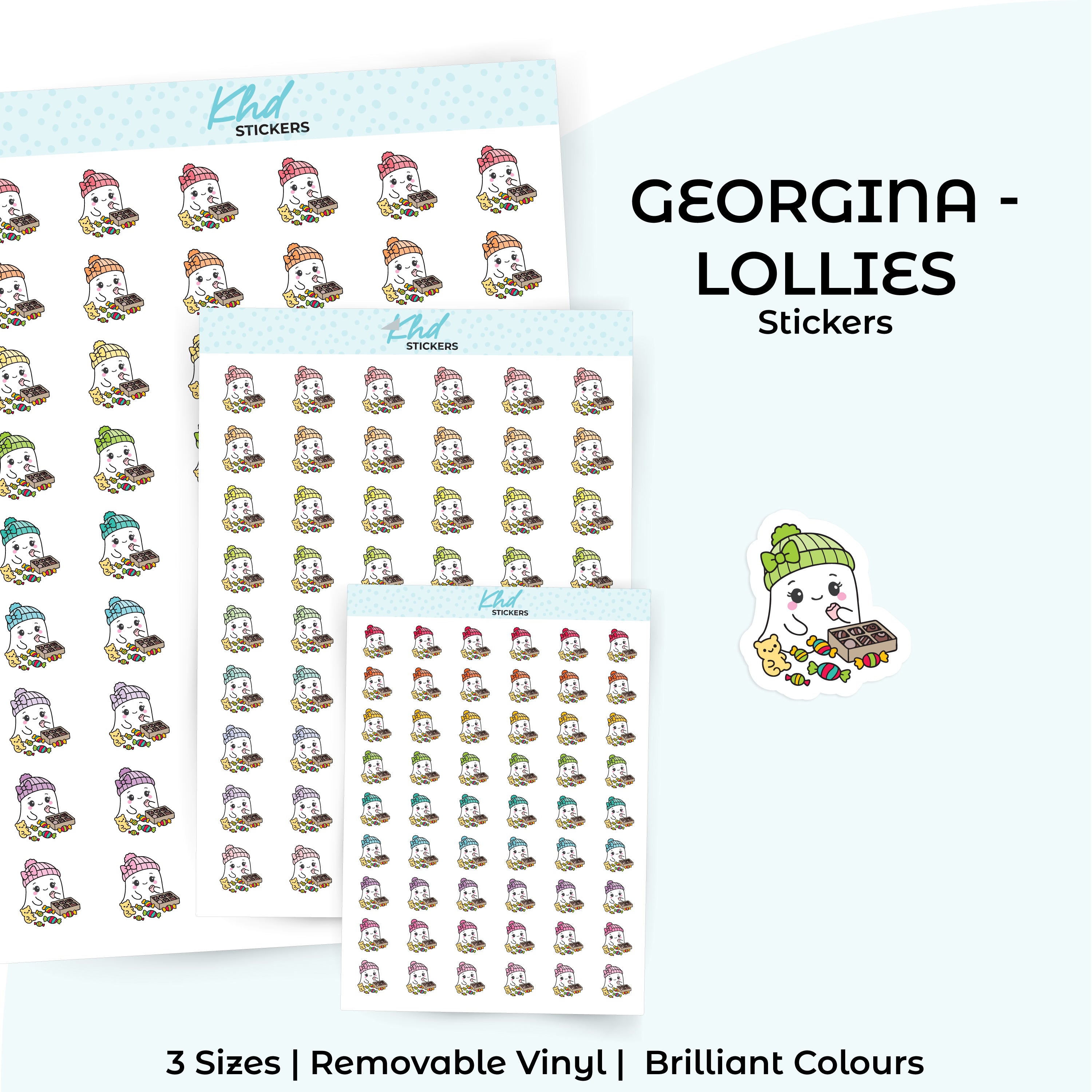 Georgina with lollies for treat days and sweets runs in your planner or diary.