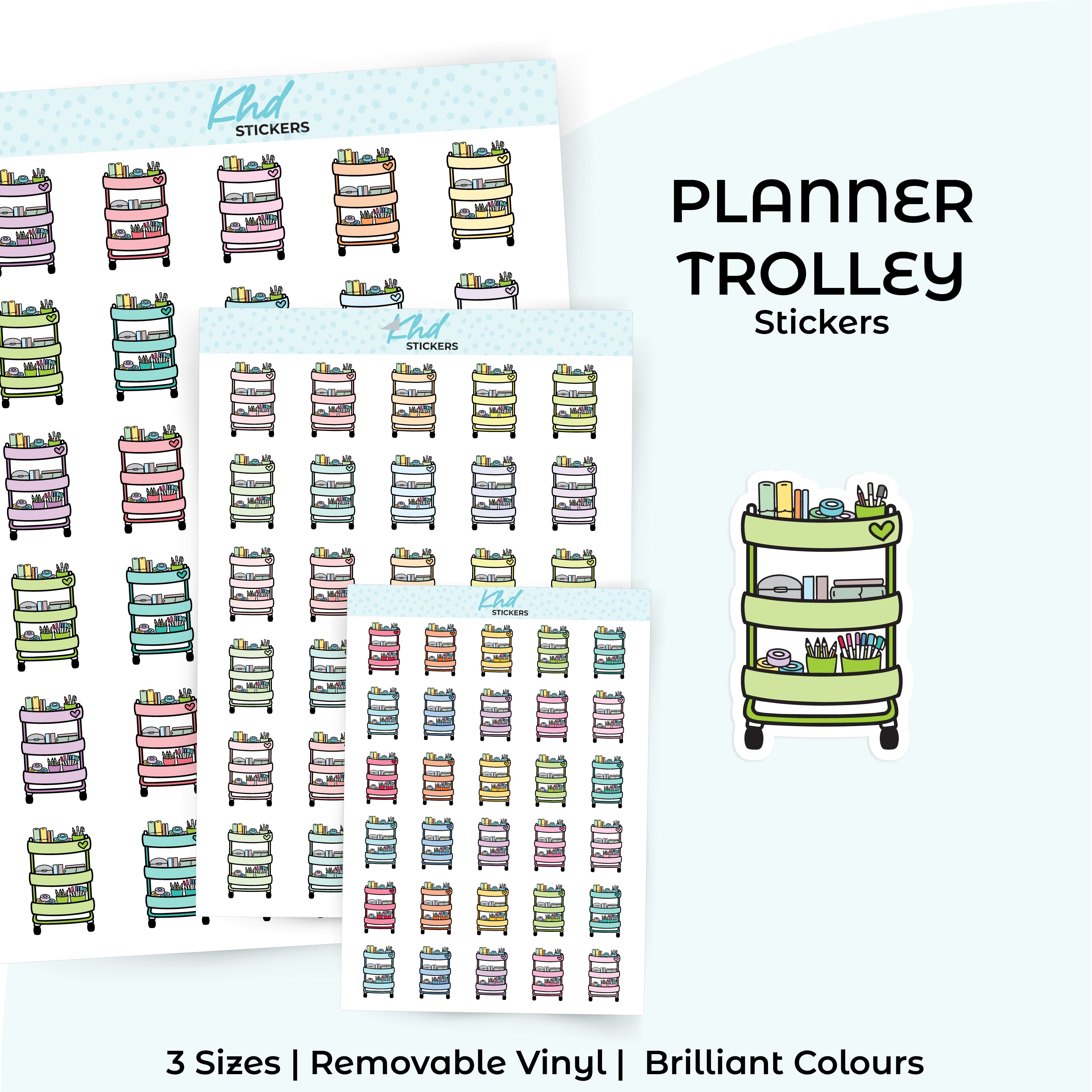 Planner Trolley Icons Planner Stickers. Select from one of 4 colourways, or select a sheet of your favourite colour. Available in three great sizes making it easy to match your planning style.