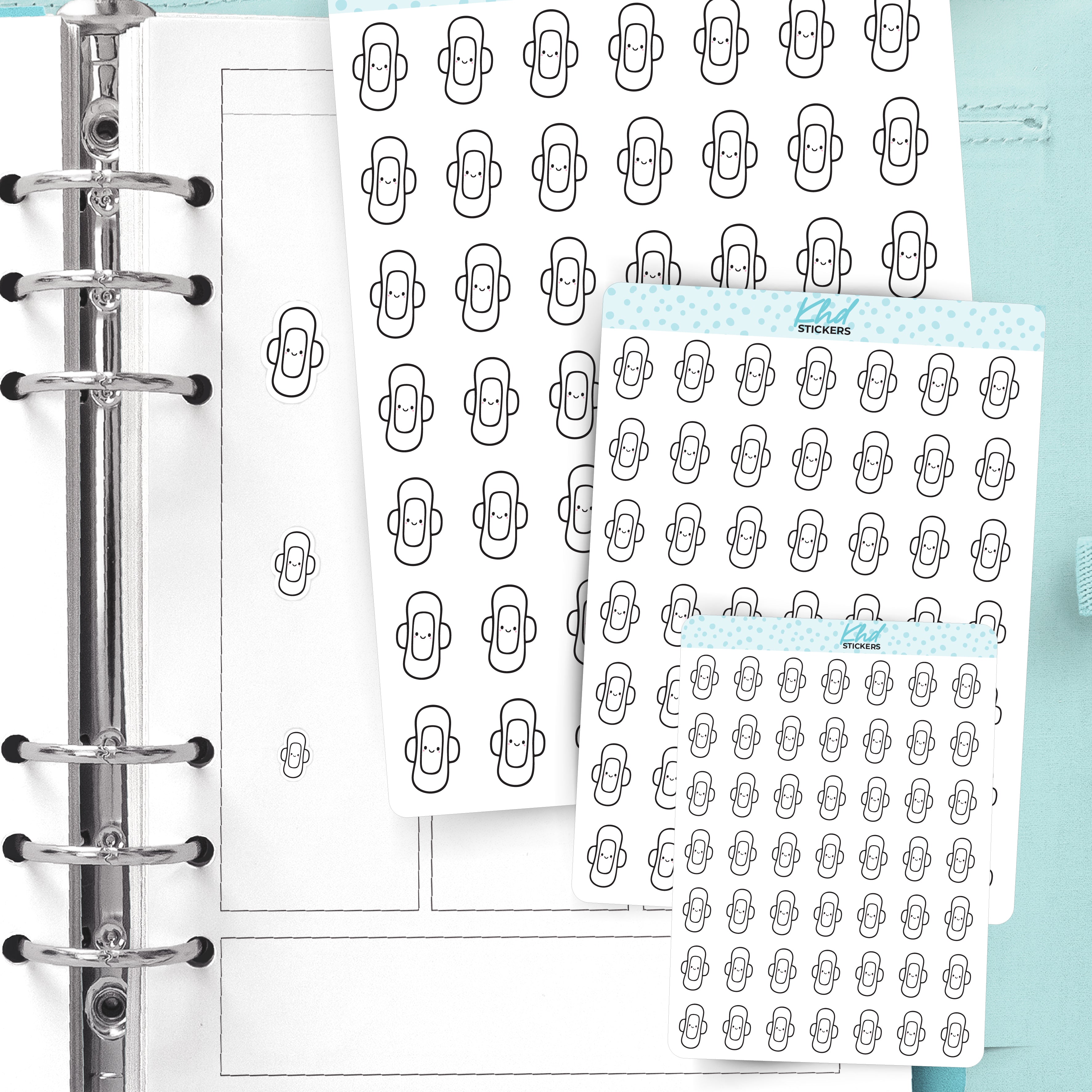 Make that time of the month a little cuter. These Kawaii Period Pad stickers are here to gently track your cycle with pastel colours and comforting little faces. Use them in your planner, diary, or journal to stay organised and feel supported.