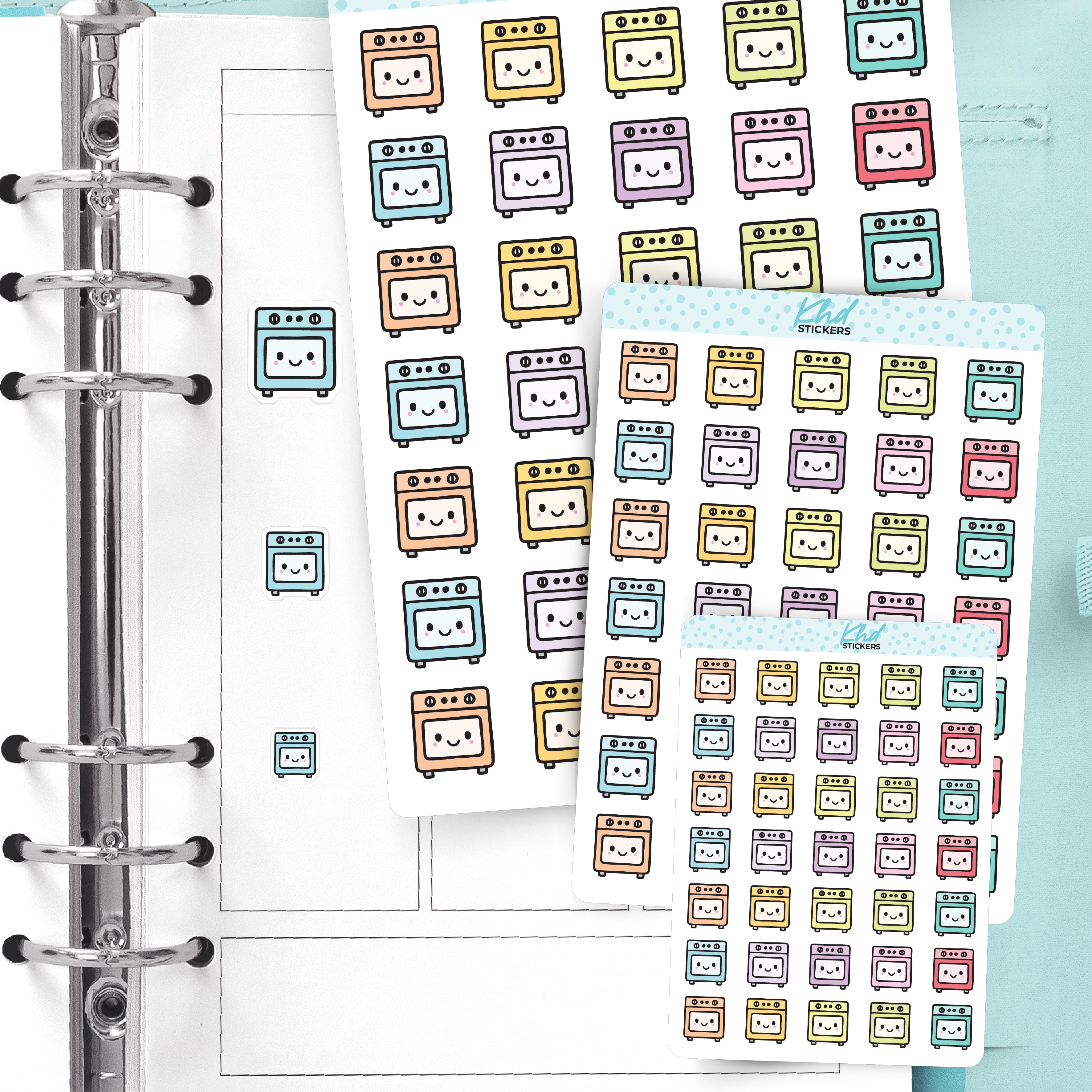 Bake up some planner magic with our Kawaii Oven stickers! Each mini oven icon sports a smiling face and Pink Lemonade cheeks, perfect for marking cooking and baking tasks in your planner, diary, or journal.
