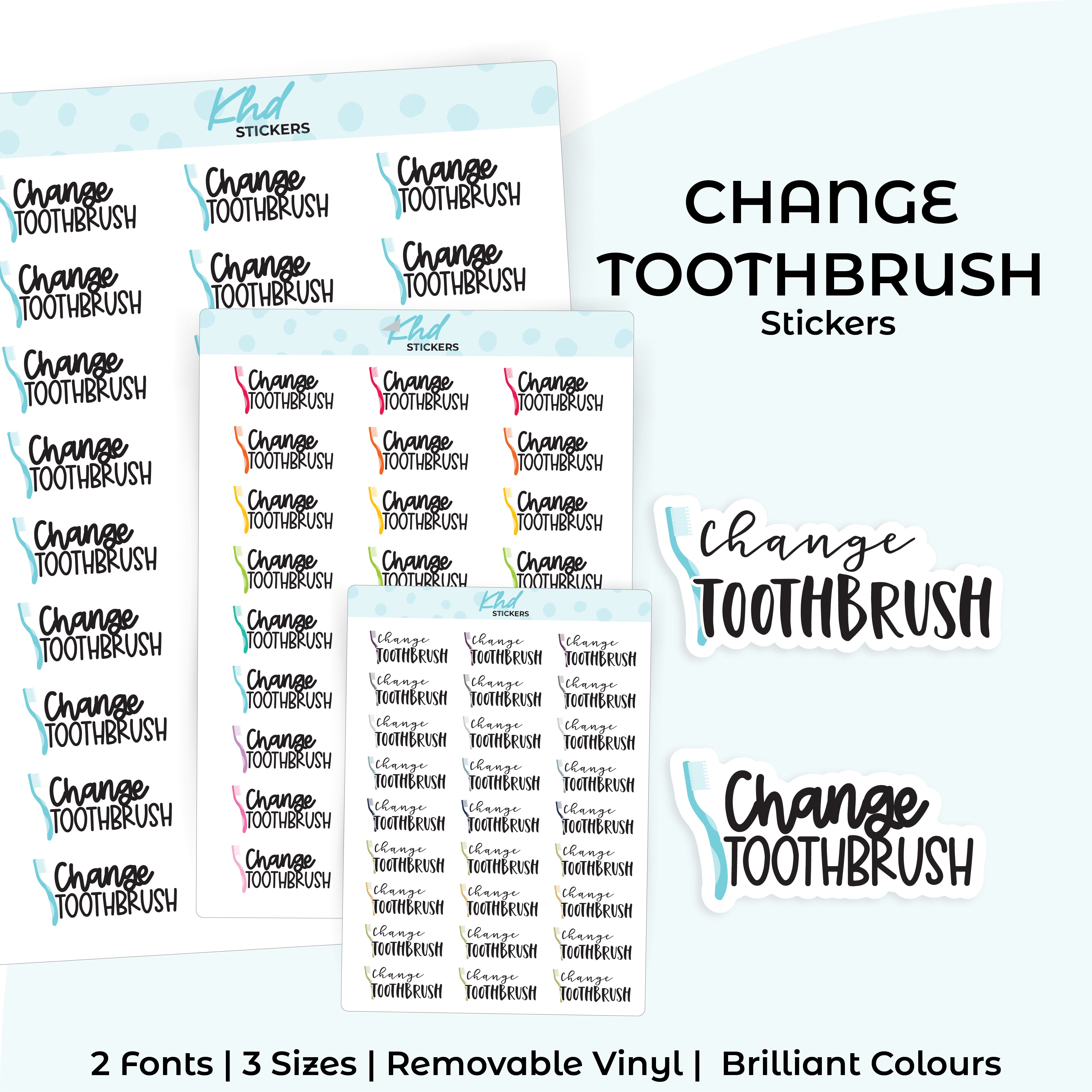 Change Toothbrush Planner Stickers. Select from one of 4 colourways, or select a sheet of your favourite colour. Available in three great sizes making it easy to match your planning style.