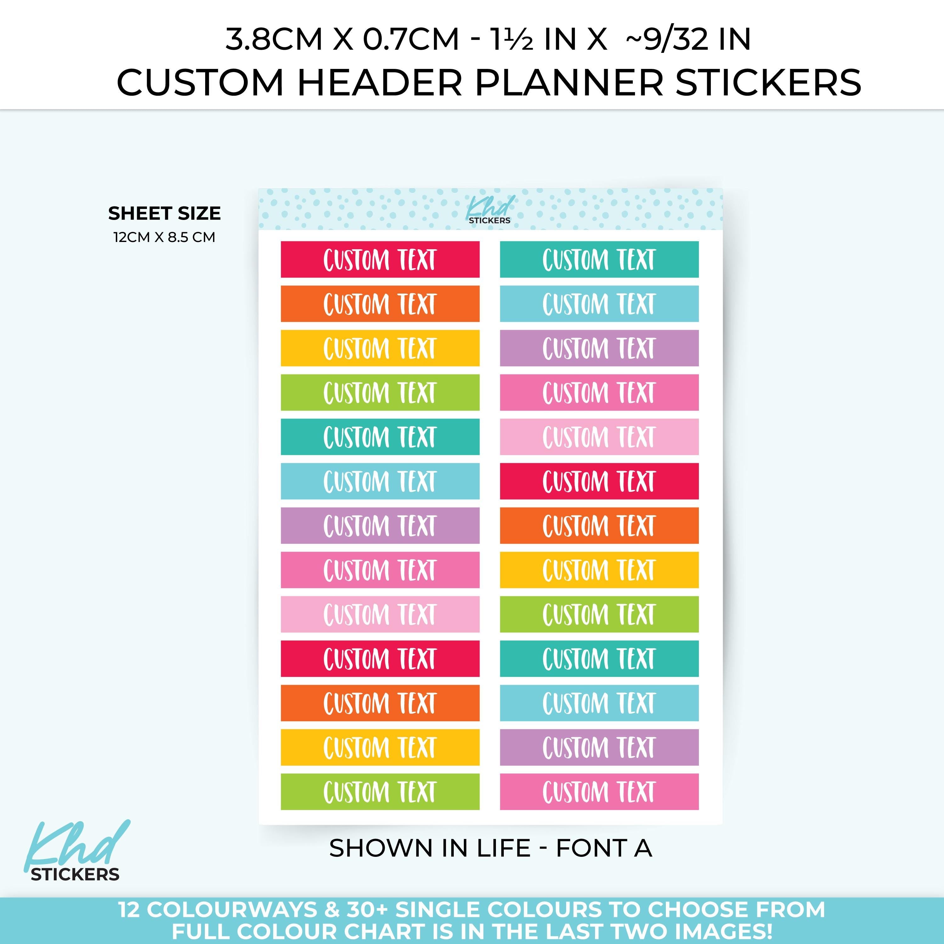 Custom Header Stickers - 3.8cm x 0.7cm - 1½ in x 9/32 in