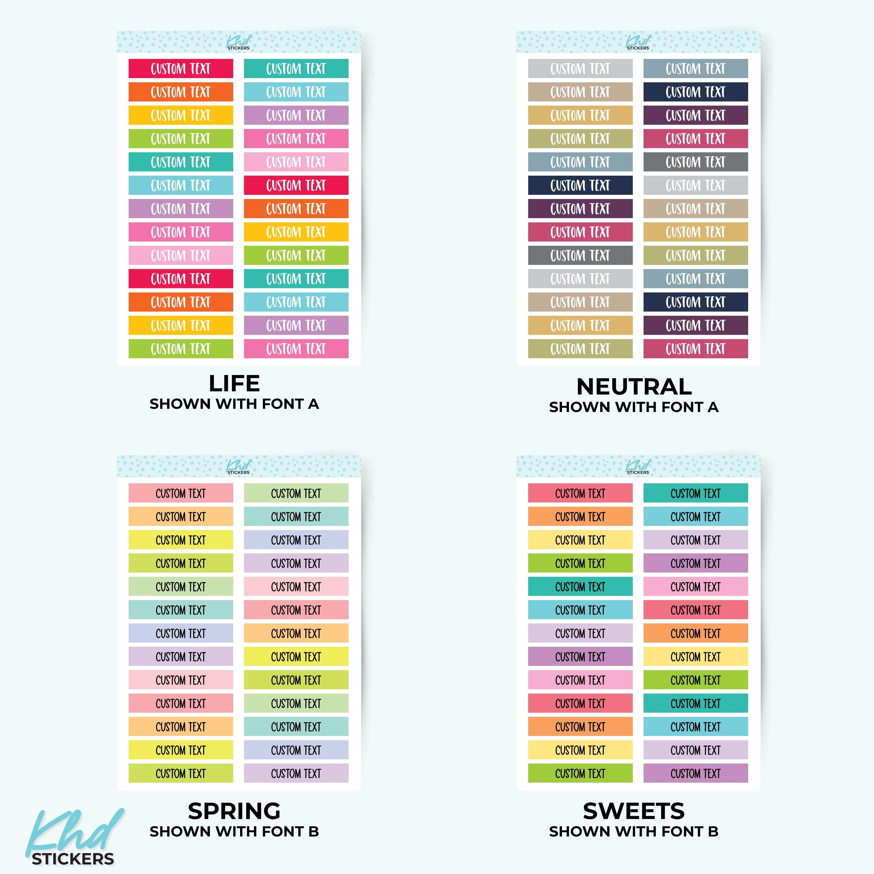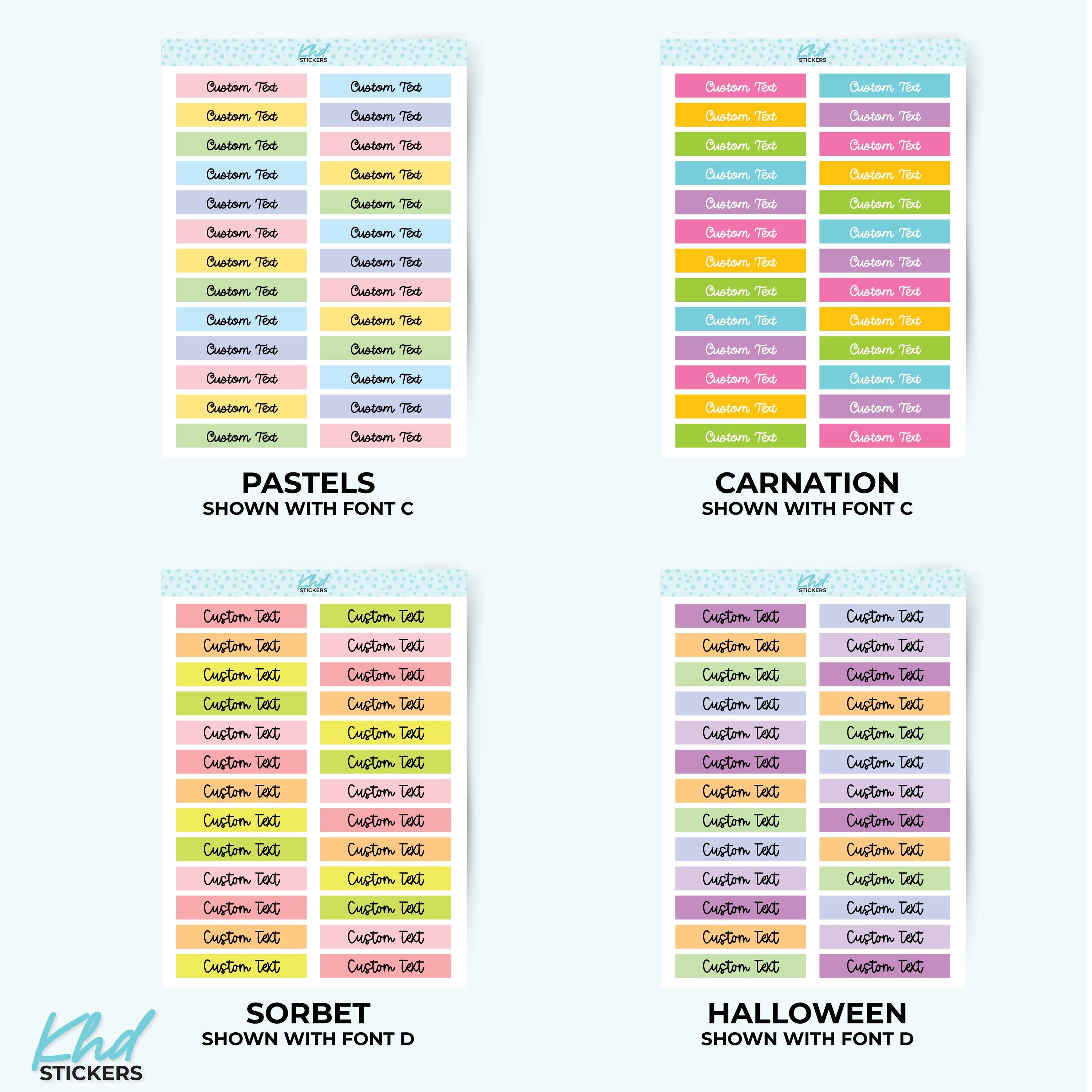 There's 6 fonts, and 16 colourways.  Or select your own single colour to match your planning style.