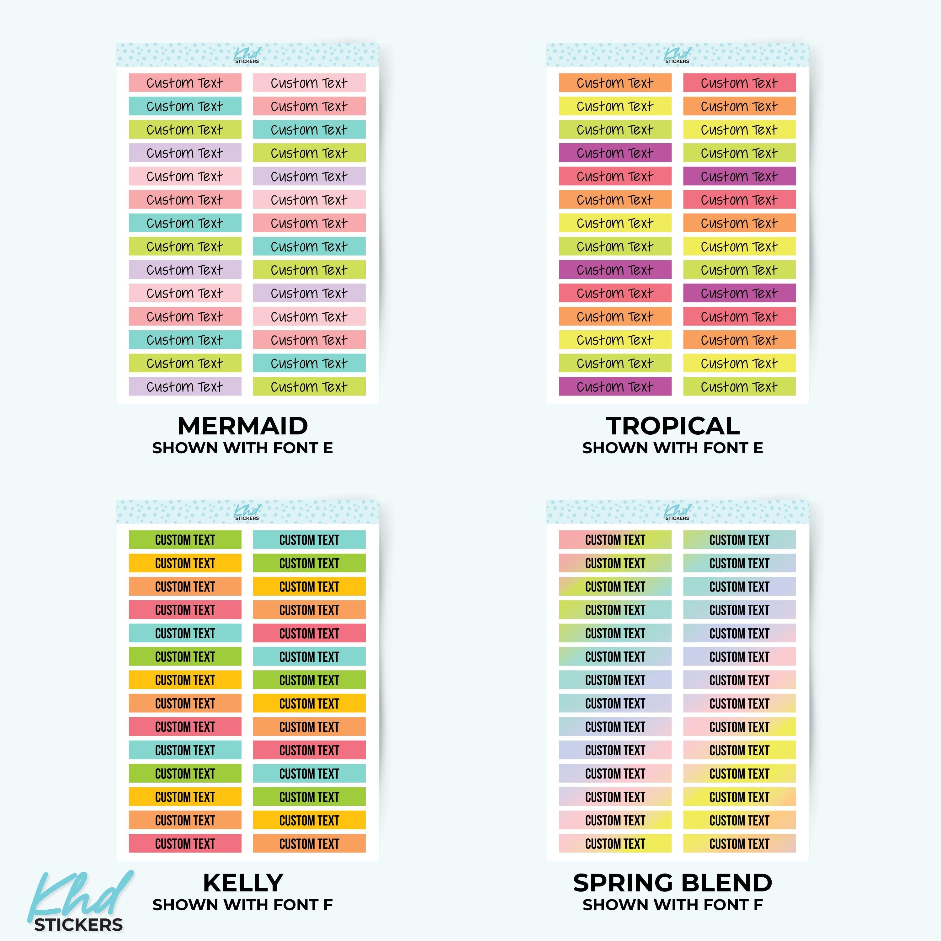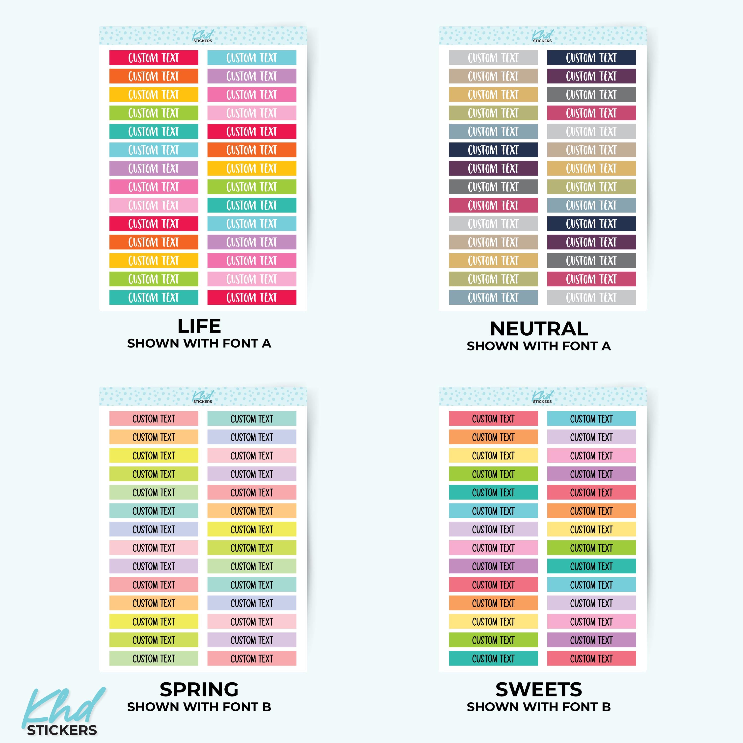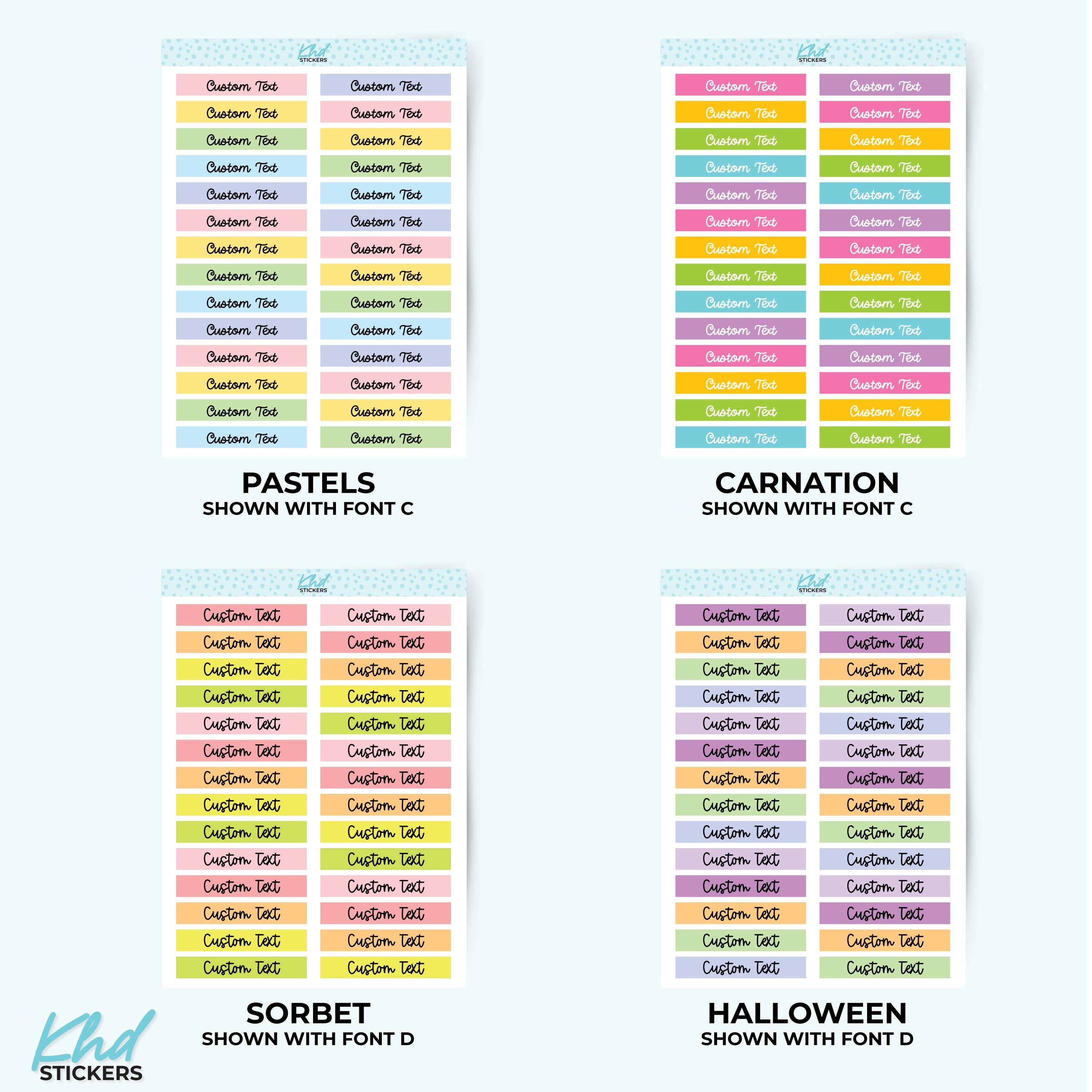 There's 6 fonts, and 16 colourways. Or select your own single colour to match your planning style.