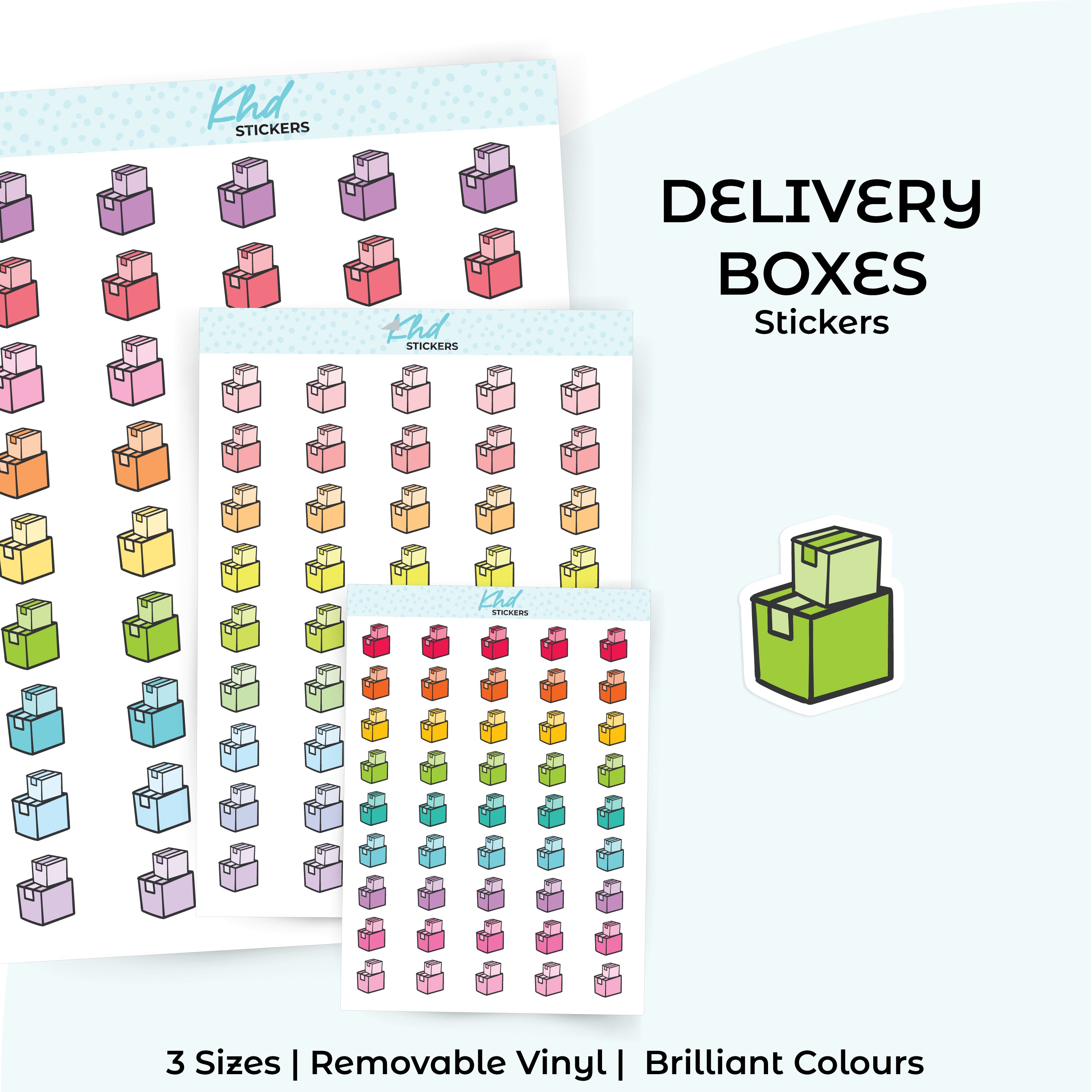 Delivery Box Planner Stickers. Select from one of 4 colourways, or select a sheet of your favourite colour. Available in three great sizes making it easy to match your planning style.