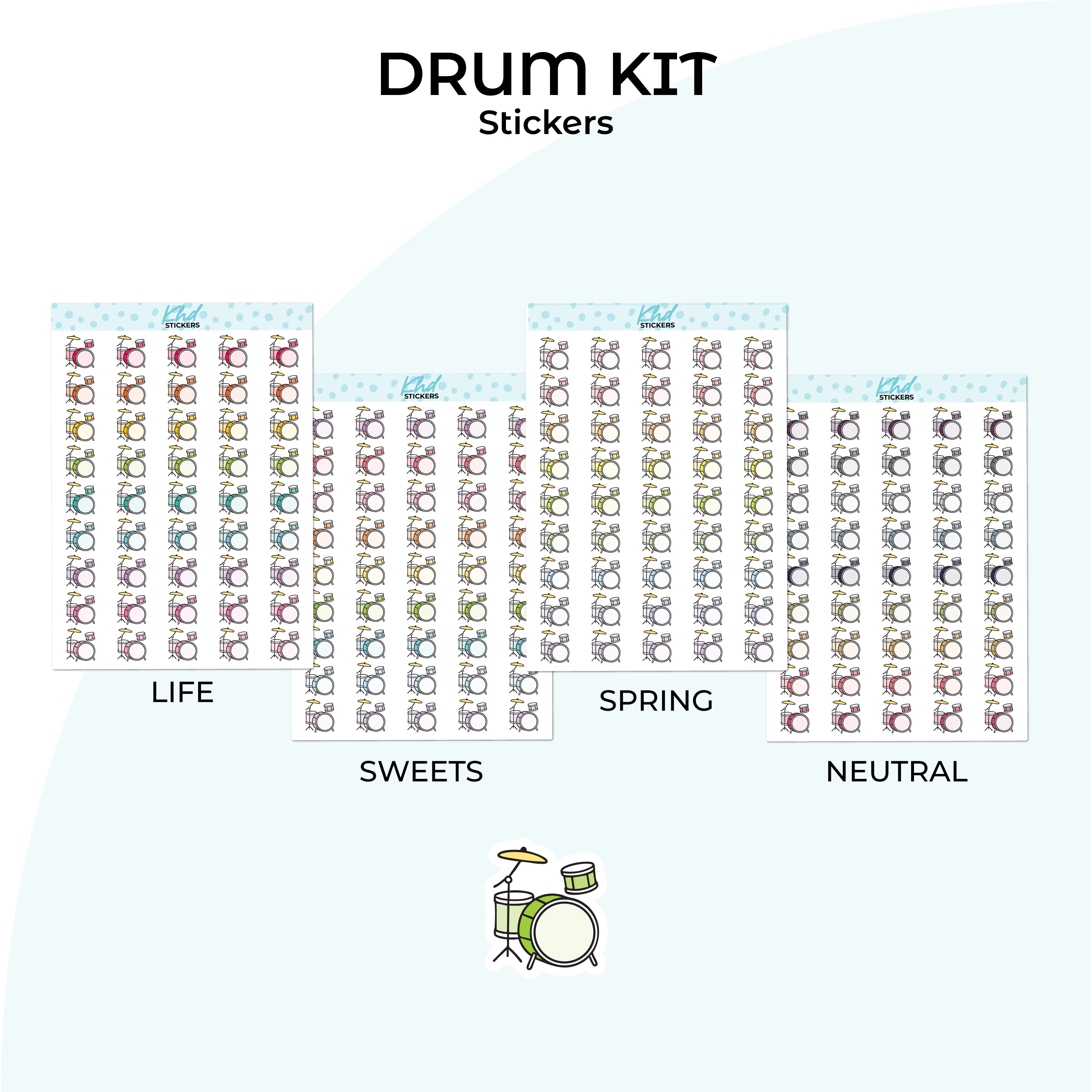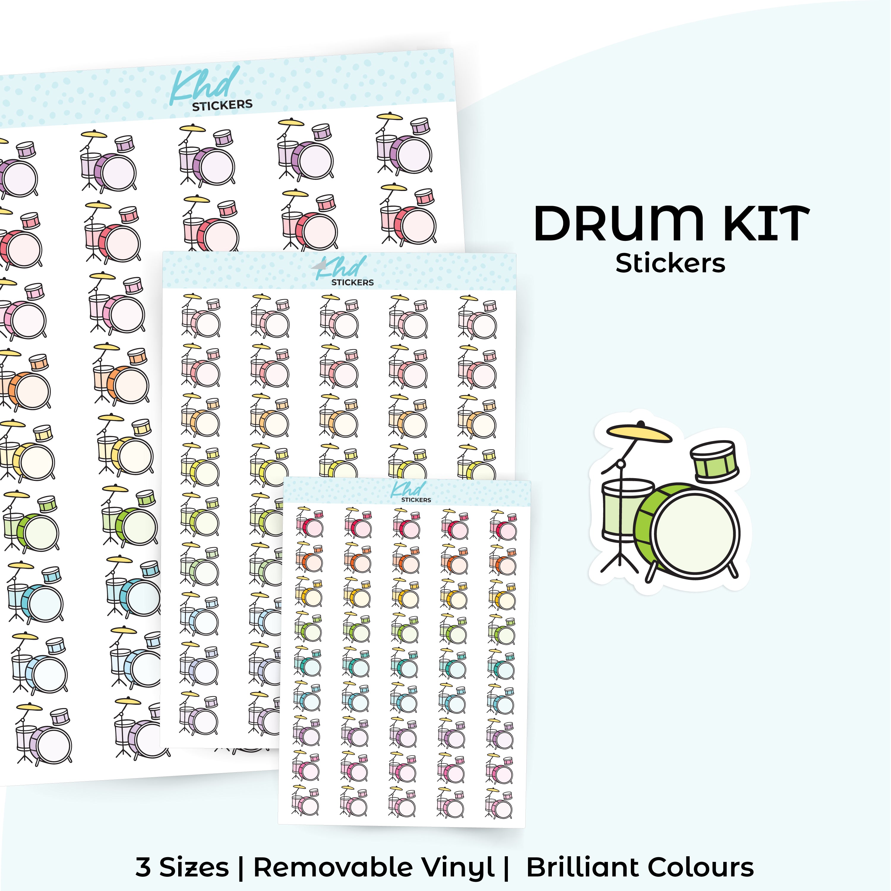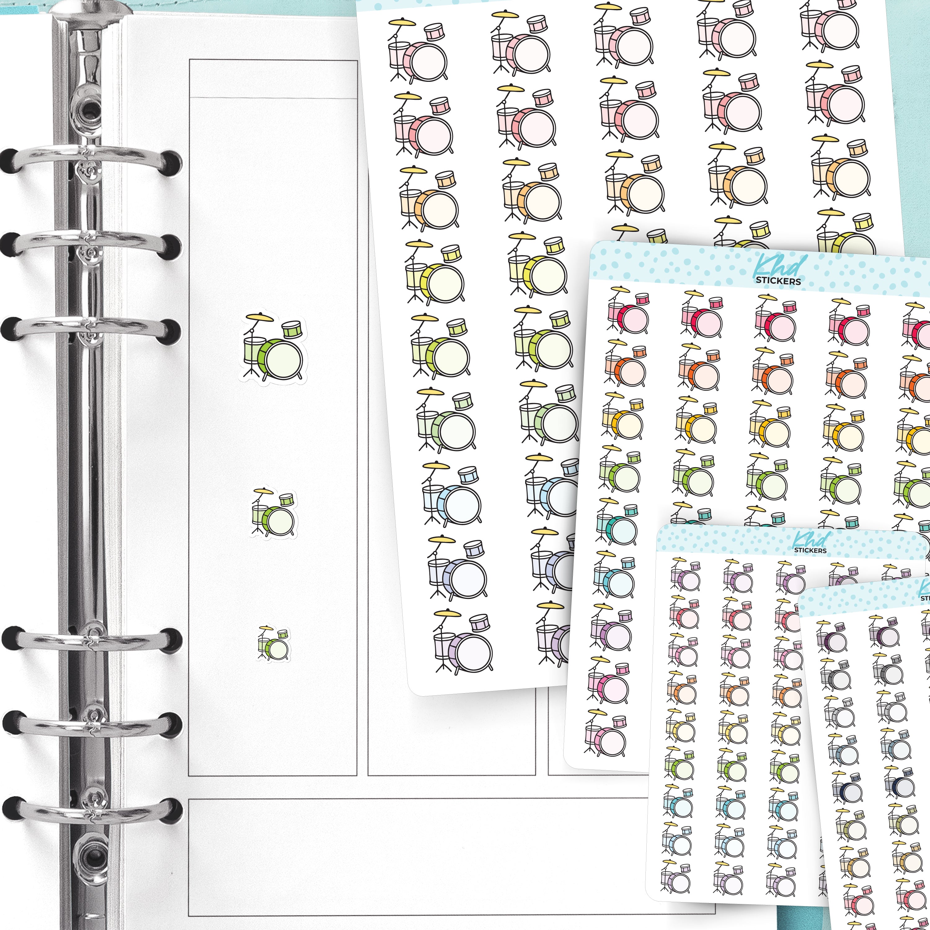 ✨ Mark music time with these fun drum kit stickers! Featuring a cute hand-drawn drum set, these are perfect for tracking band practice, music lessons, concerts, gigs, or just showing off your love of drumming.