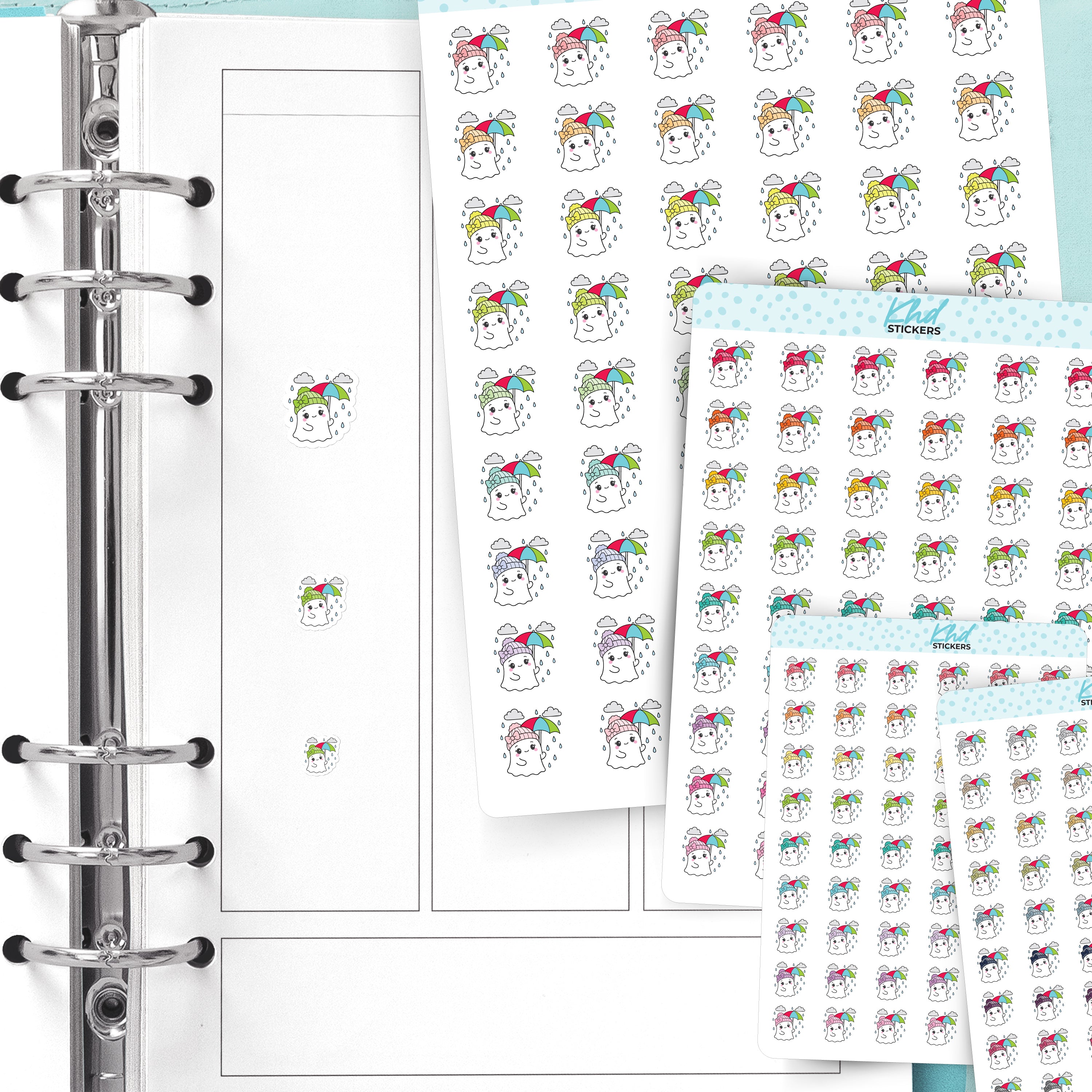 Georgina in the rain to track rainy days and wet weather plans in your planner or diary.