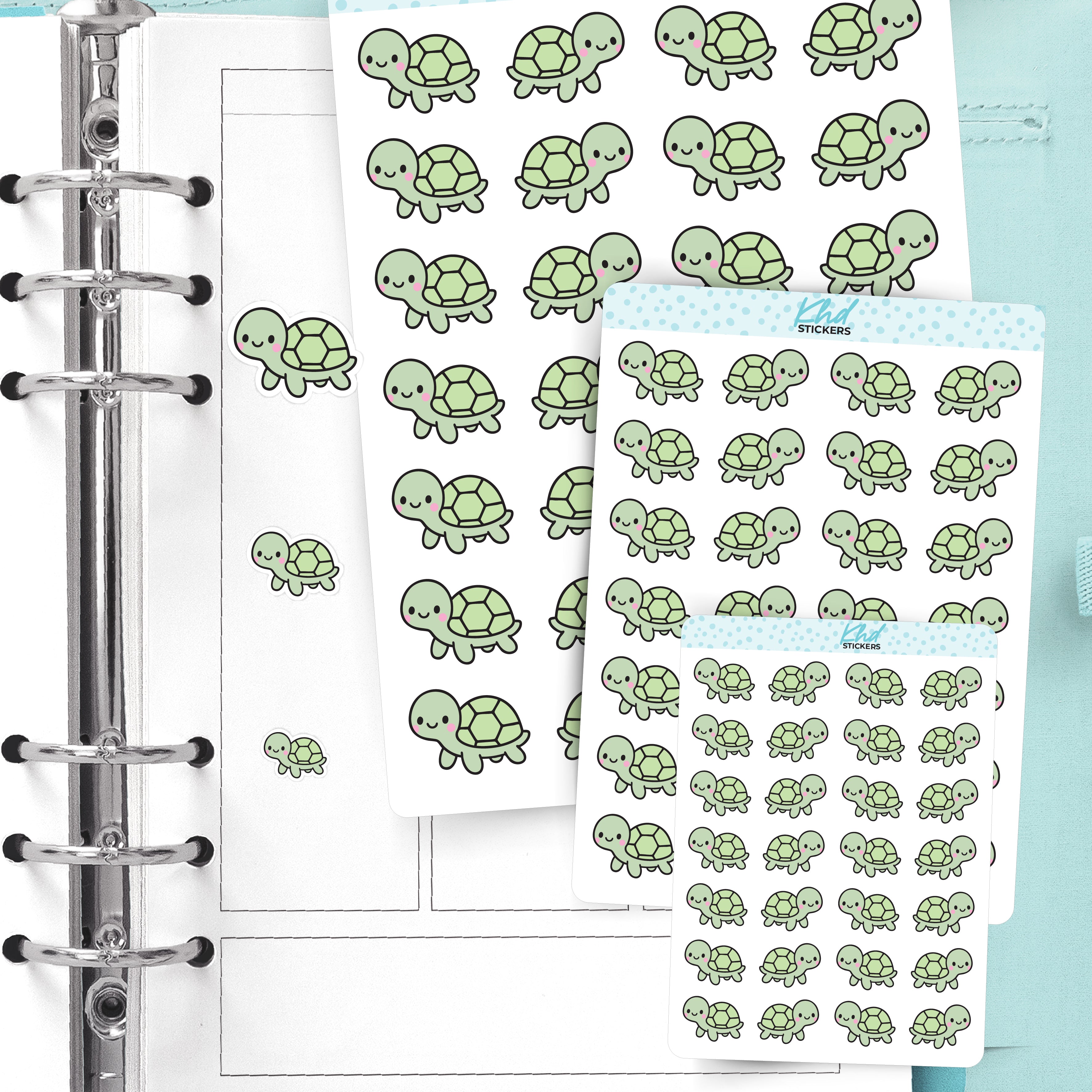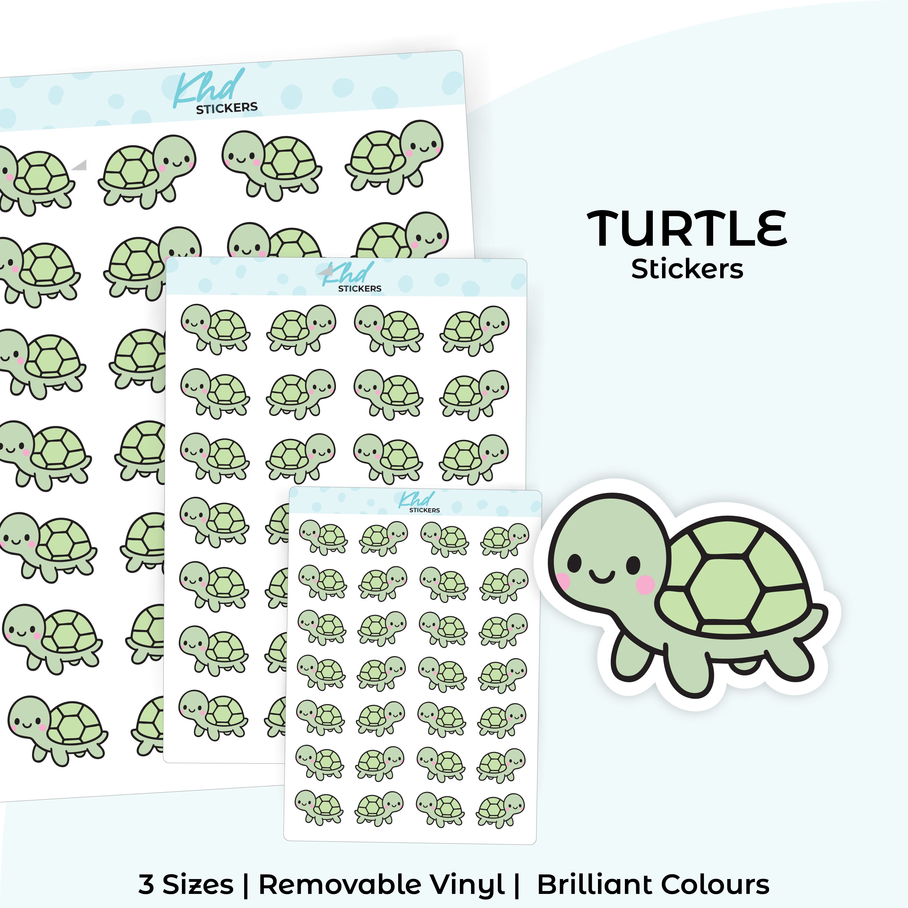 Kawaii Turtle – Cute Green Animal Planner Stickers