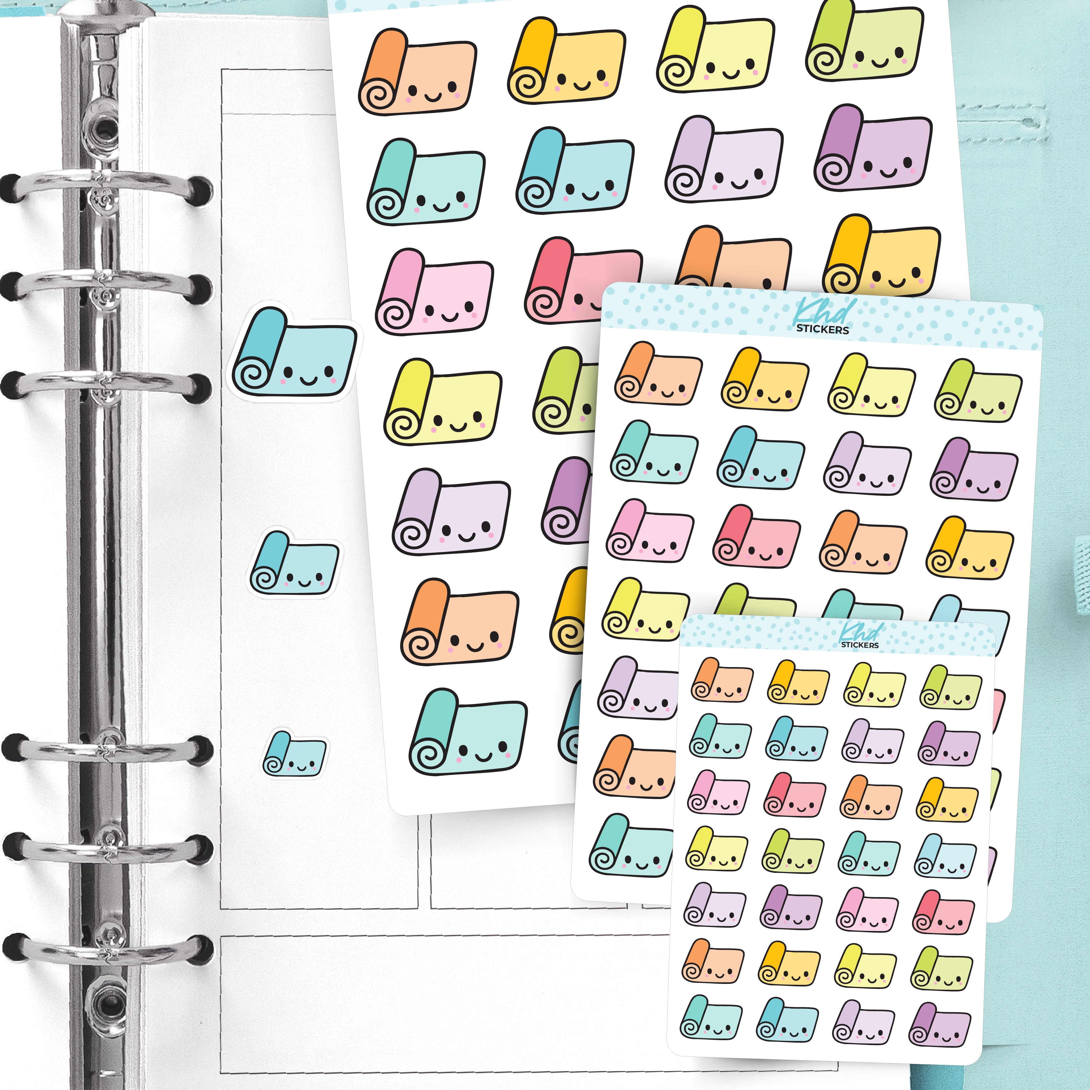 These cute, kawaii-style yoga mat stickers are great for marking workouts, classes, or self care time. The clean design adds a gentle, positive feel to your planner. Perfect for planners, diaries, and journals focused on wellness routines.