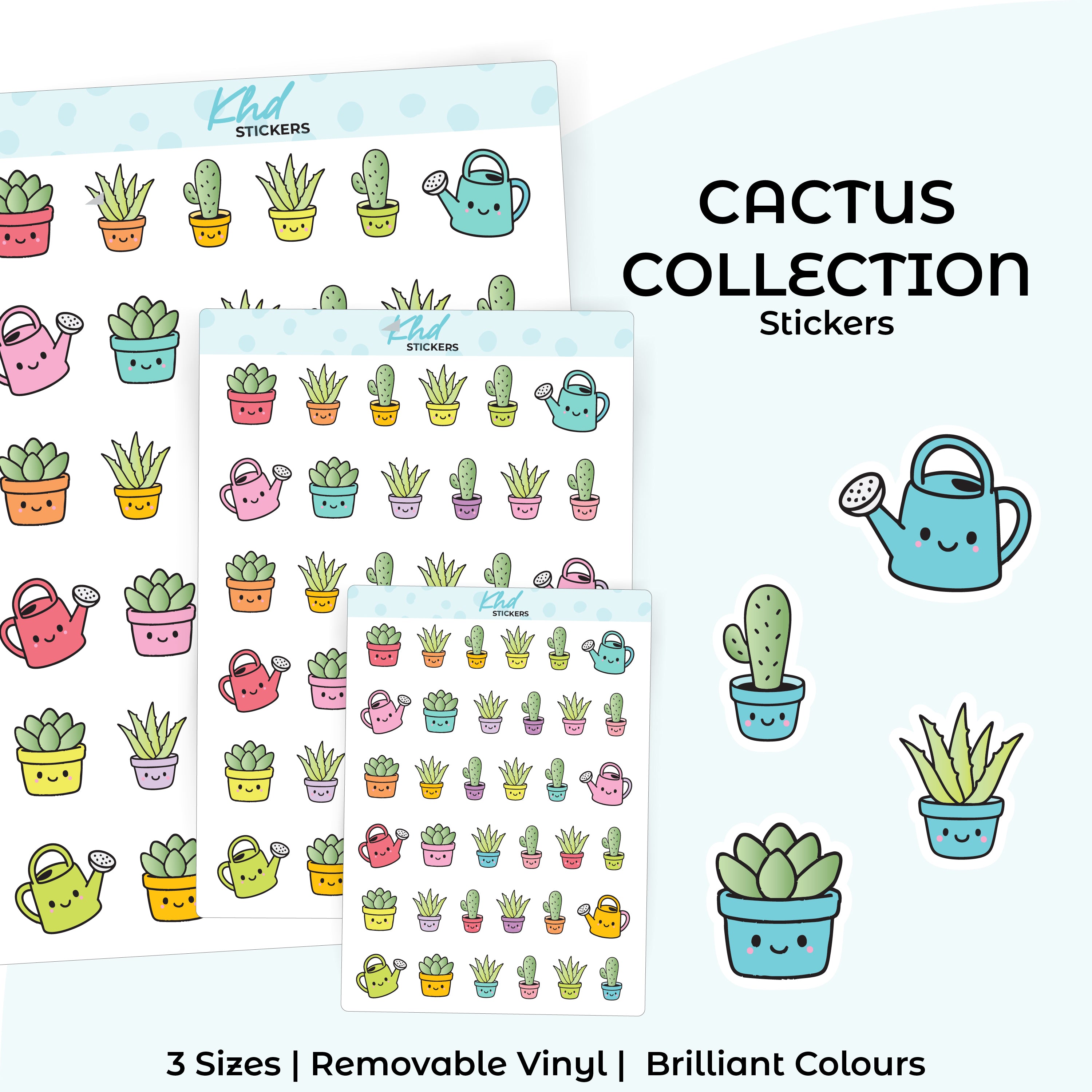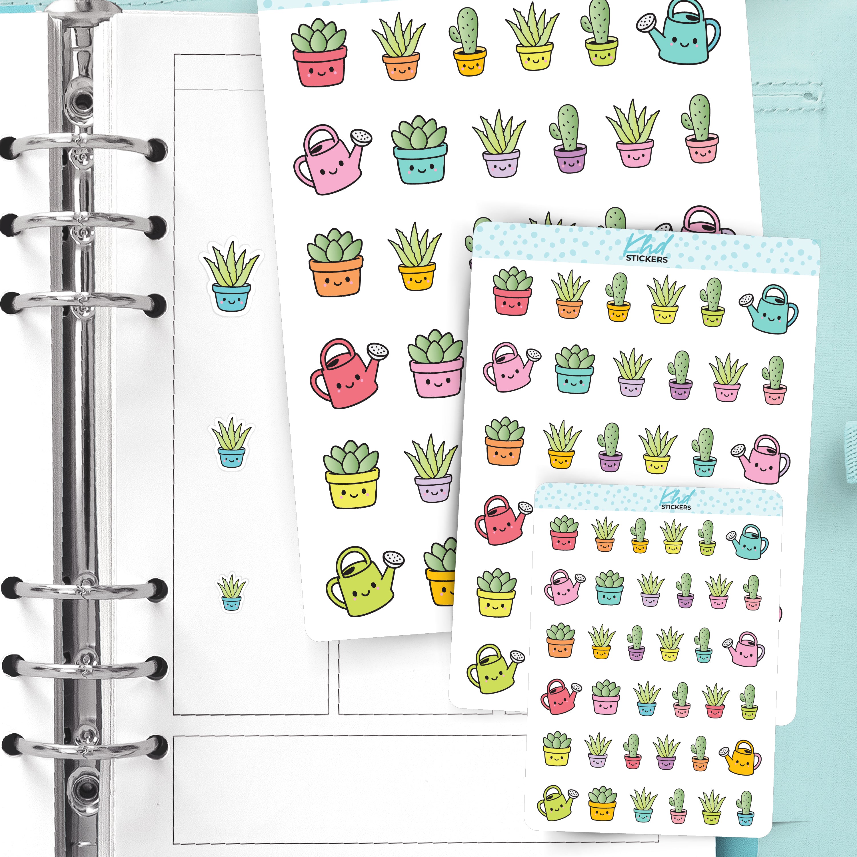 Each sheet features a mix of cute pots, smiley watering cans, and leafy succulents, ideal for marking plant care days, outdoor moments, or just adding a splash of happy greenery to your pages.