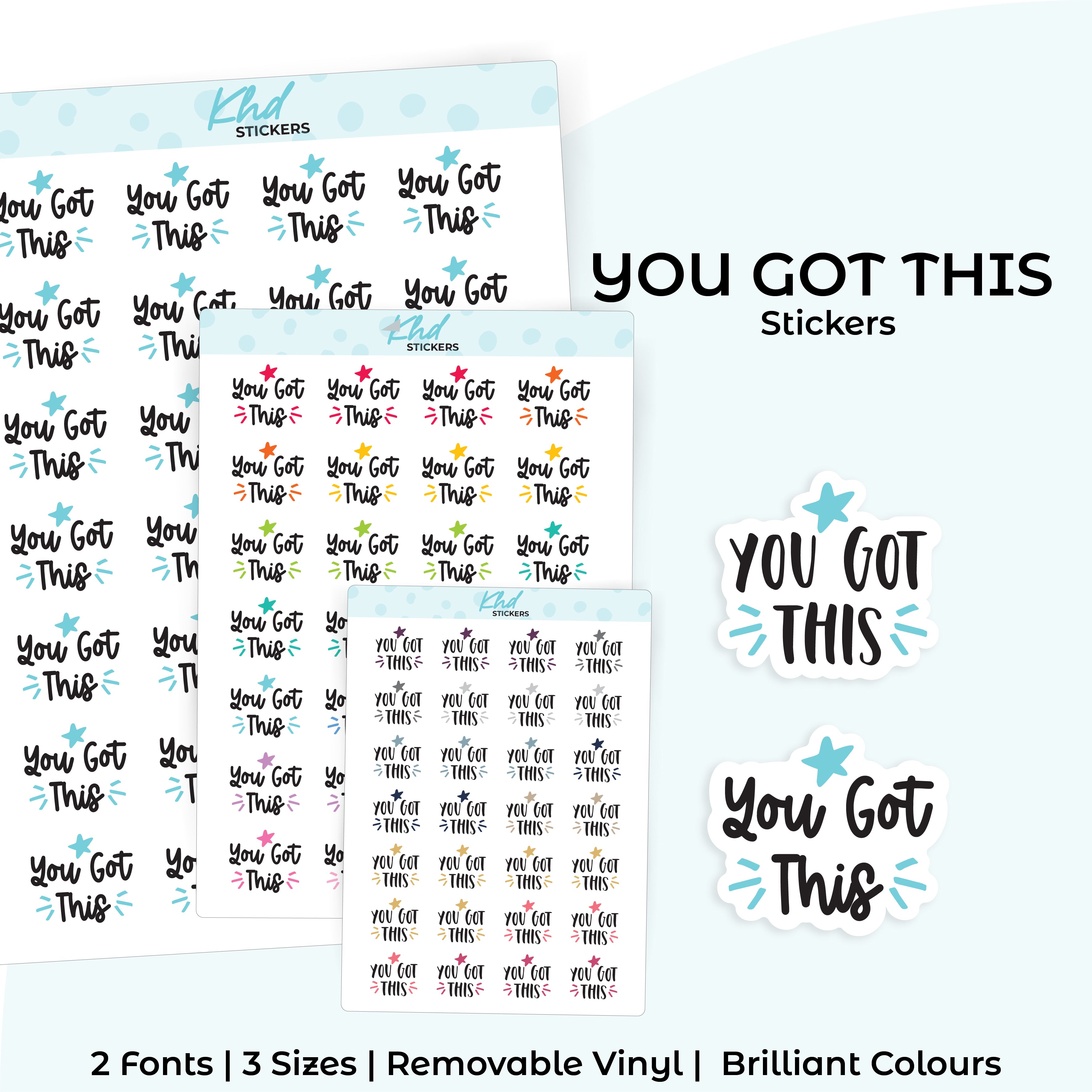 You Got This Planner Stickers. Select from one of 4 colourways, or select a sheet of your favourite colour. Available in three great sizes making it easy to match your planning style.