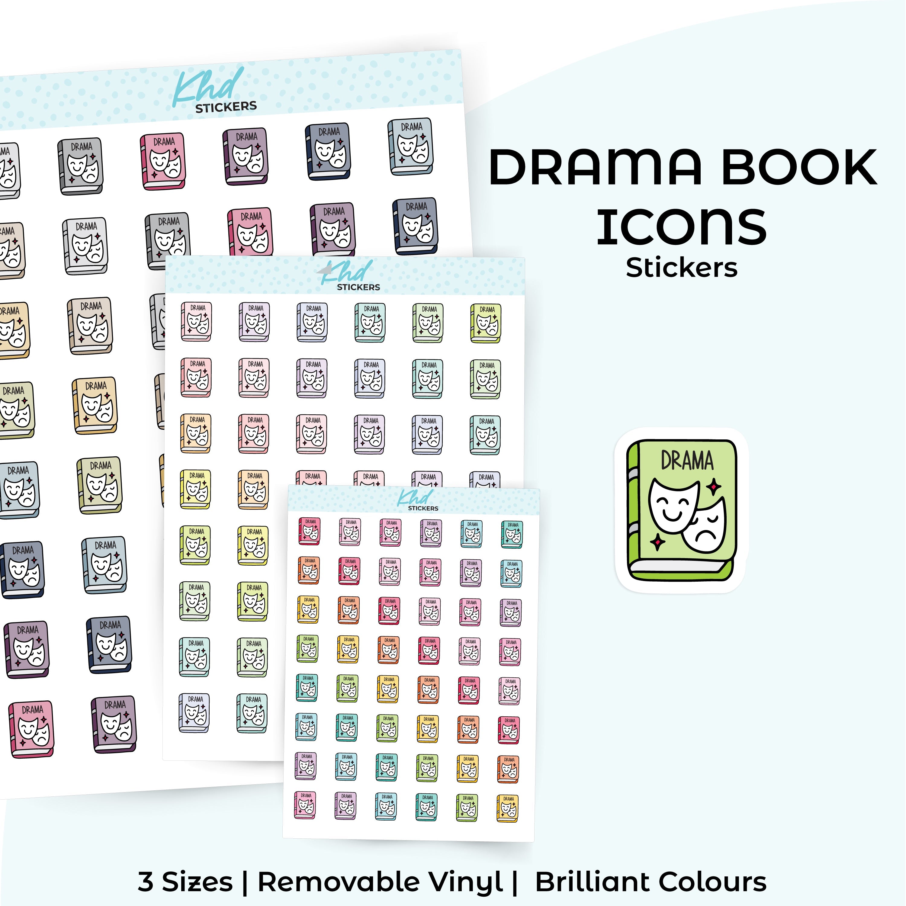 Cute functional drama book icons for planners, diaries, and journals.