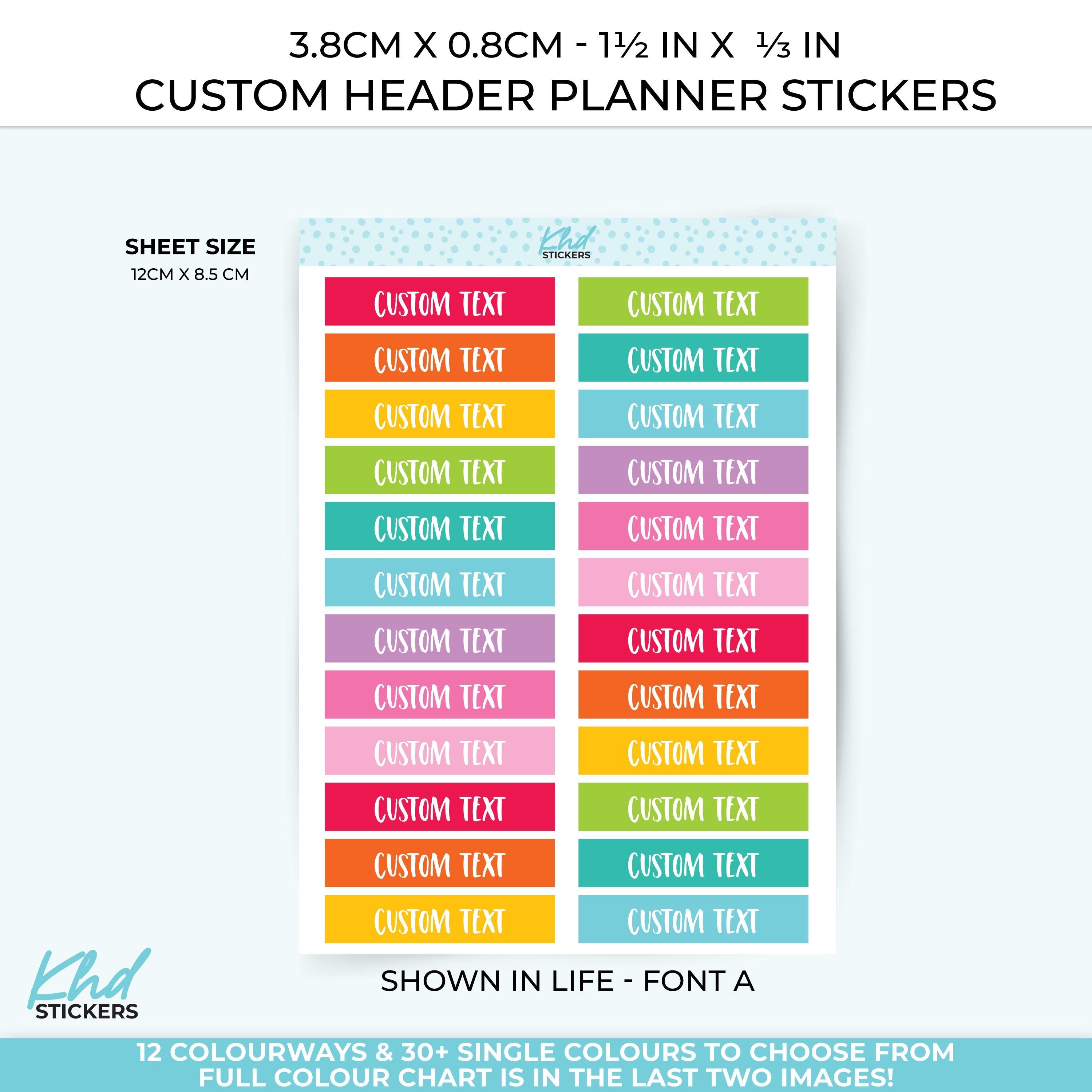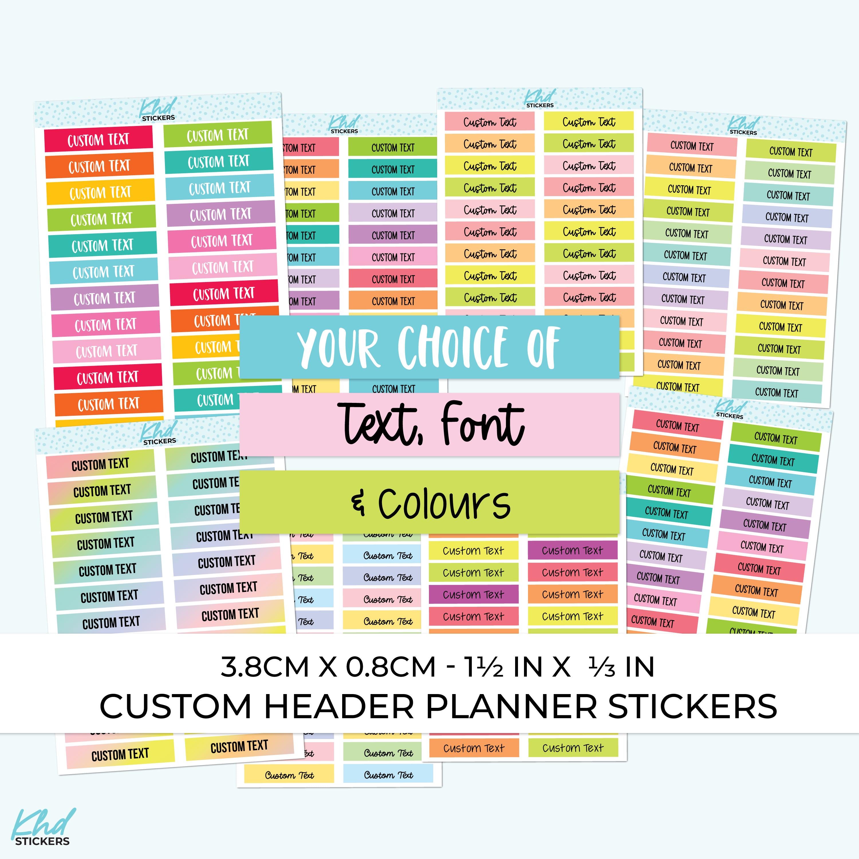 Custom Header Stickers - 3.8cm x 0.8cm - 1½ in x ⅓ in