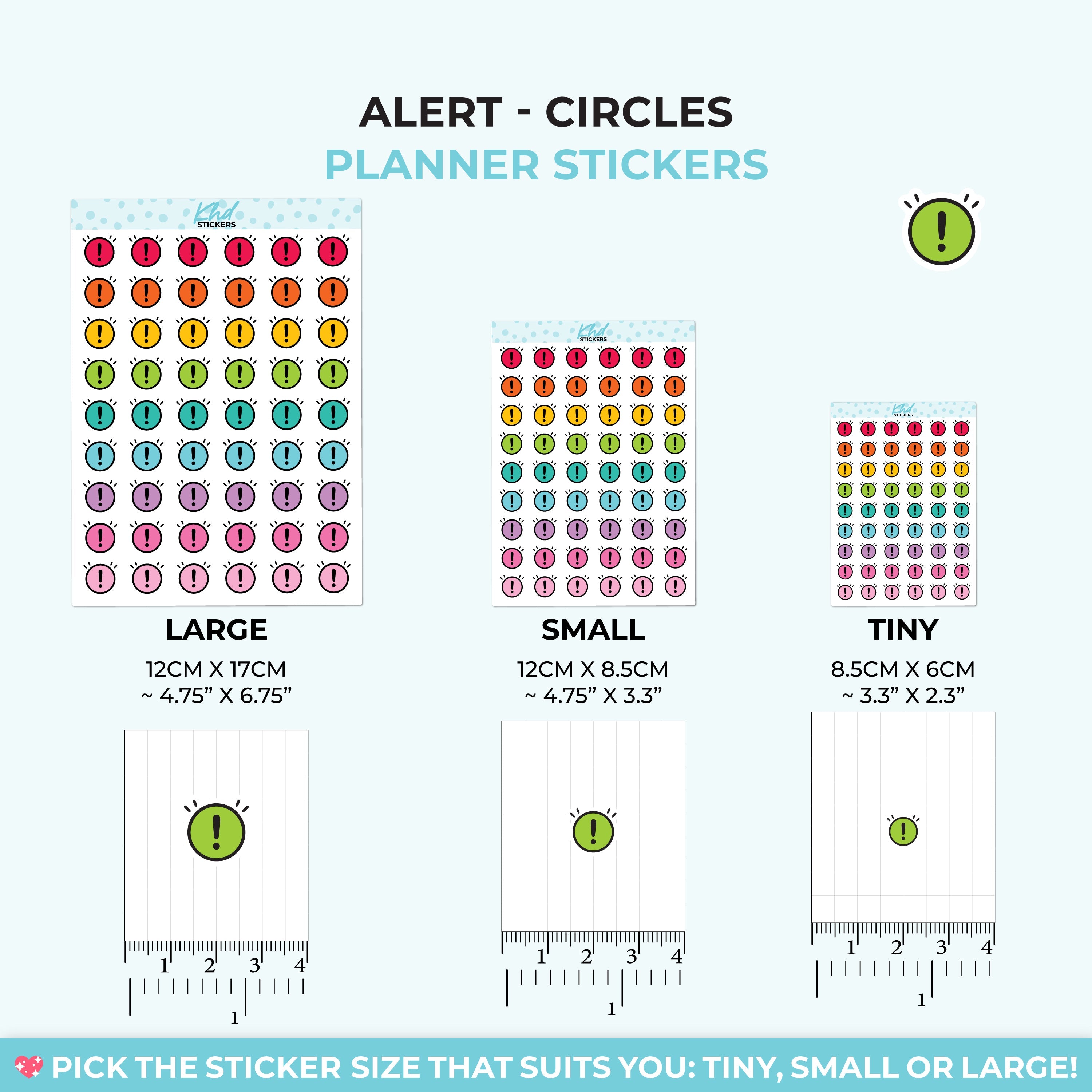 These alert circle stickers bring a soft but clear reminder wherever you place them. Ideal for noting high-priority tasks or daily highlights. Their simple round shape fits easily into boxes, checklists, or margins.