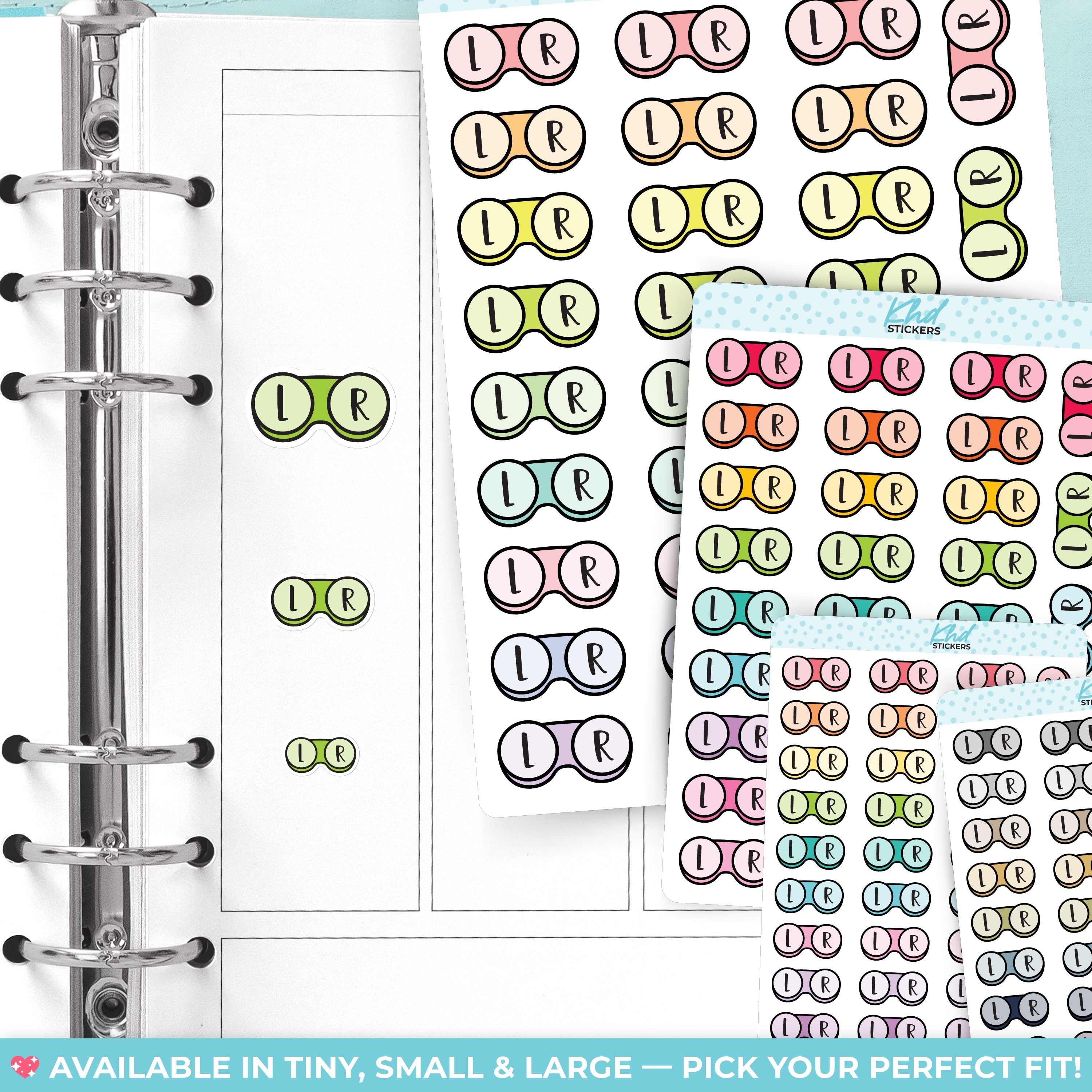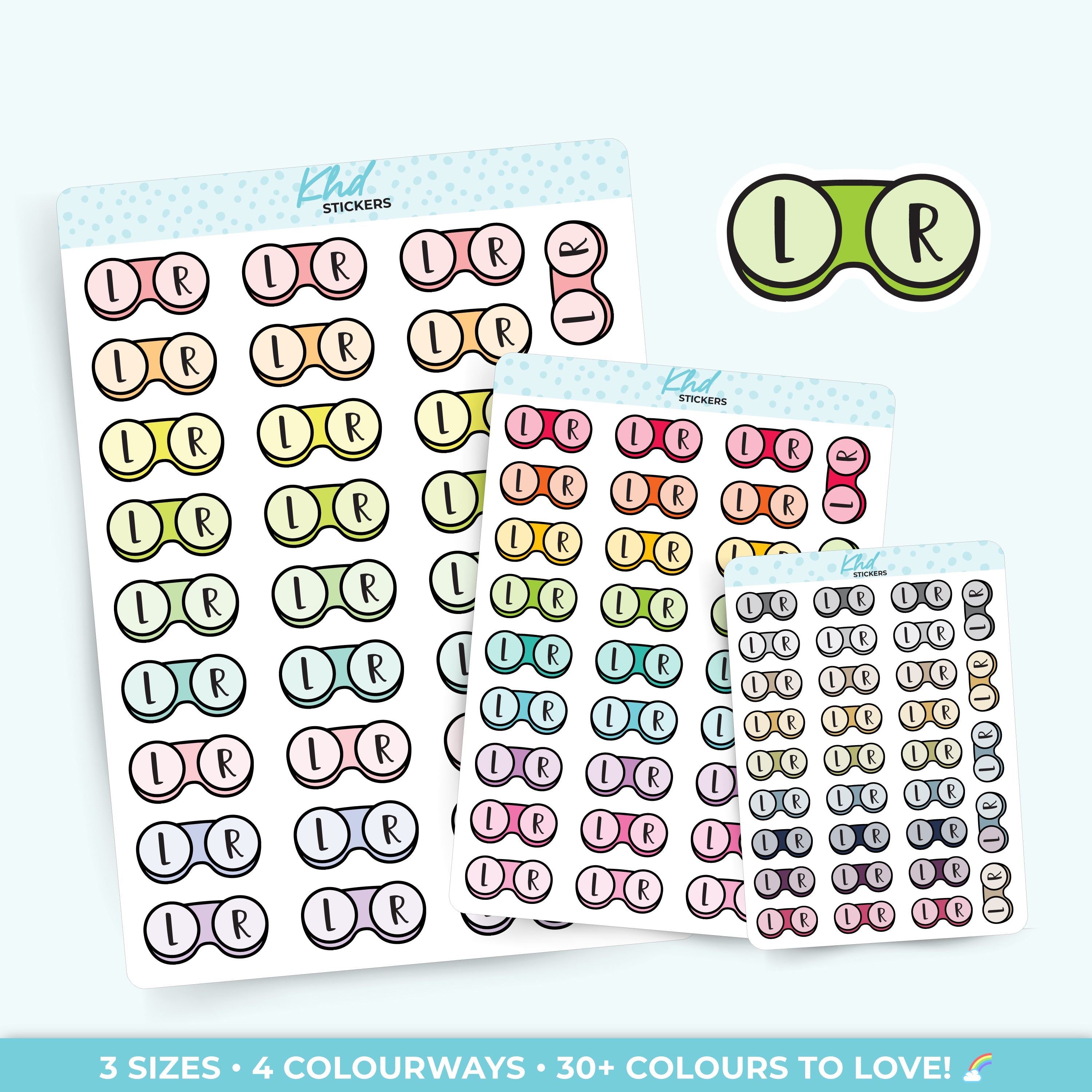 Contact Lens Case Planner Stickers in three sizes and 35 colourways. Removable, smooth-matte finish.