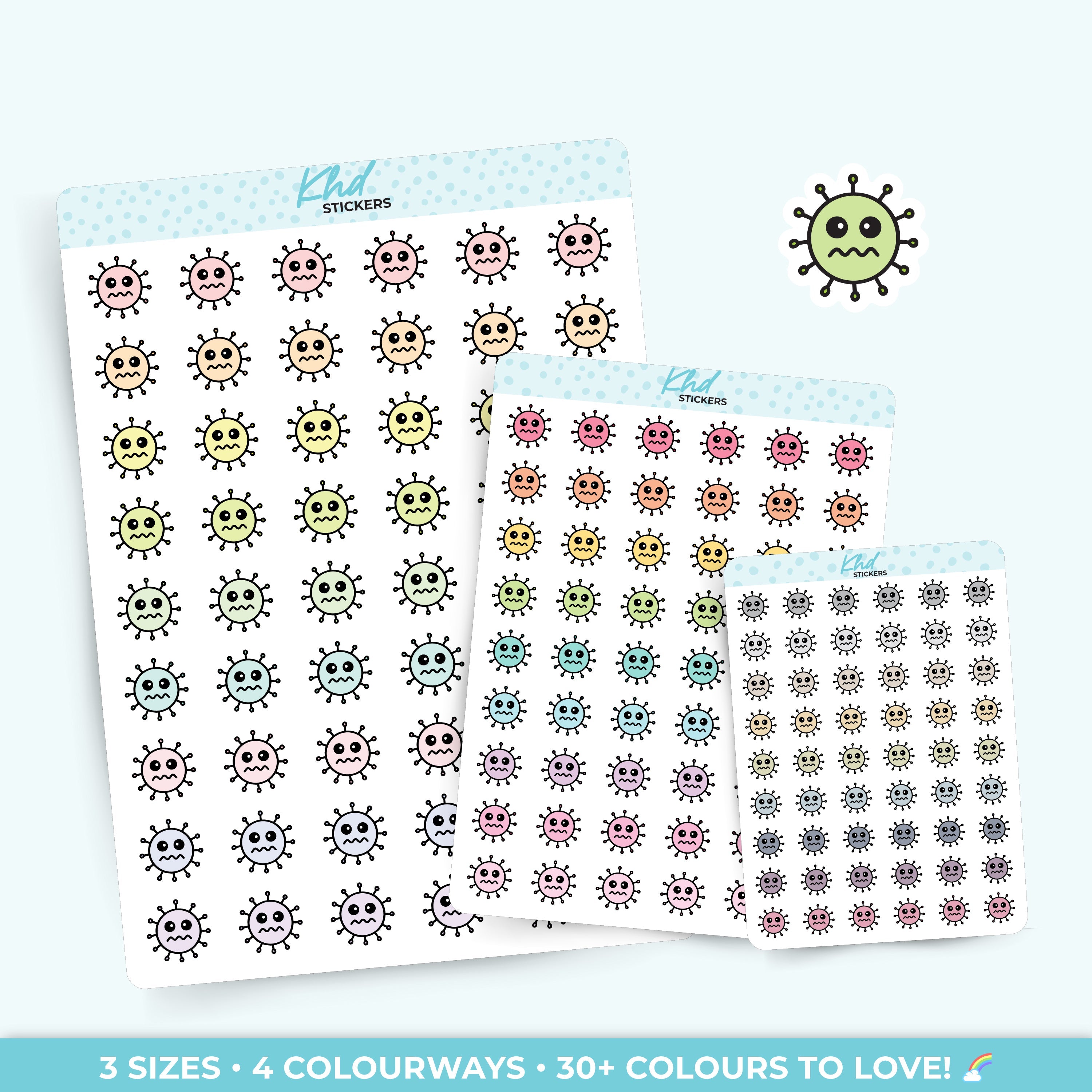 Virus! Planner Stickers in three sizes and 35 colourways. Removable, smooth-matte finish.