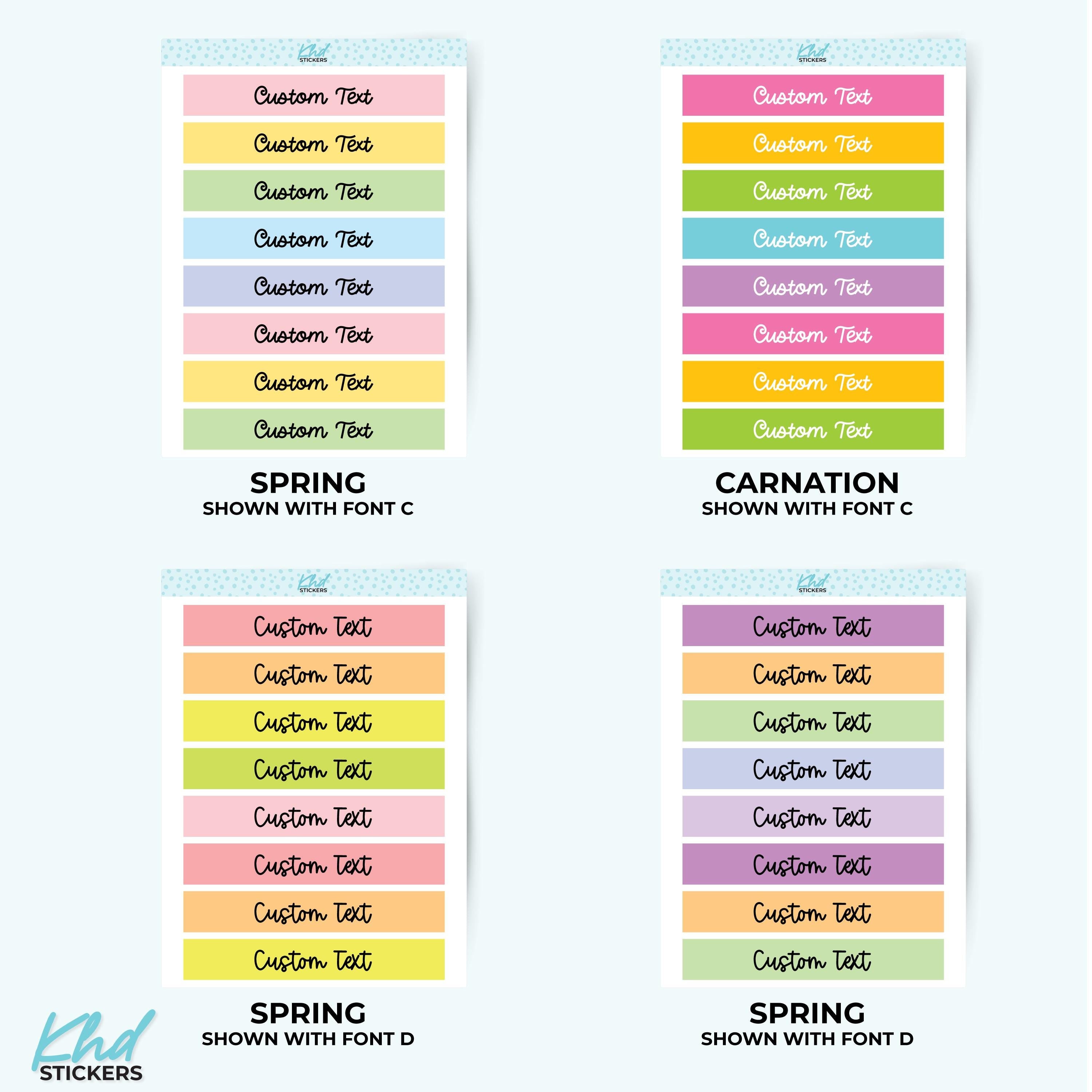There's 6 fonts, and 16 colourways.  Or select your own single colour to match your planning style.