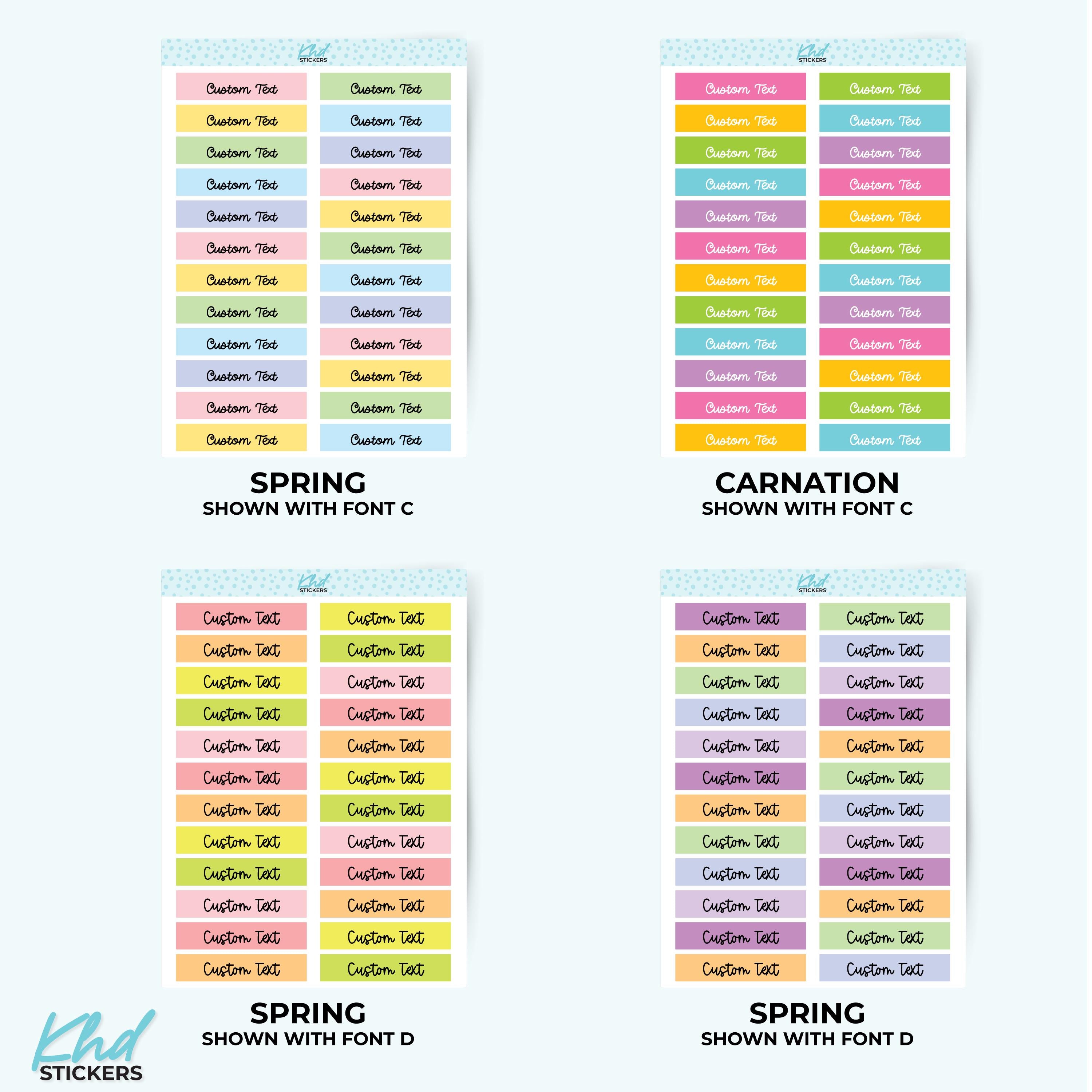 There's 6 fonts, and 16 colourways.  Or select your own single colour to match your planning style.