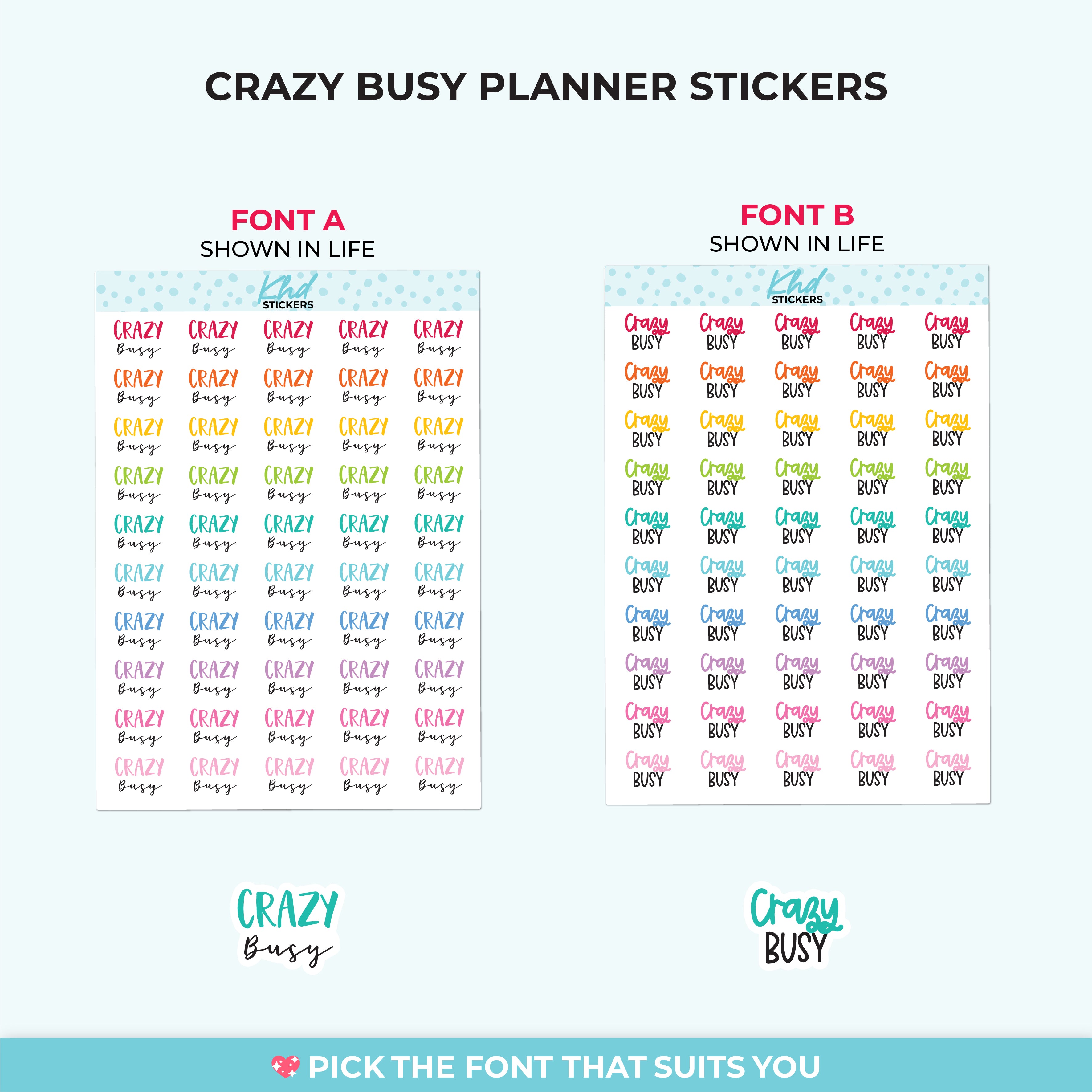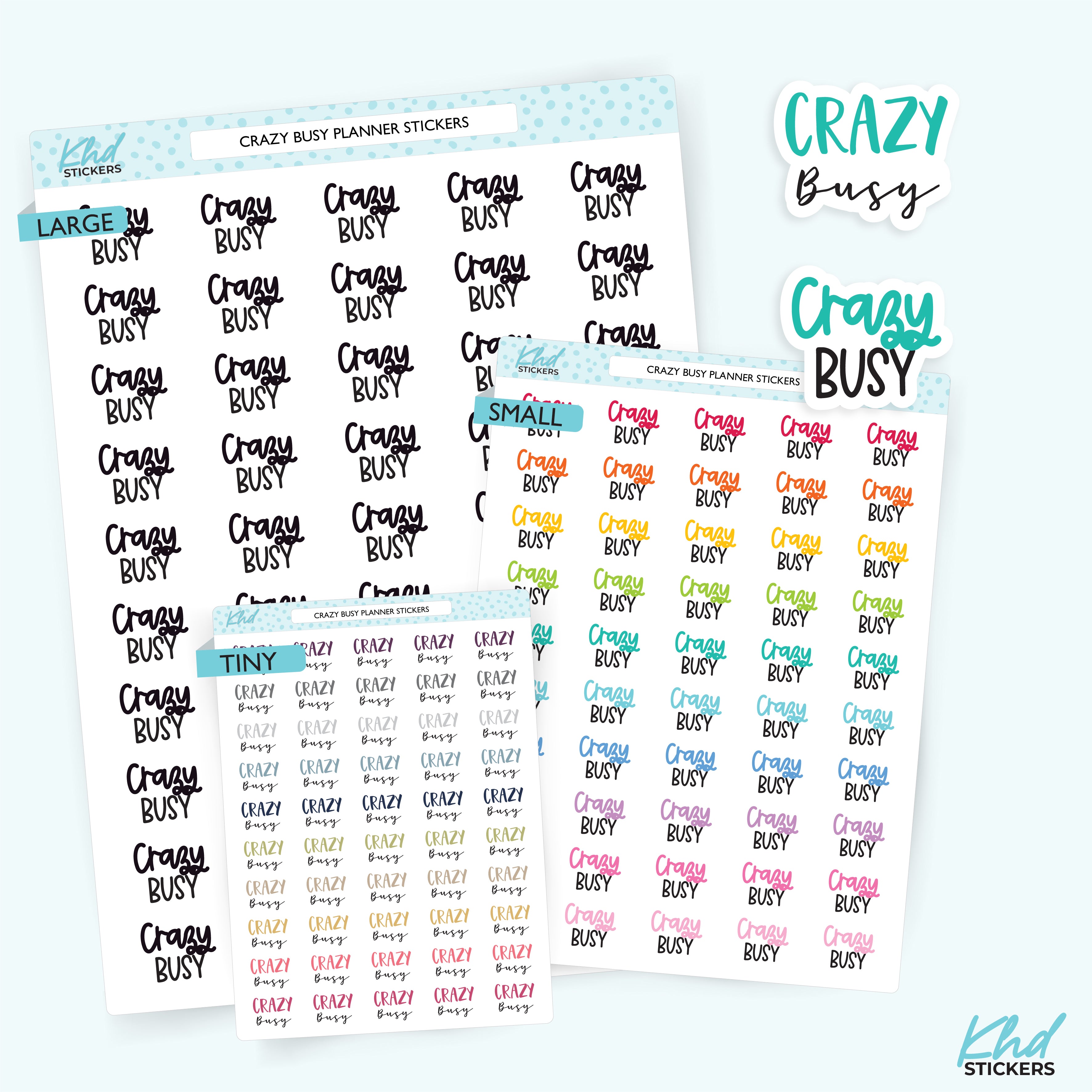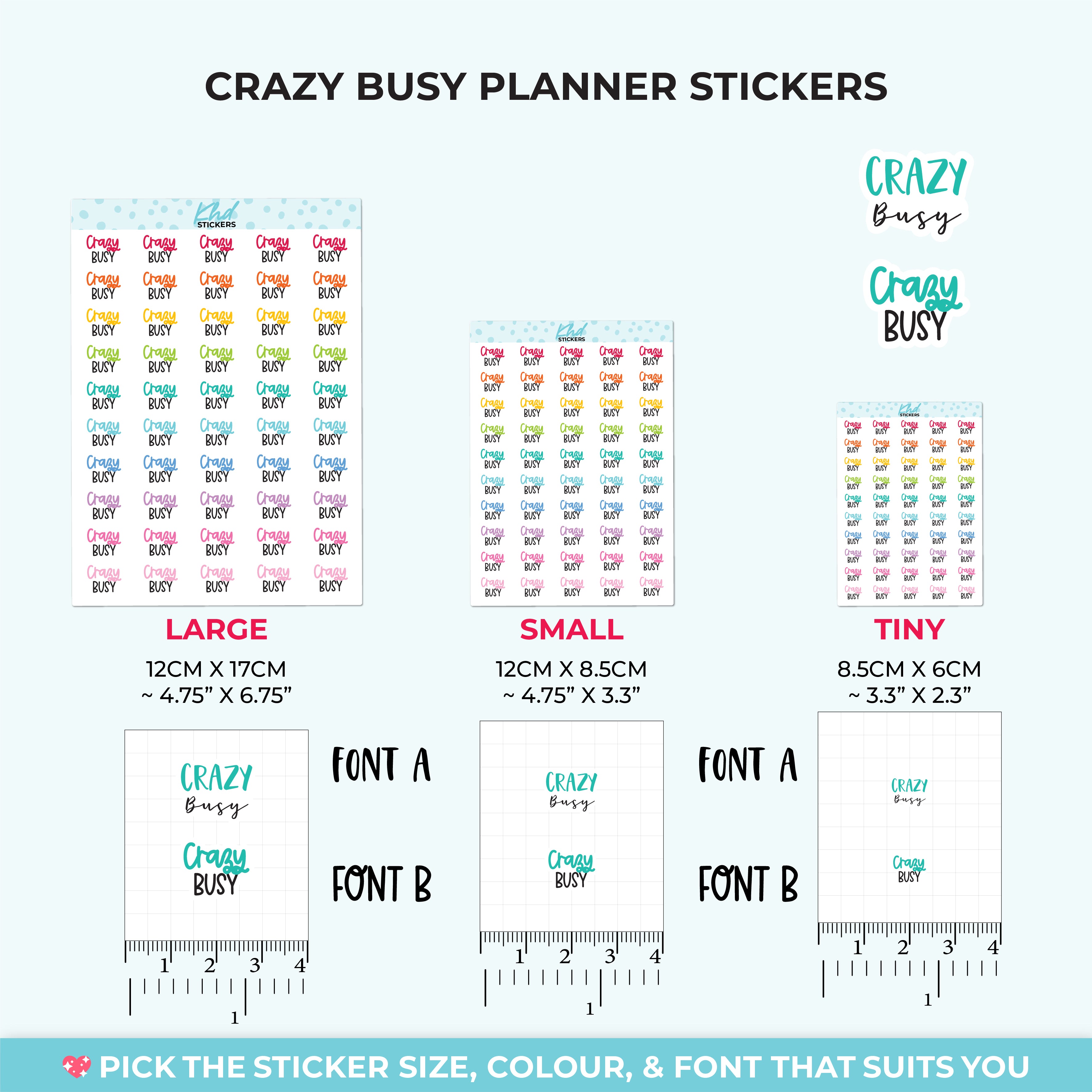 Crazy Busy Planner Stickers. Select from one of 4 colourways, or select a sheet of your favourite colour. Available in three great sizes making it easy to match your planning style.