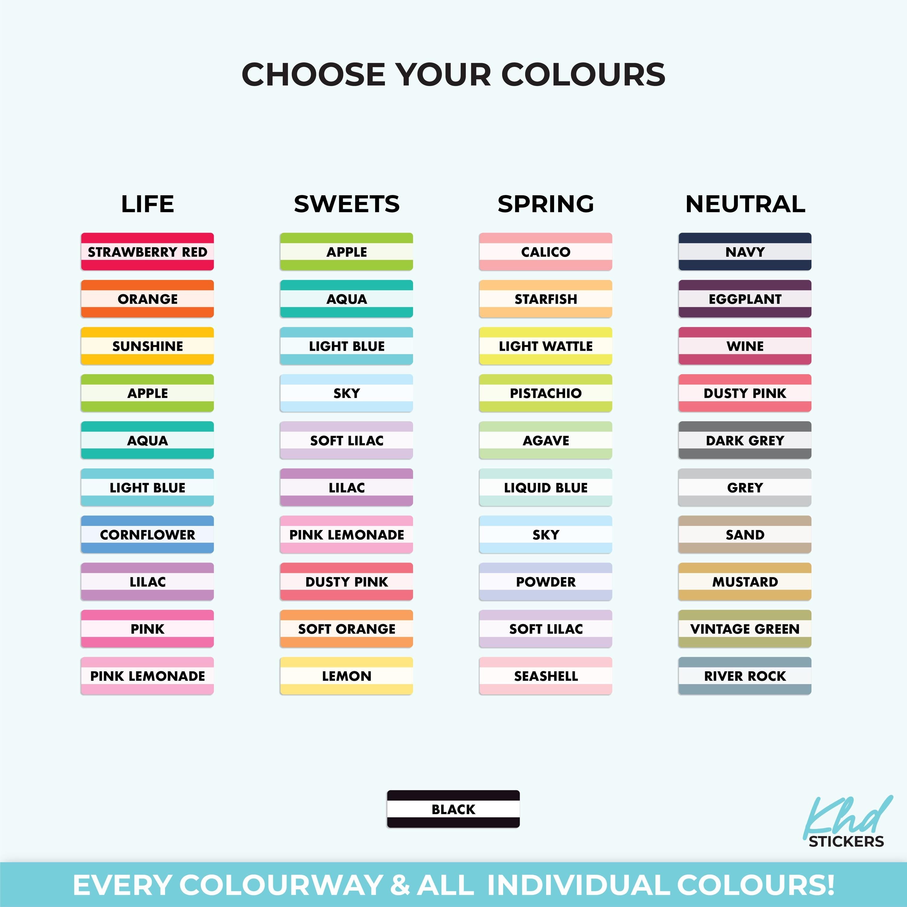 Select from a huge range of colours with 3 different sizes and 2 fonts, making it easy to match your planning style and planner.