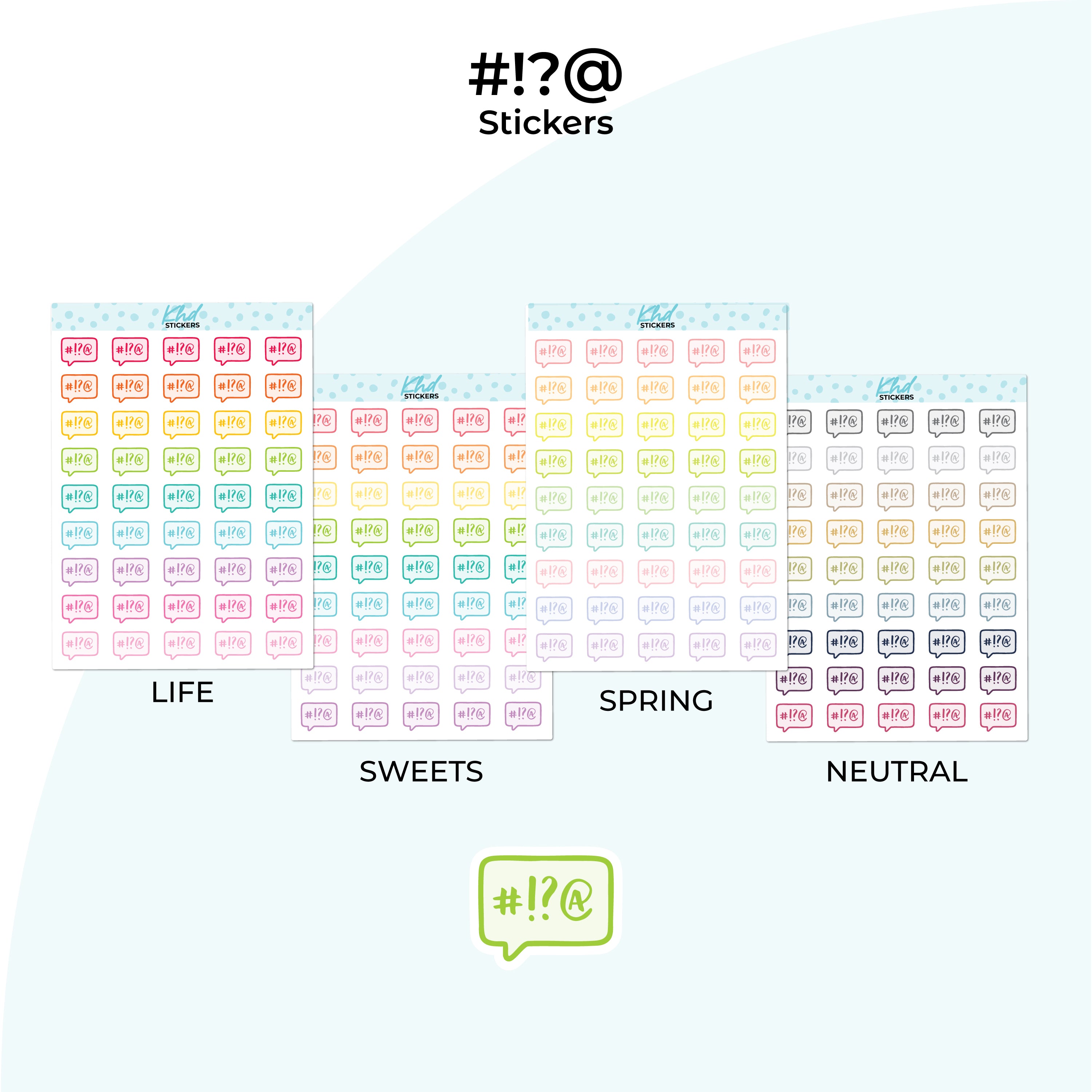 #!?@ Planner Stickers in three sizes and 35 colourways. Removable, smooth-matte finish.