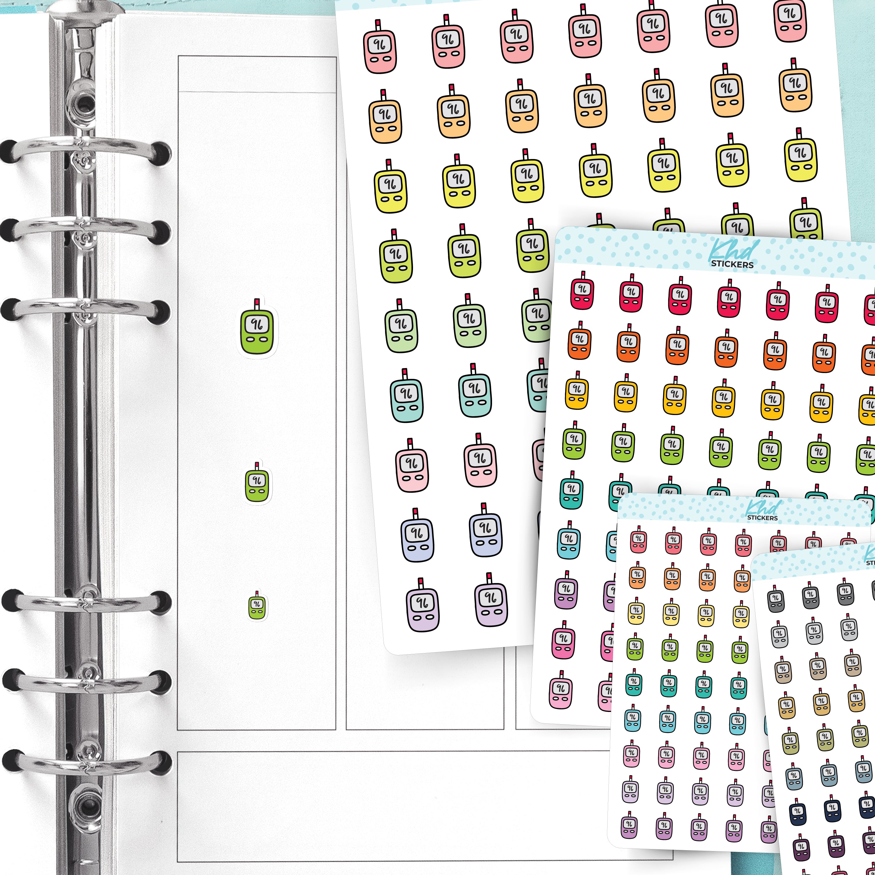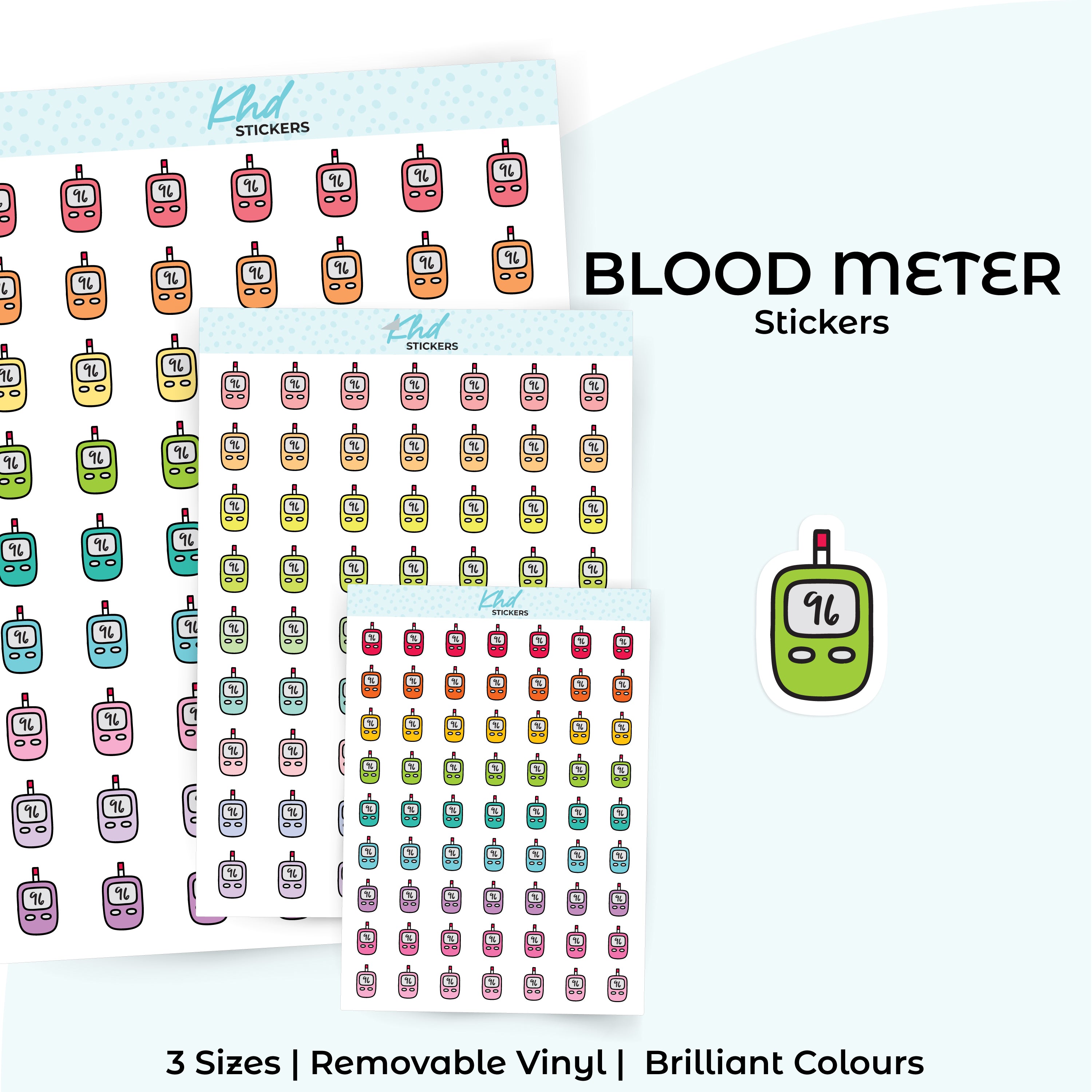Blood Meter Planner Stickers in three sizes and 35 colourways. Removable, smooth-matte finish.
