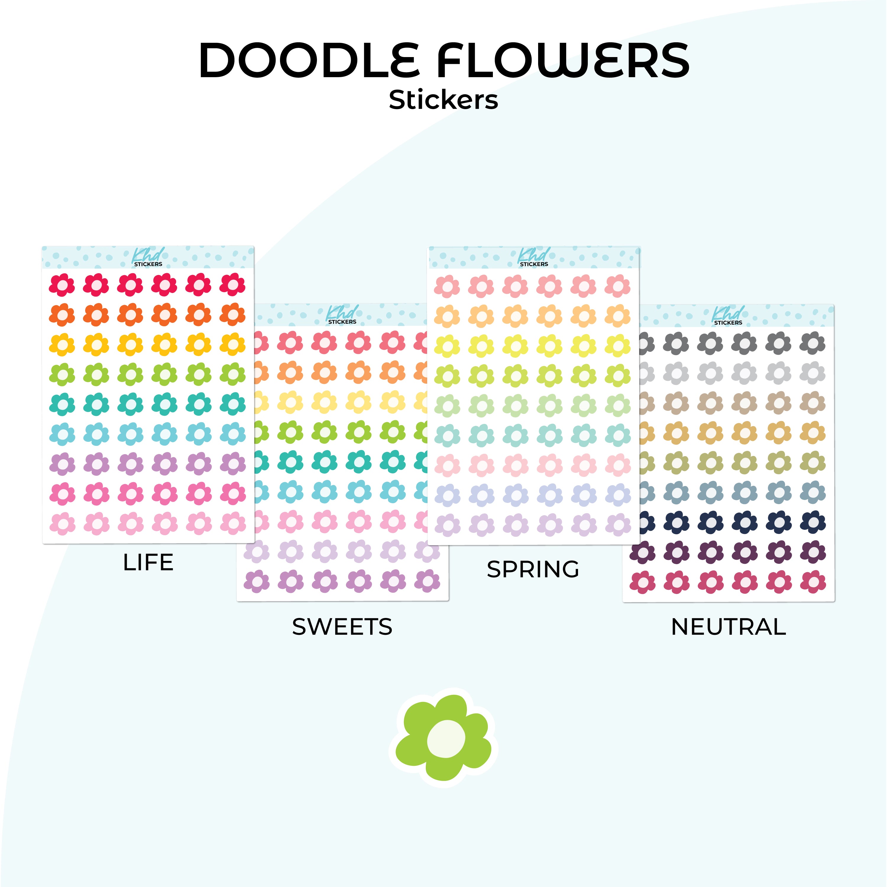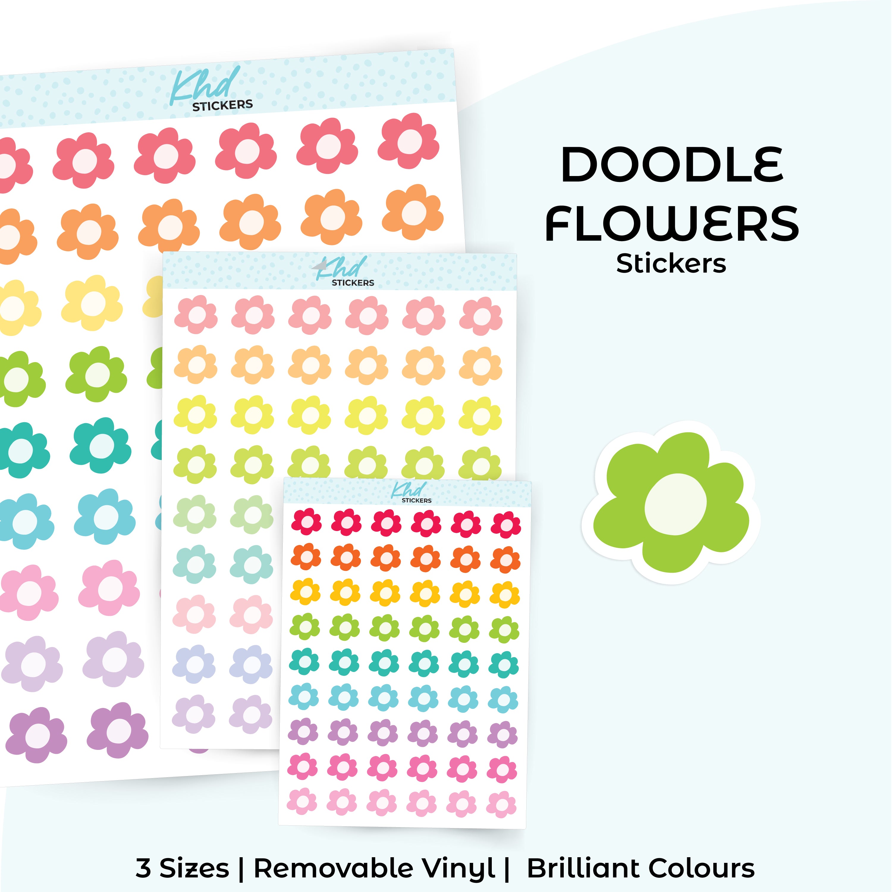 Doodle Flowers Planner Stickers in three sizes and 35 colourways. Removable, smooth-matte finish.