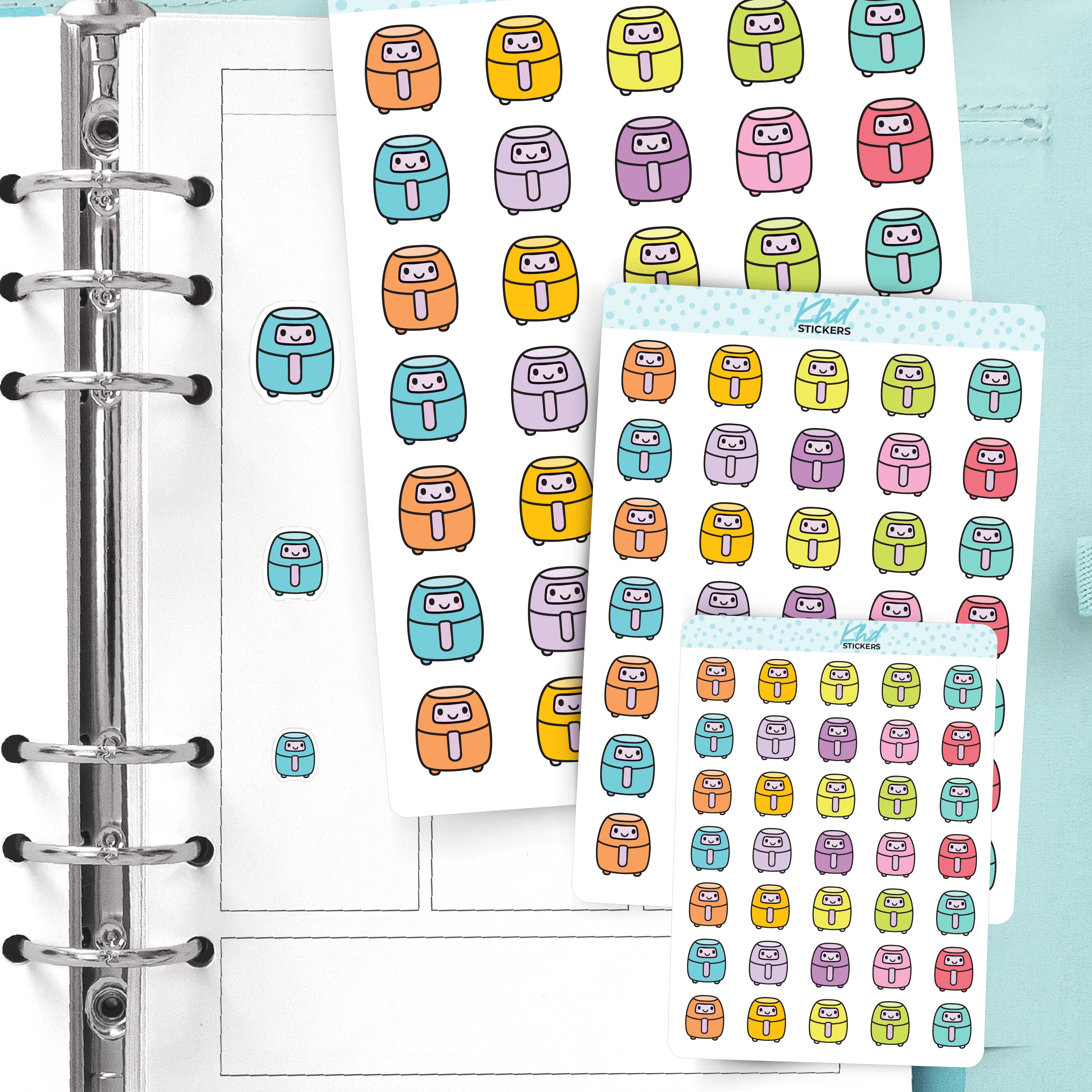 These adorable Stickers feature hand-drawn air fryers illustrations in our signature pastel palette. Perfect for diaries, planners, and journals.