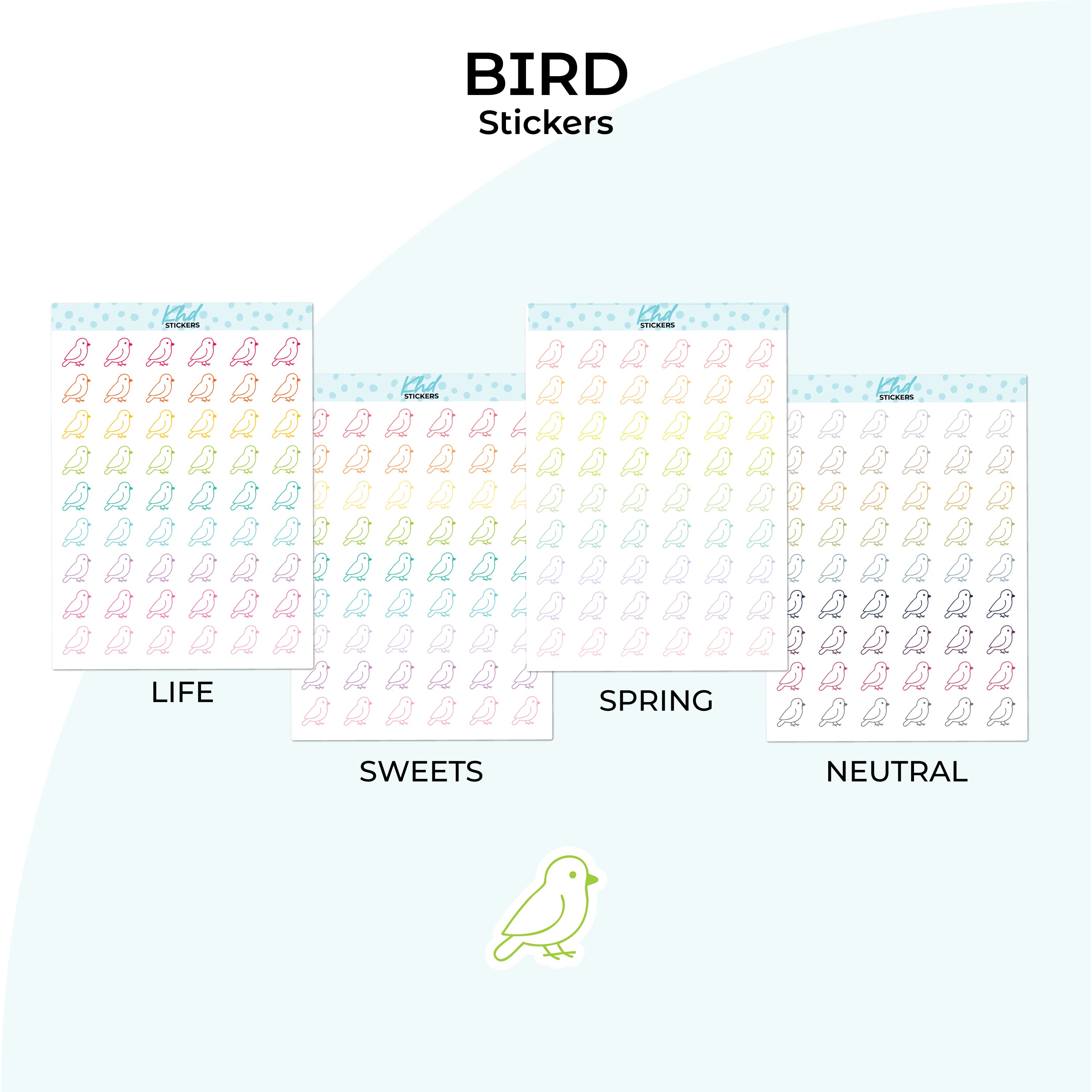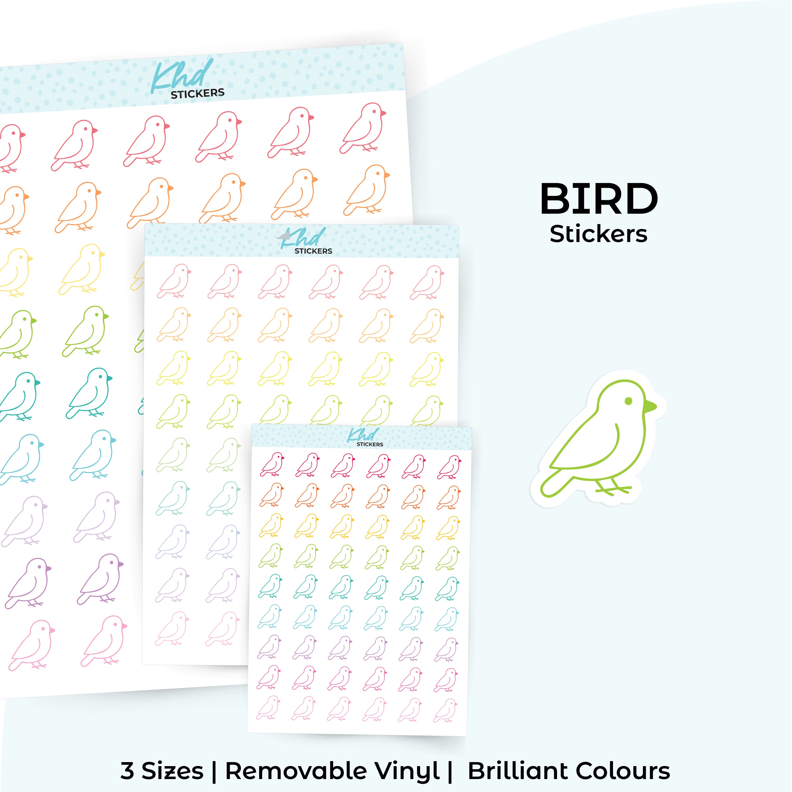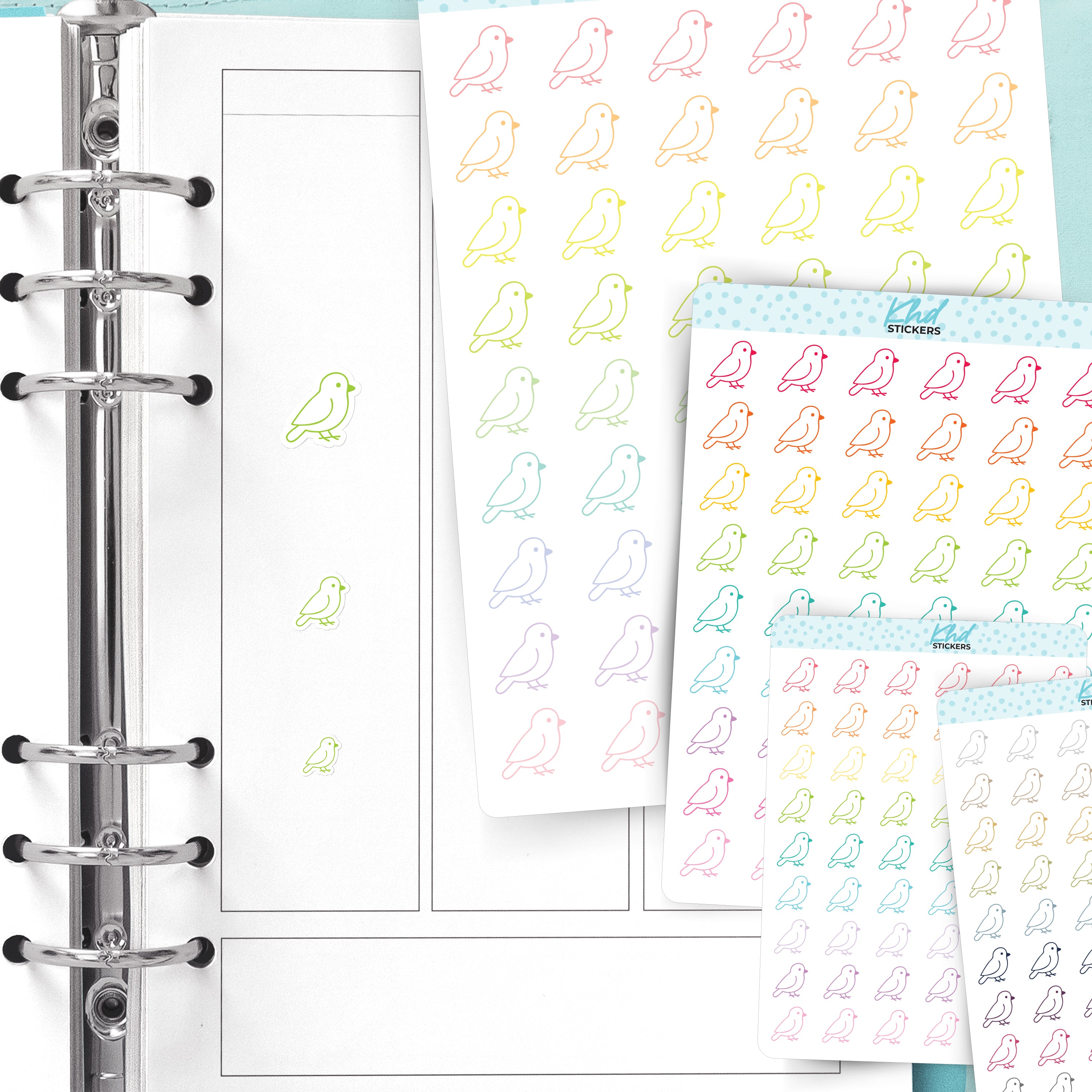Bird icon stickers for planners and journals. Perfect for vet visits, feeding, grooming and pet care reminders.