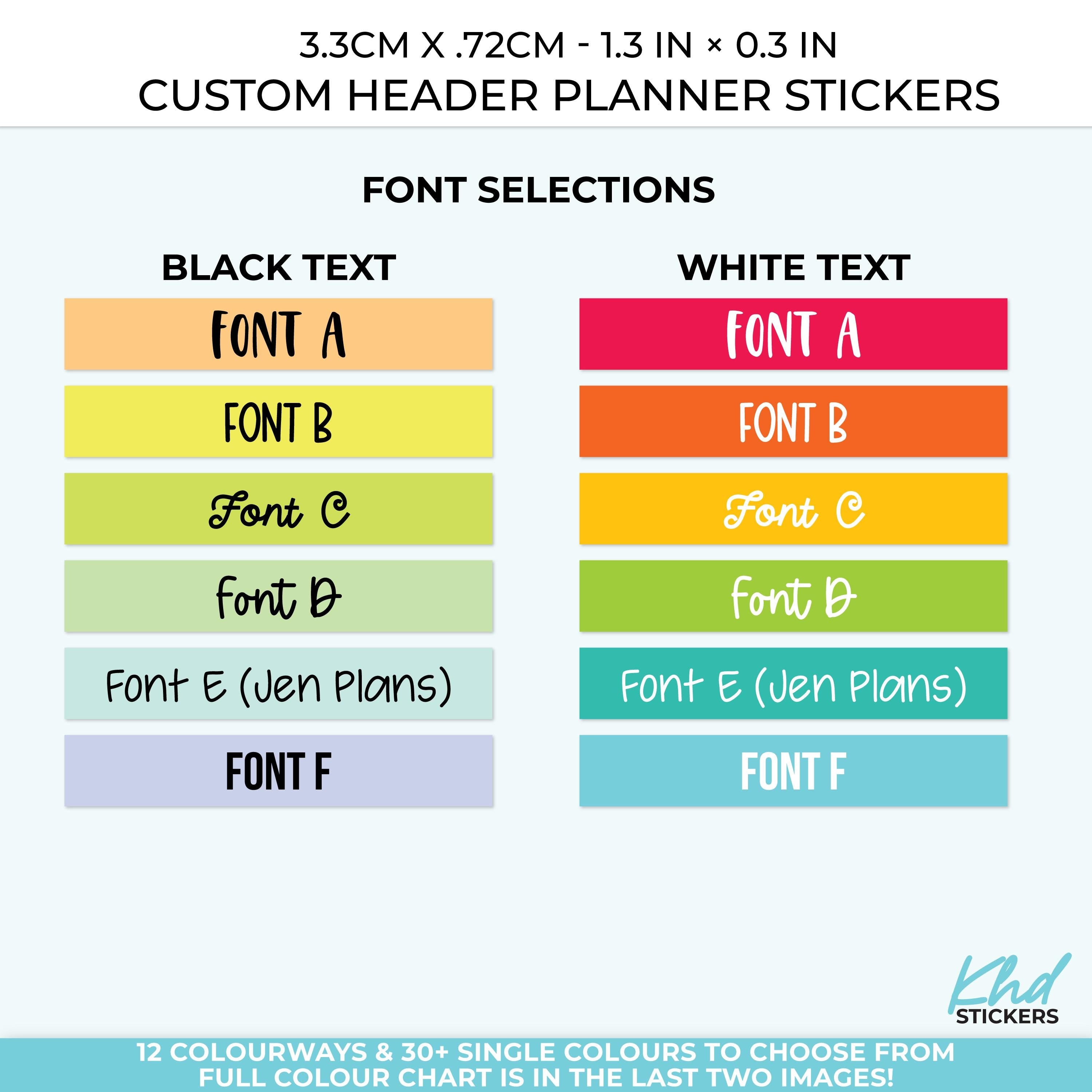 Choose your colourway, font selection and coordinate the headers in your planner.