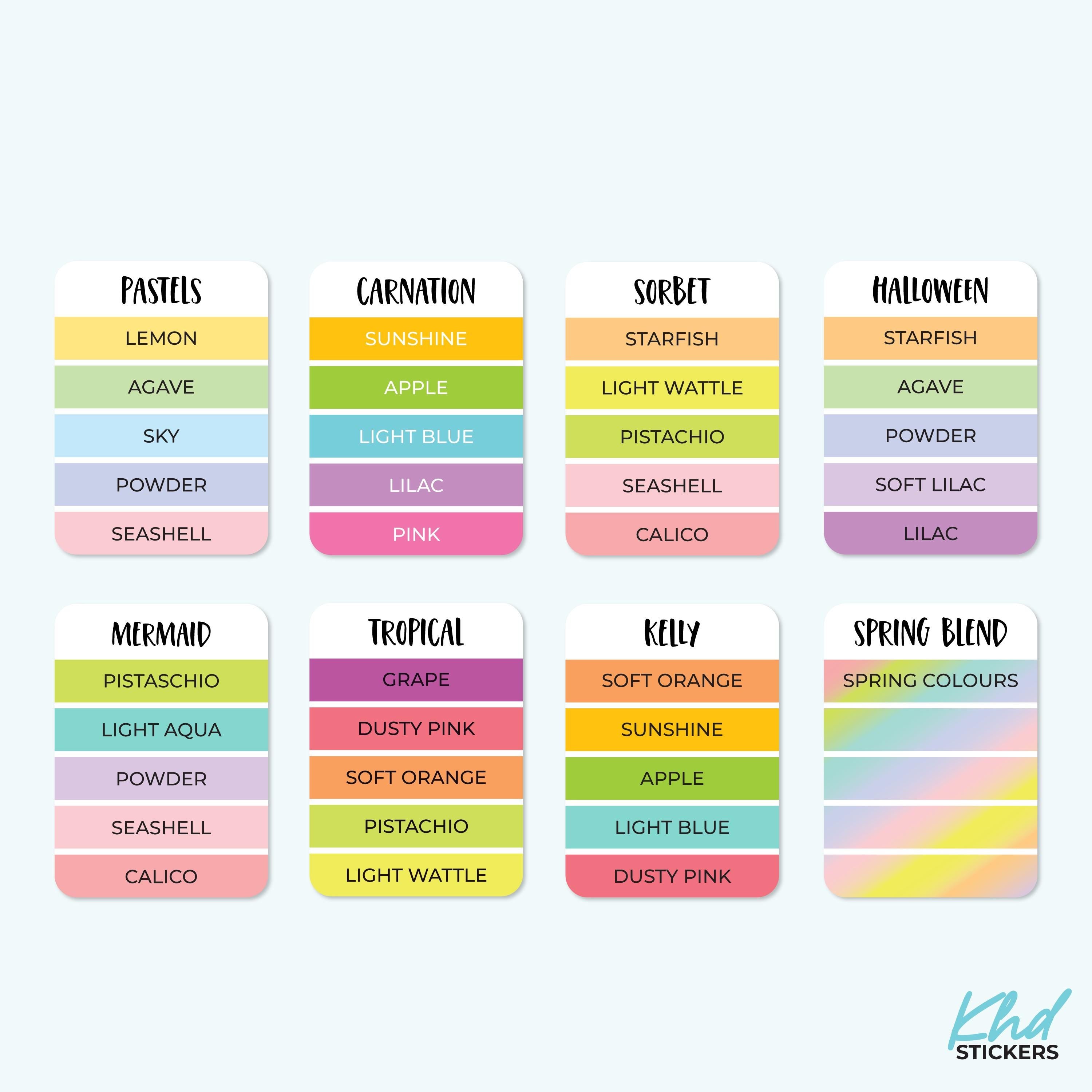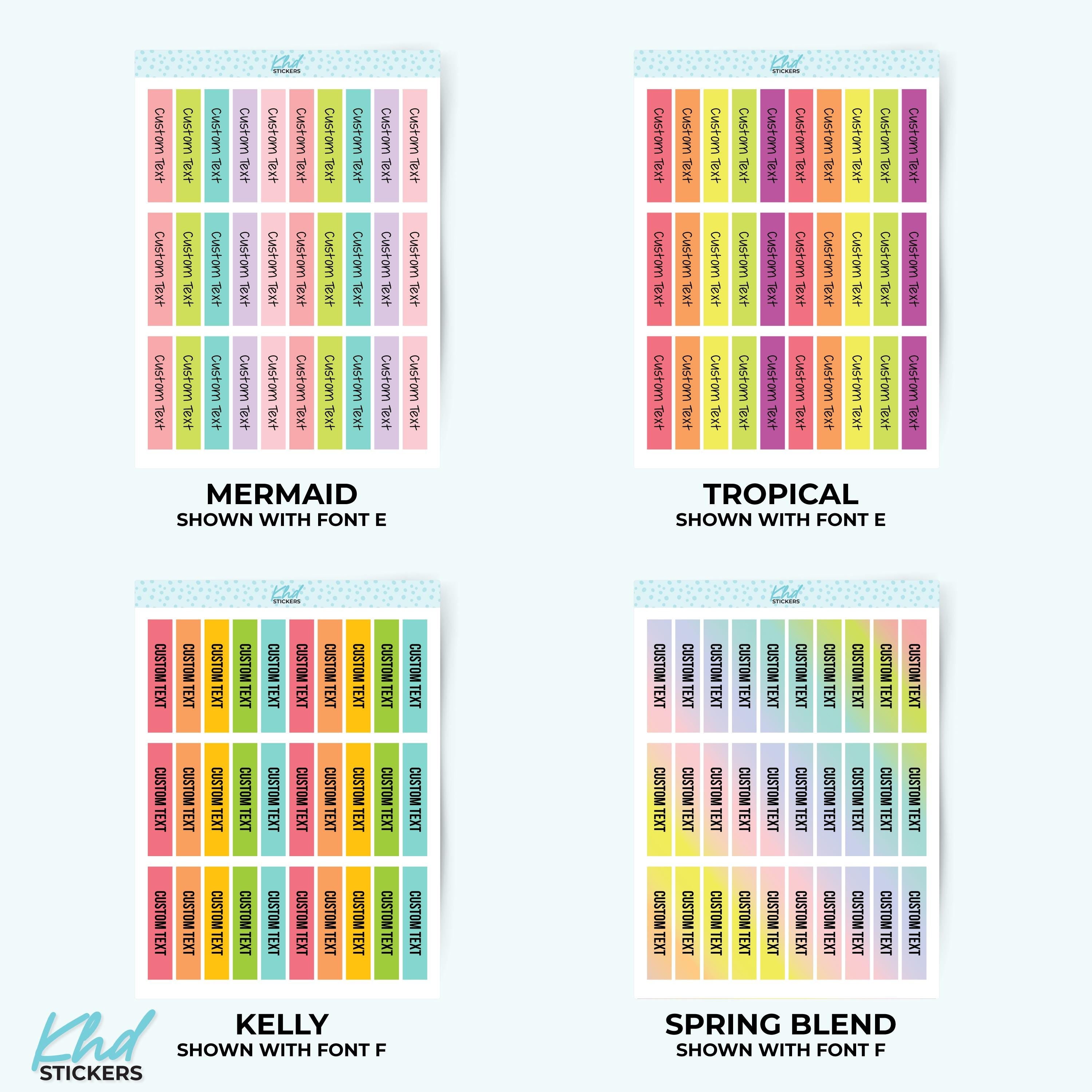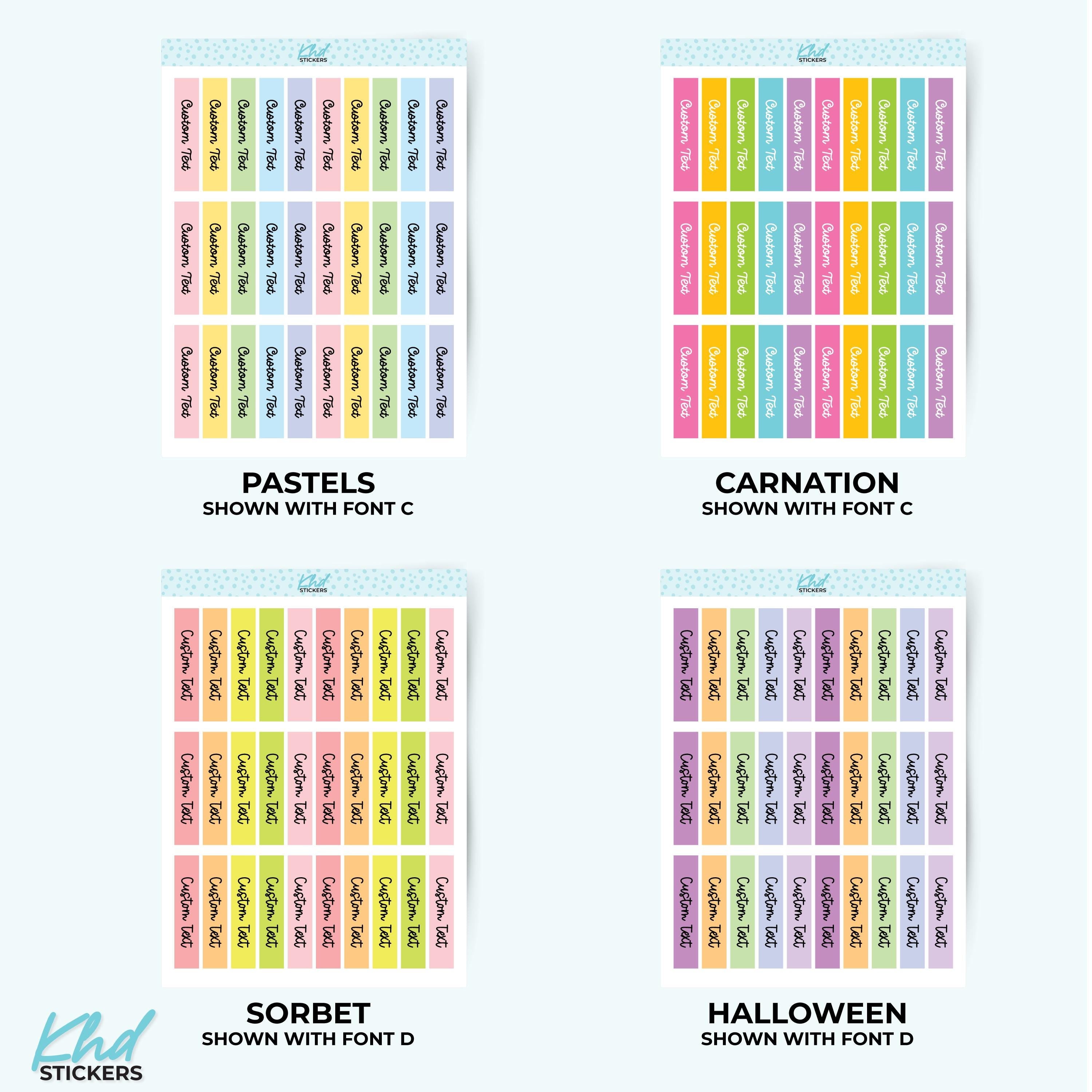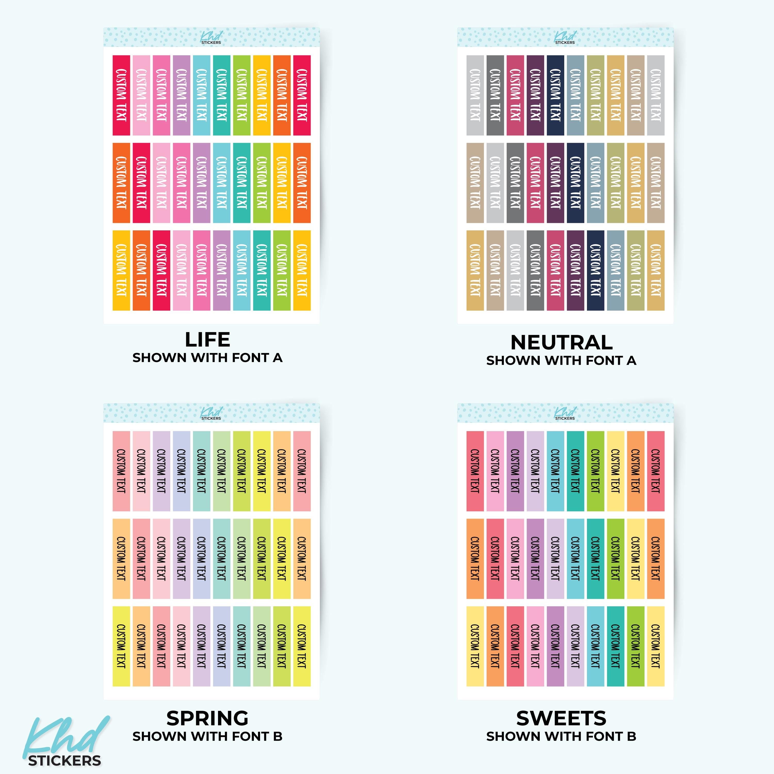 There's 6 fonts, and 16 colourways.  Or select your own single colour to match your planning style.