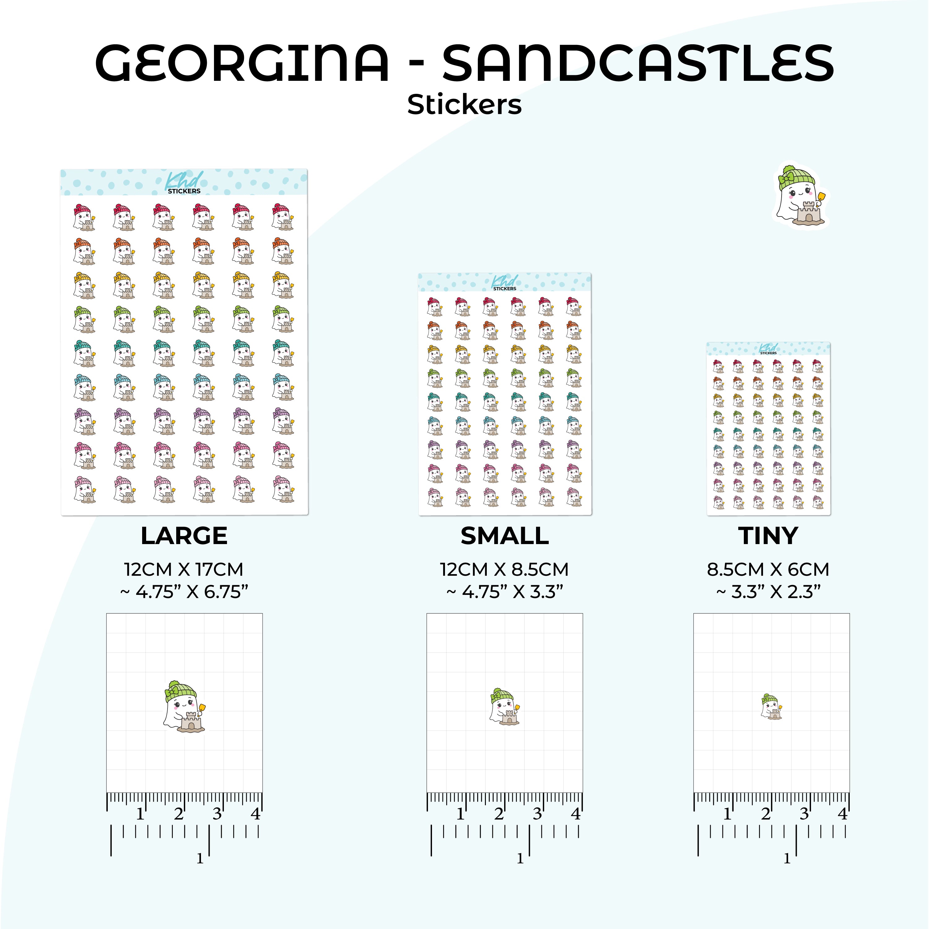 Georgina building sandcastles for beach days and holidays in your planner or diary.