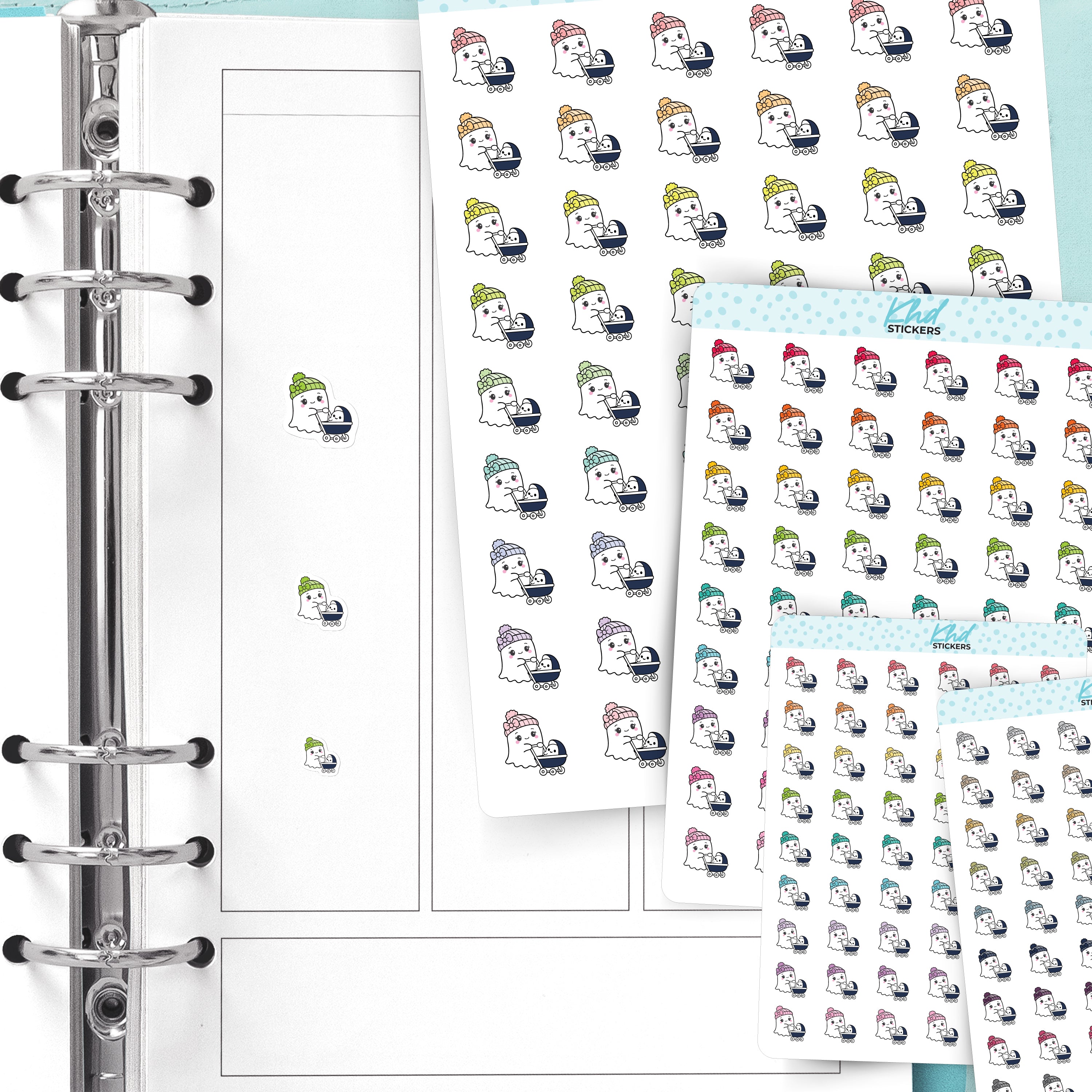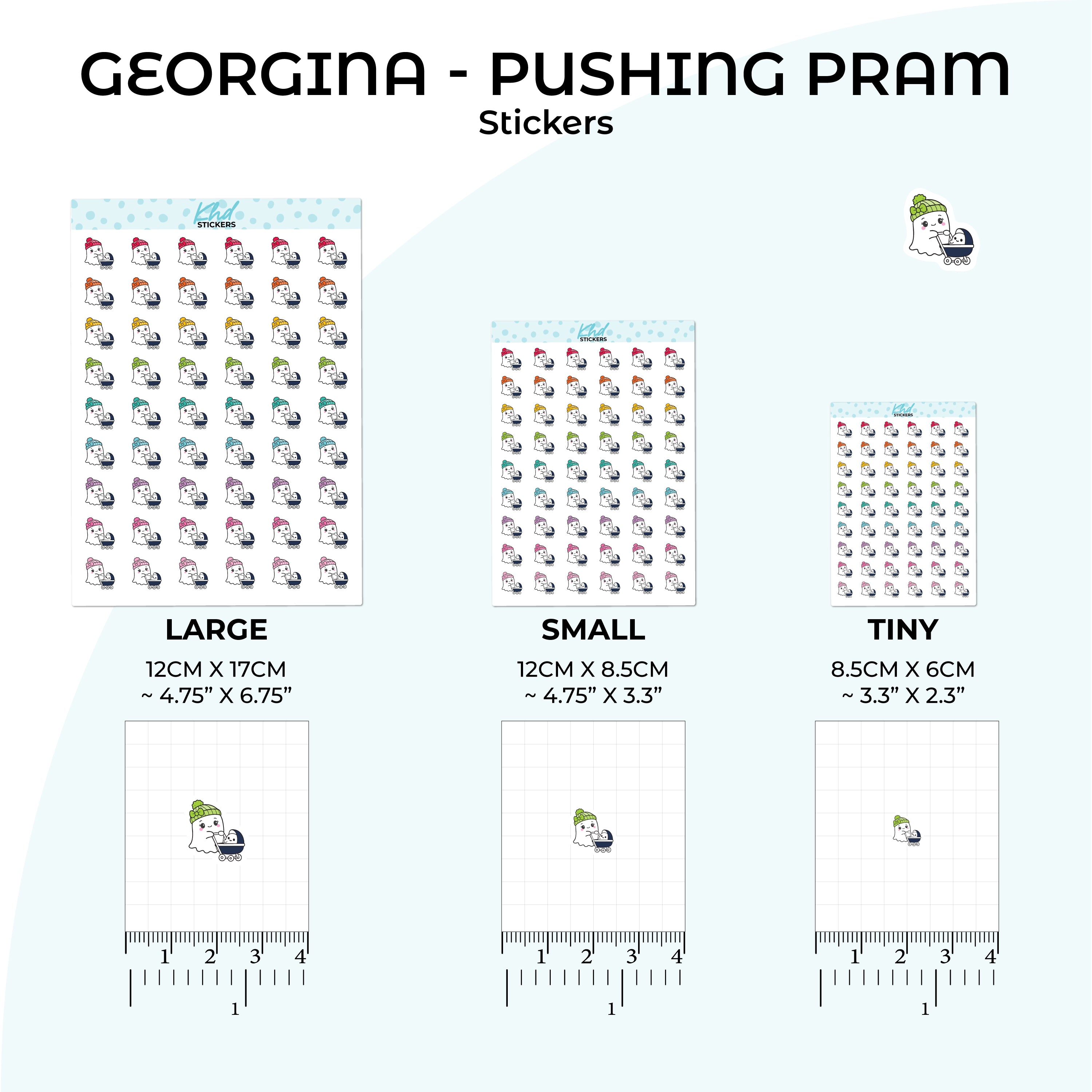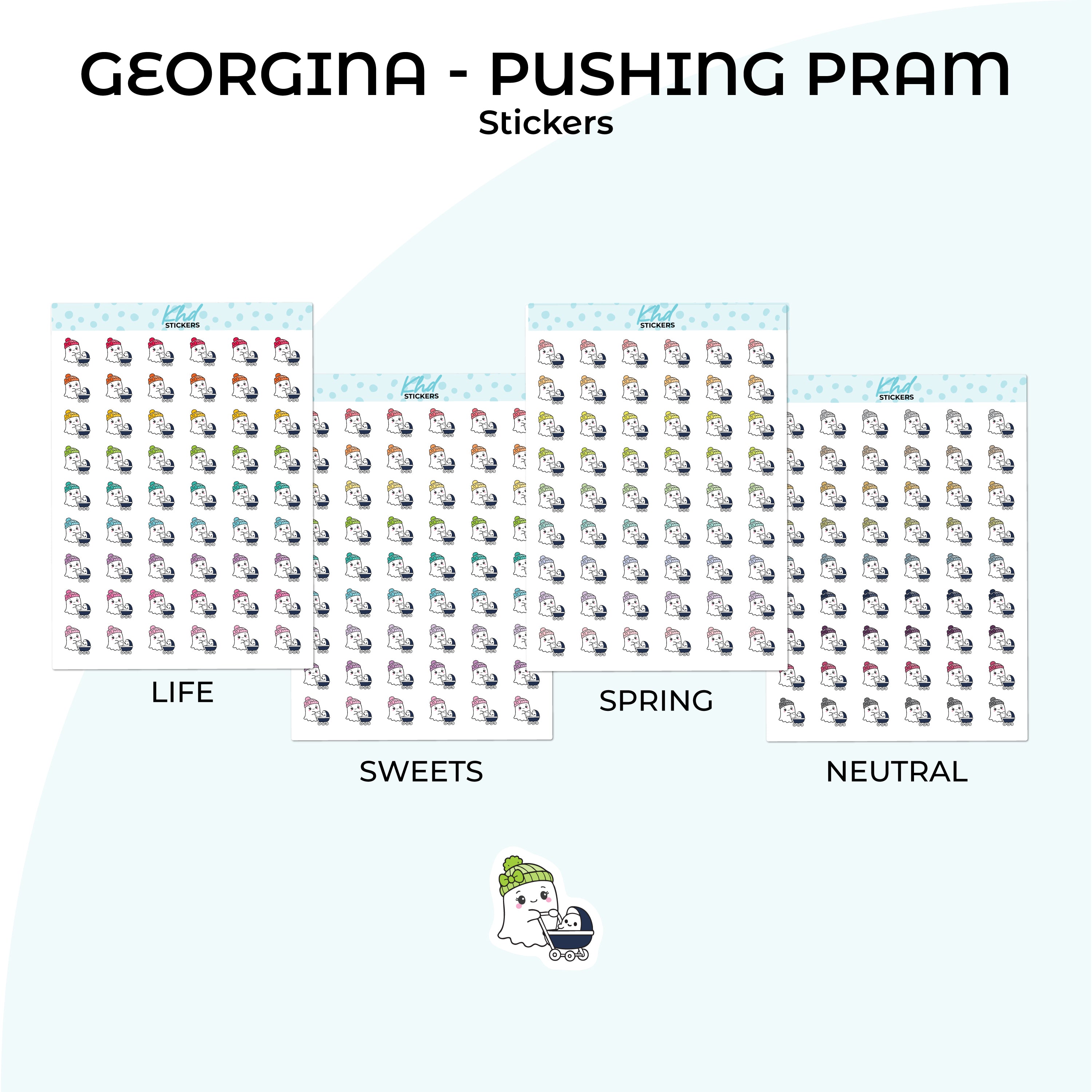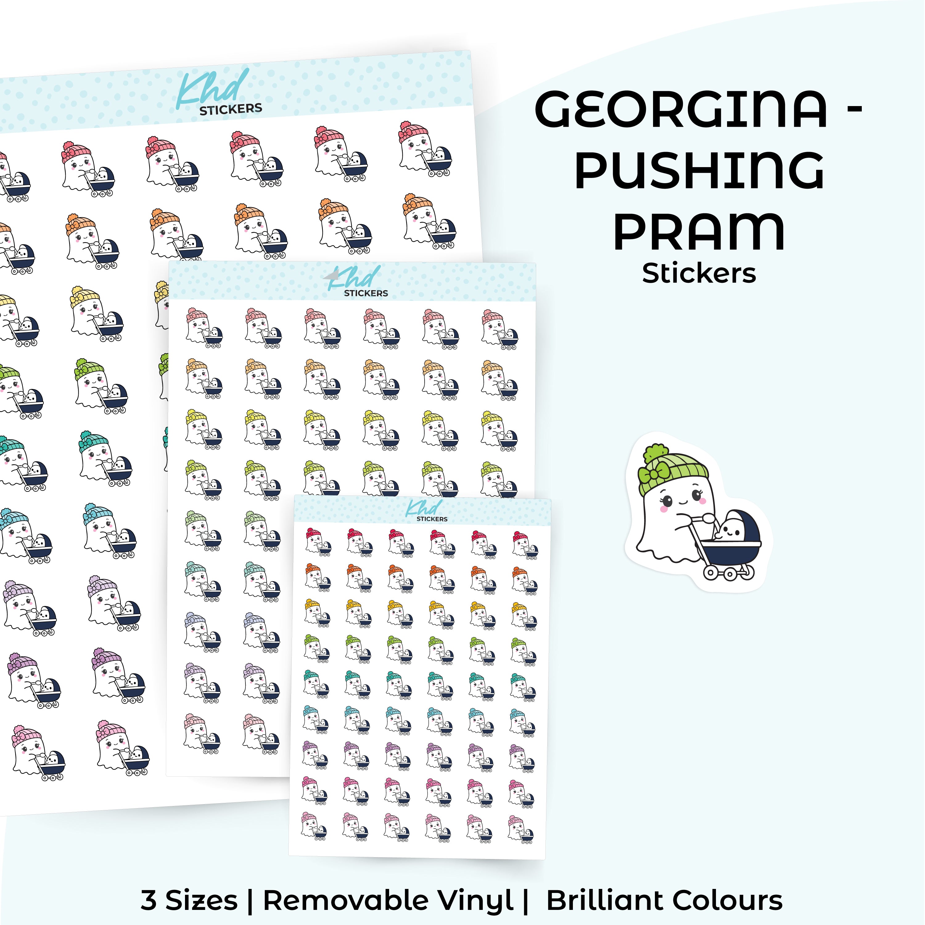 Georgina pushing a pram for baby walks and fresh air outings in your planner or diary.