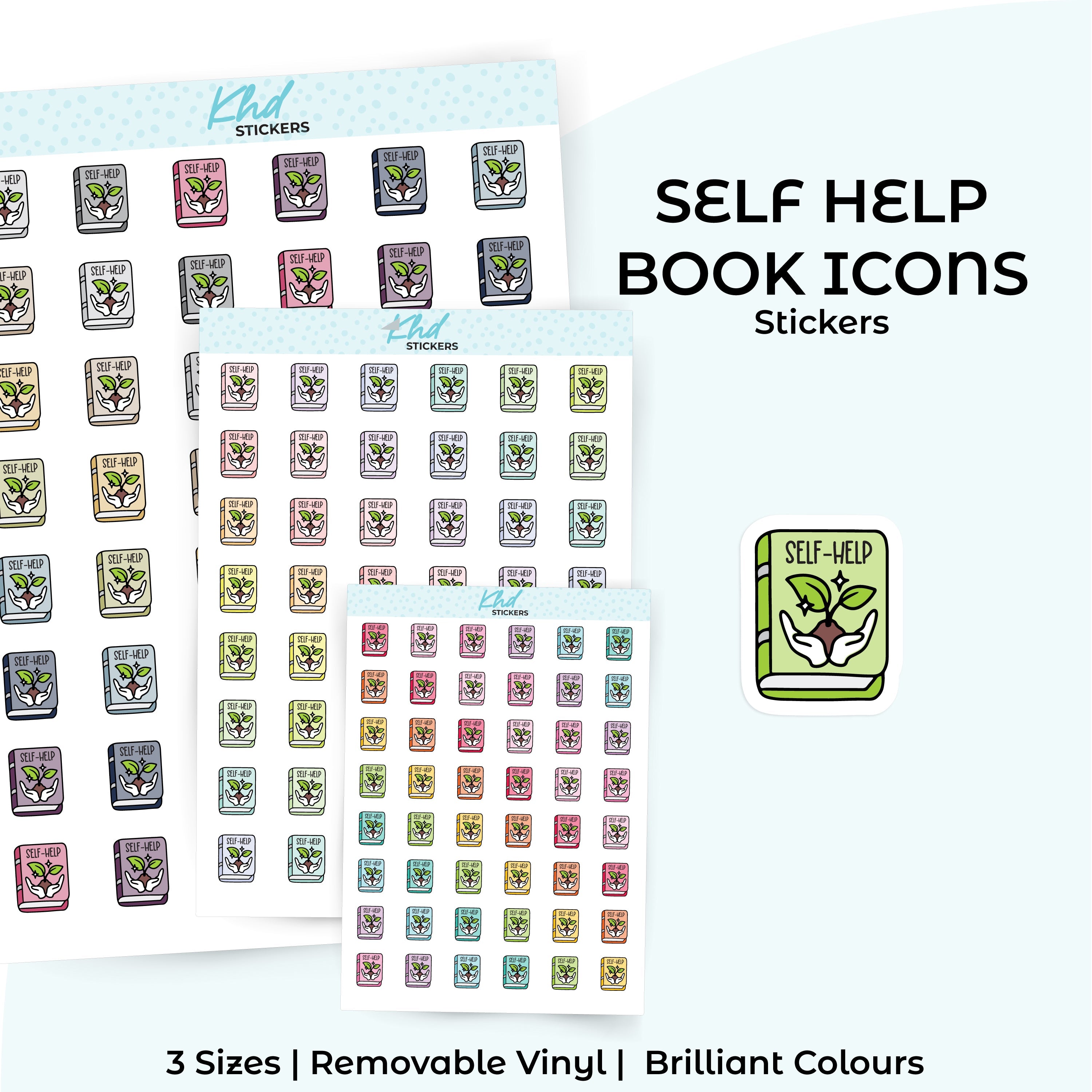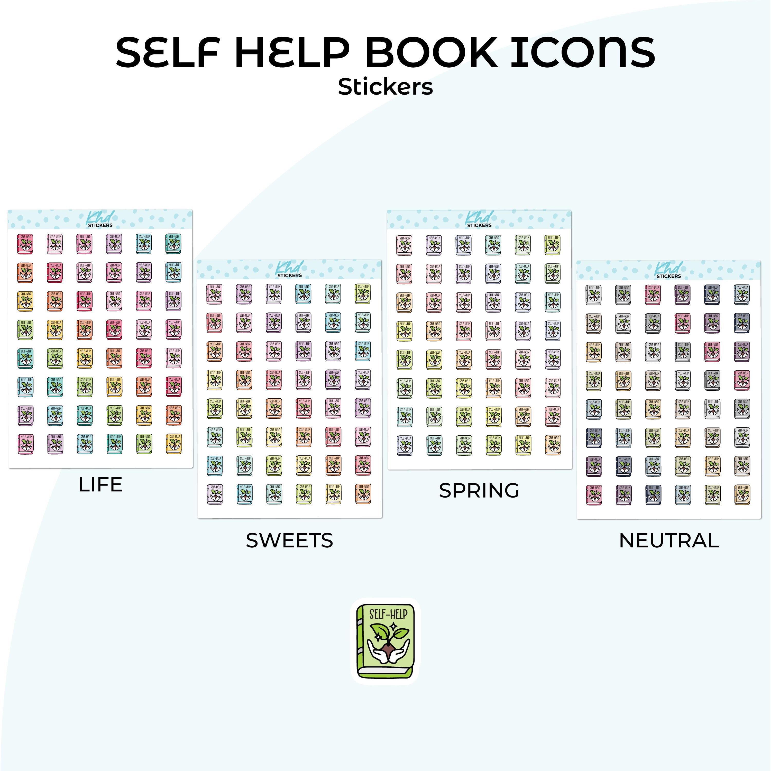 Cute functional self help book icons for planners, diaries, and journals.