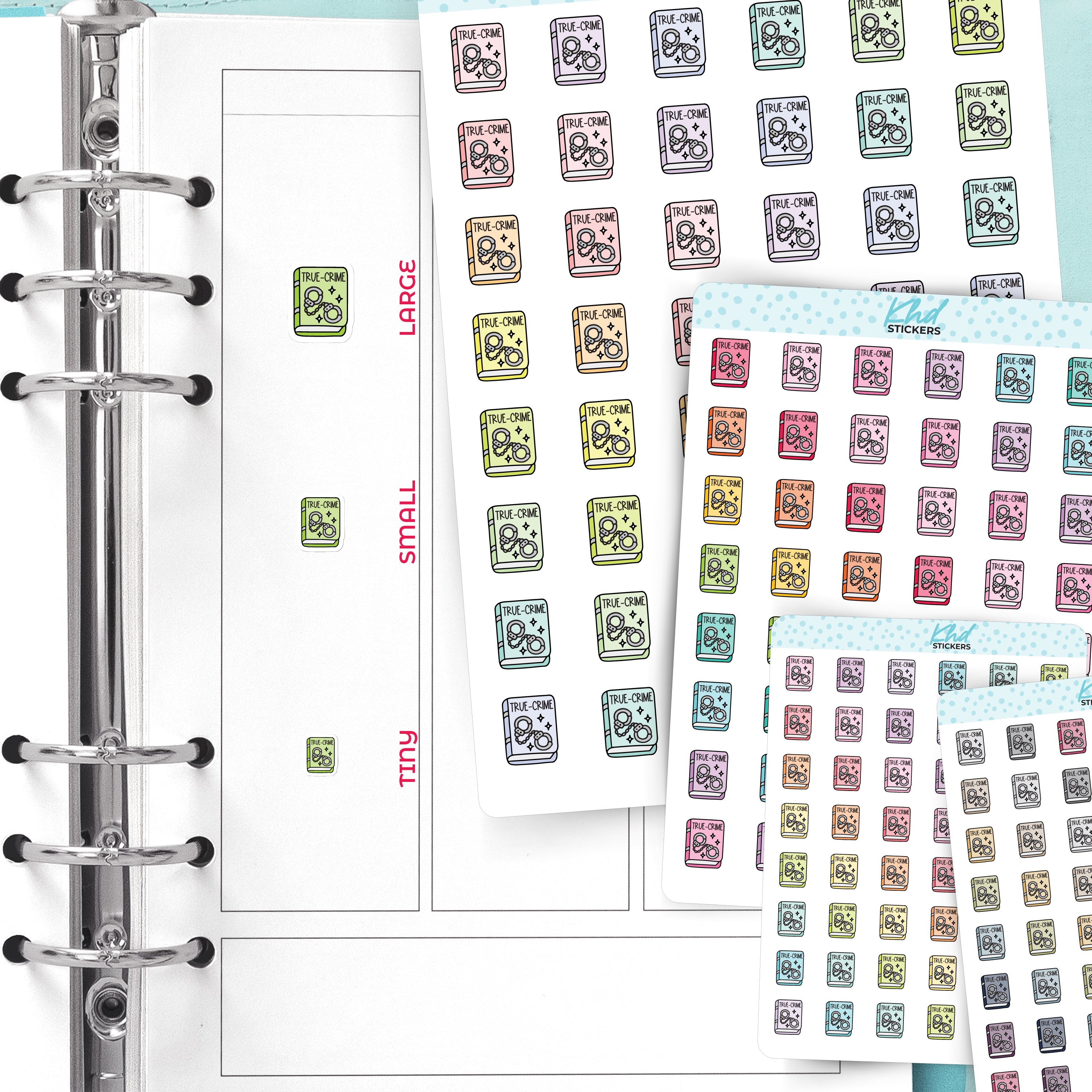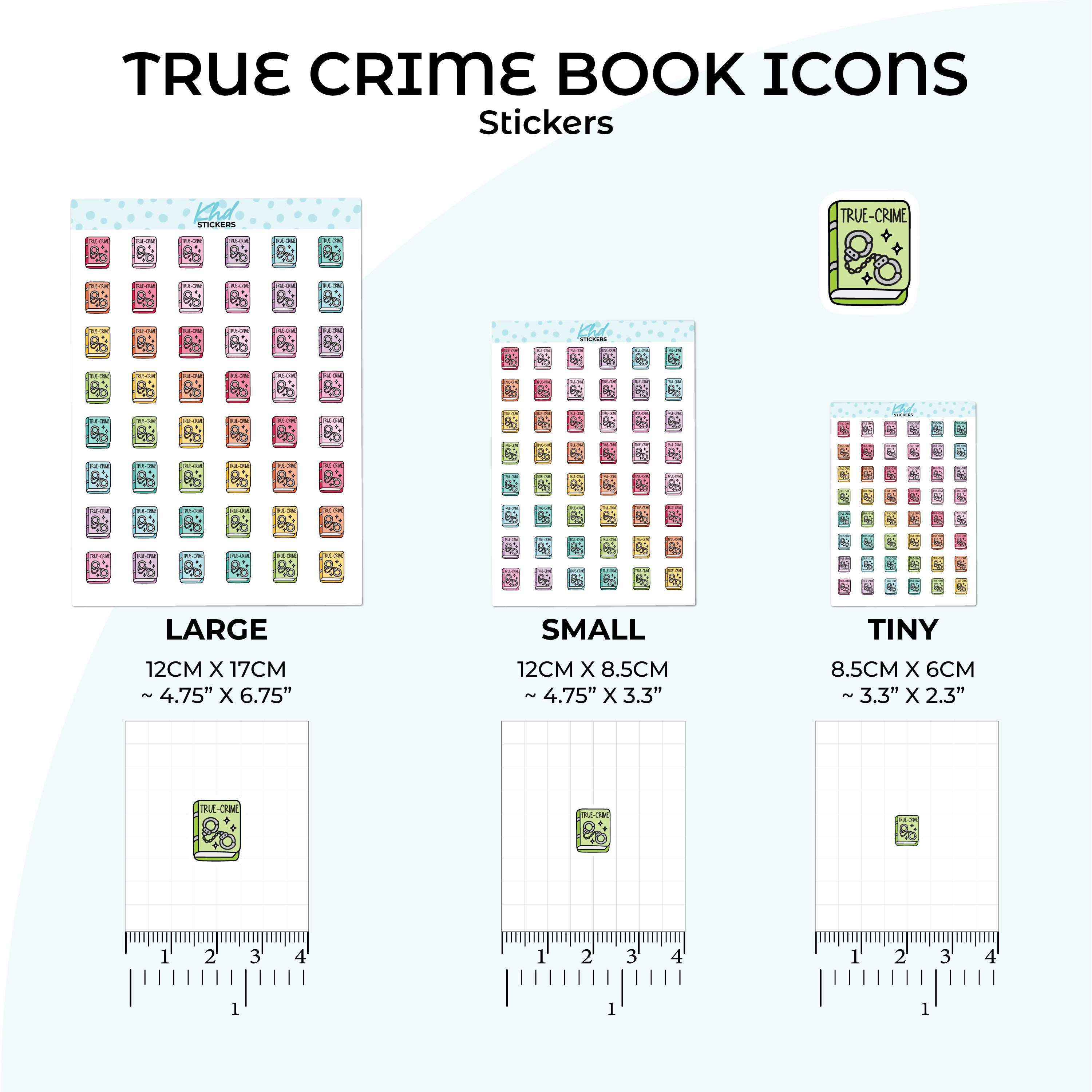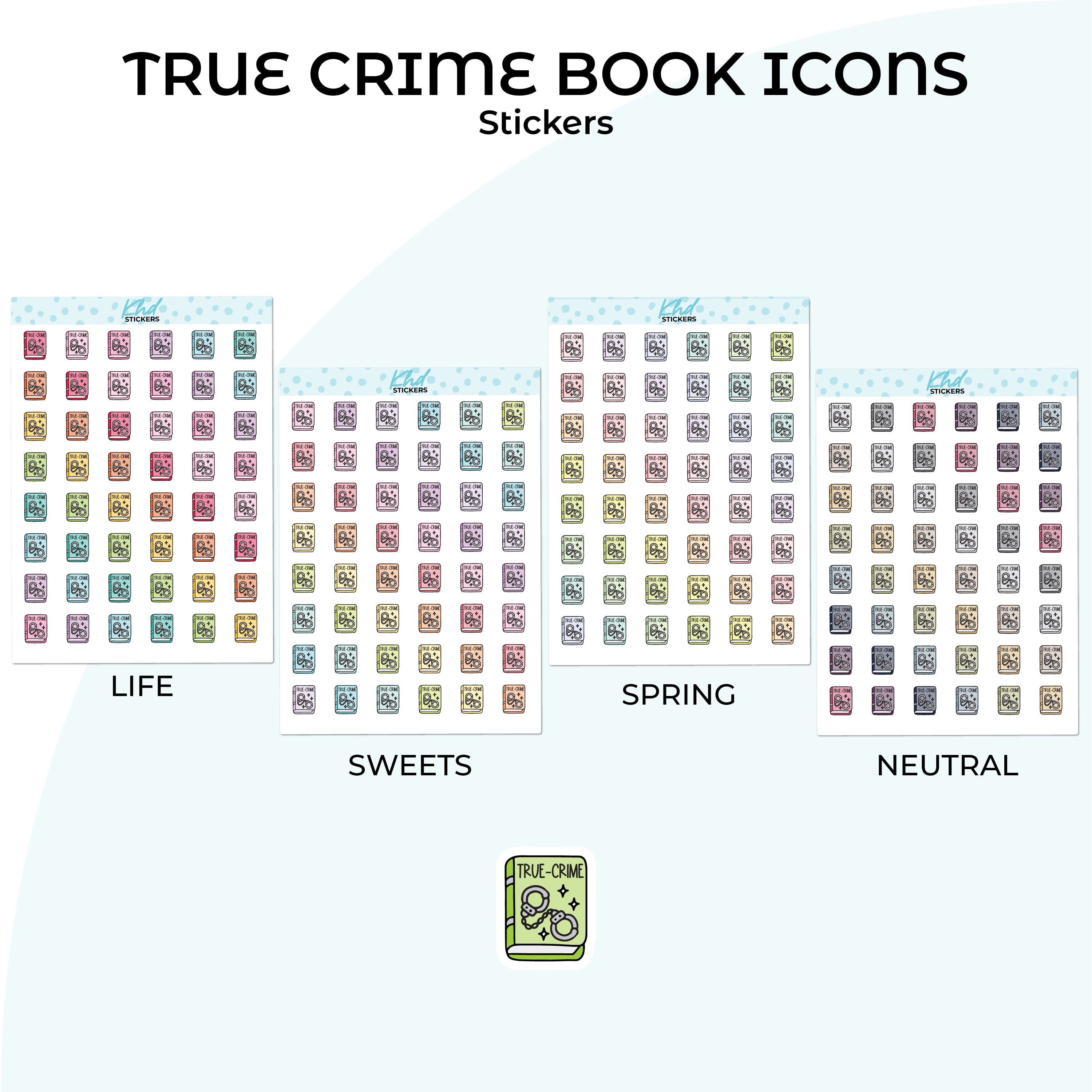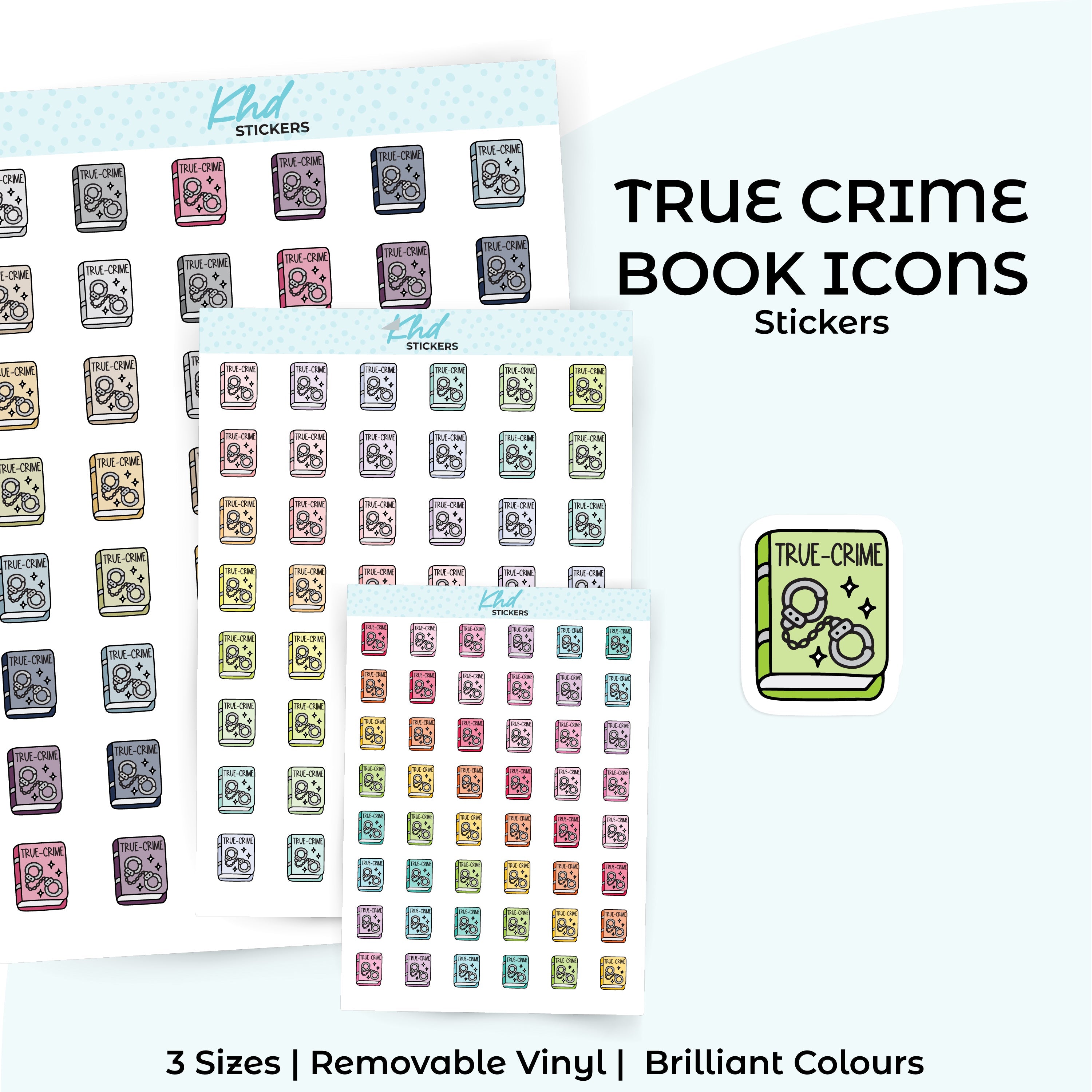 Cute functional true crime book icons for planners, diaries, and journals.