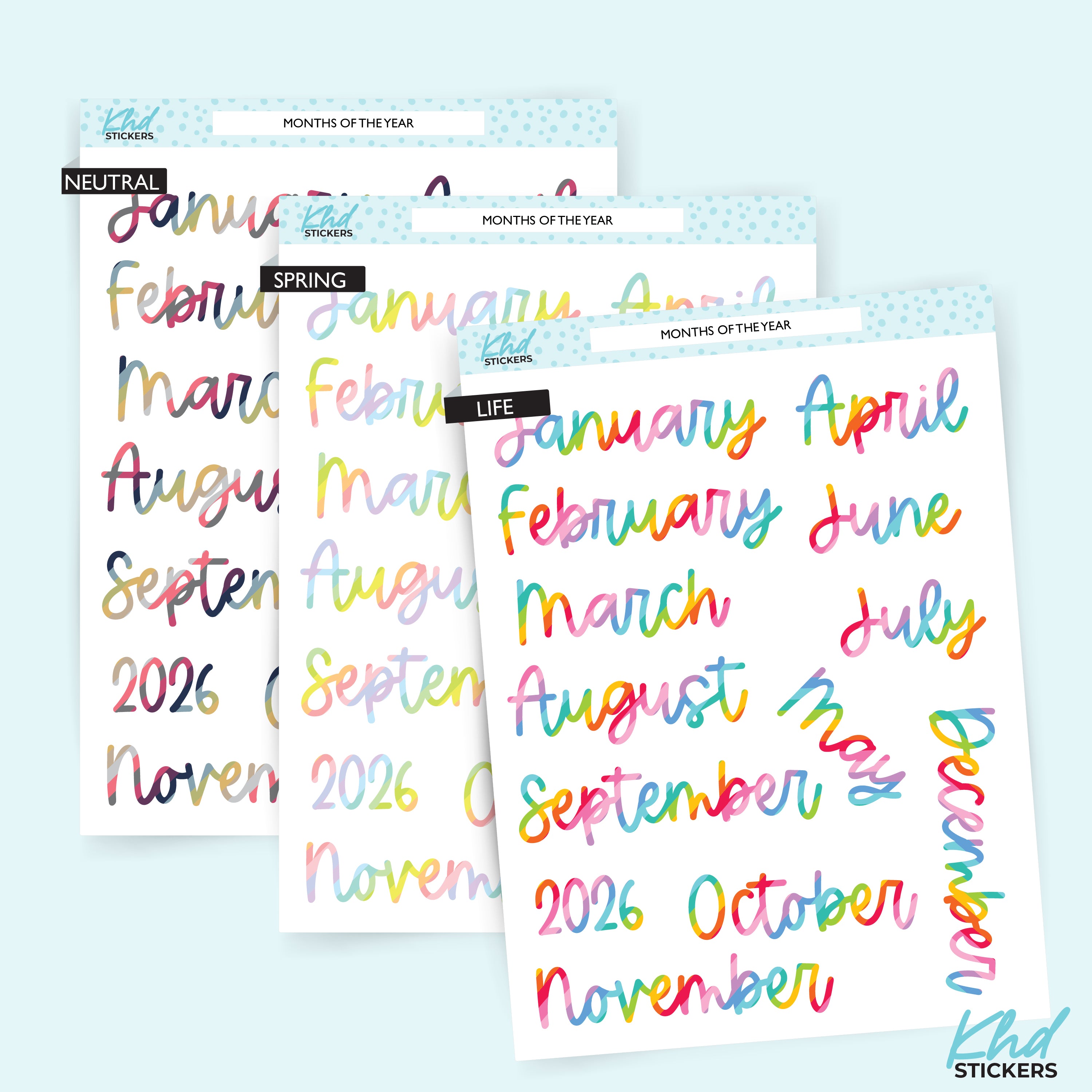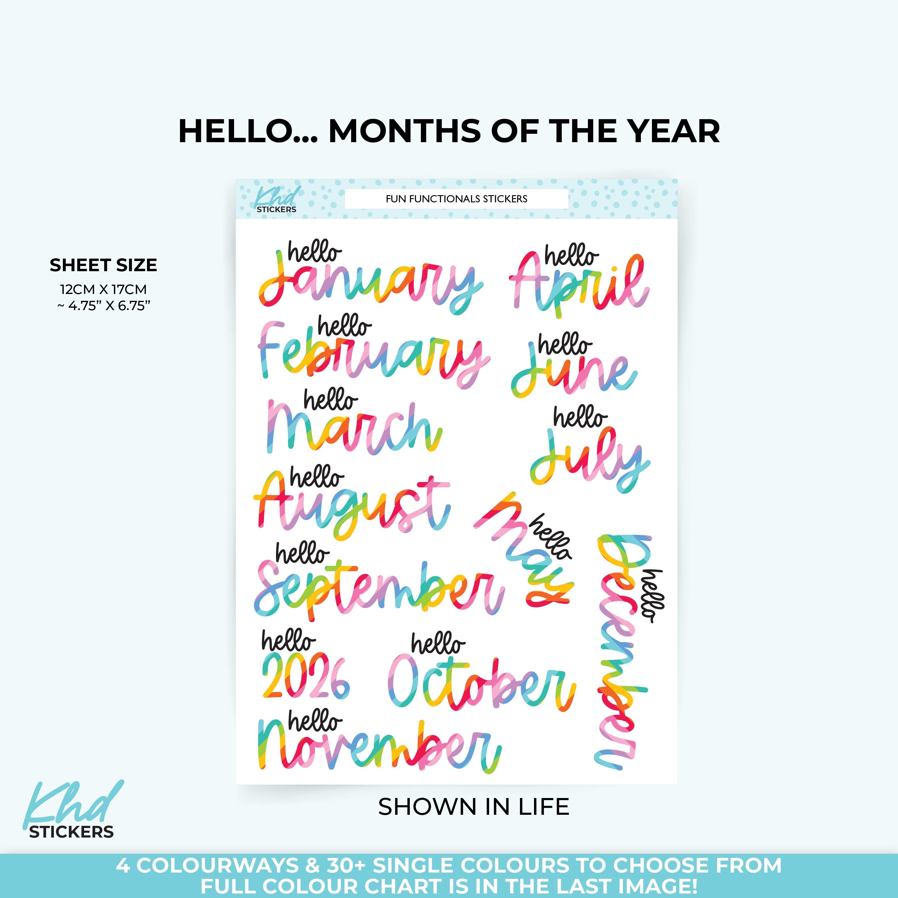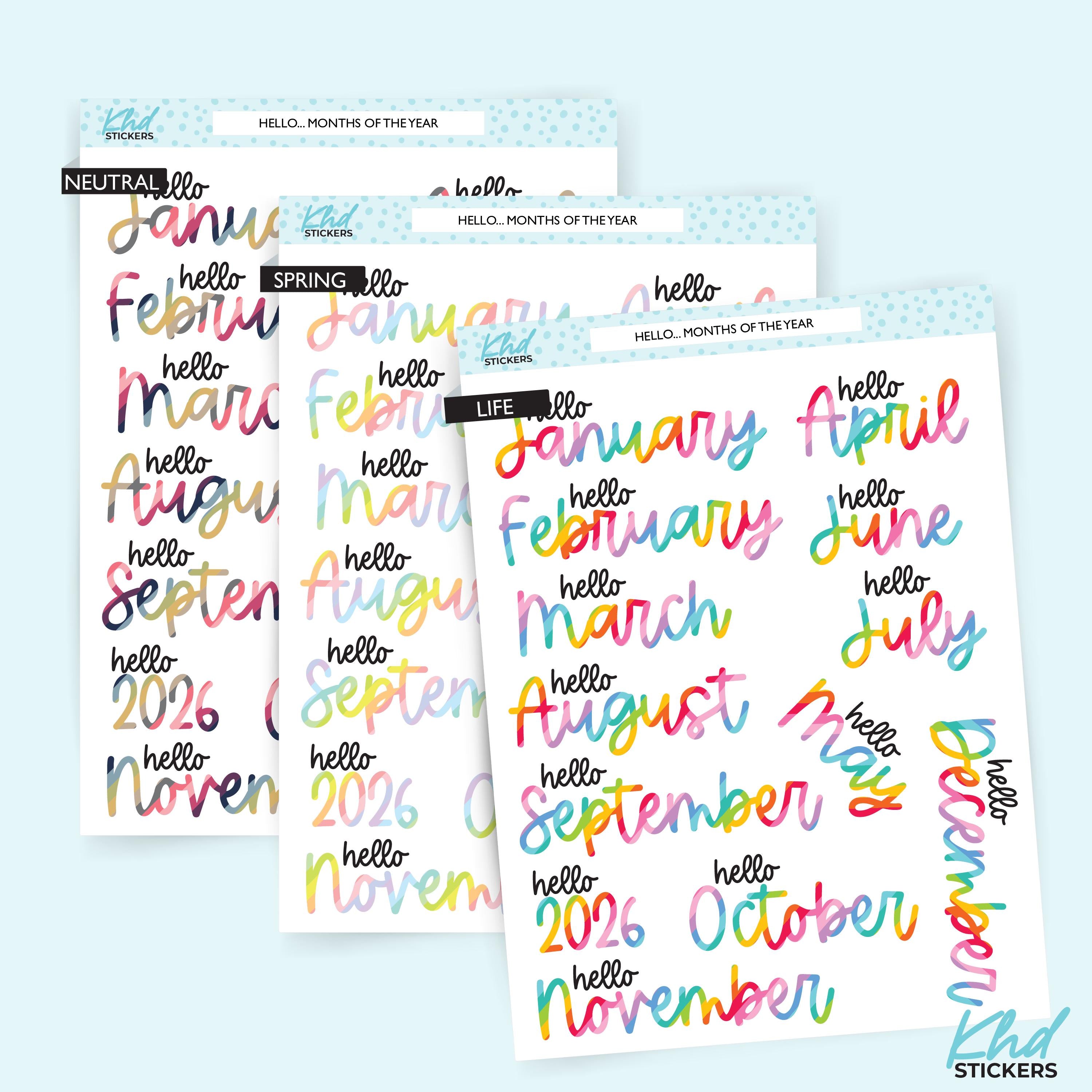 2026 Months of the Year Planner Stickers
